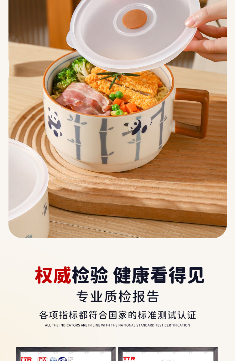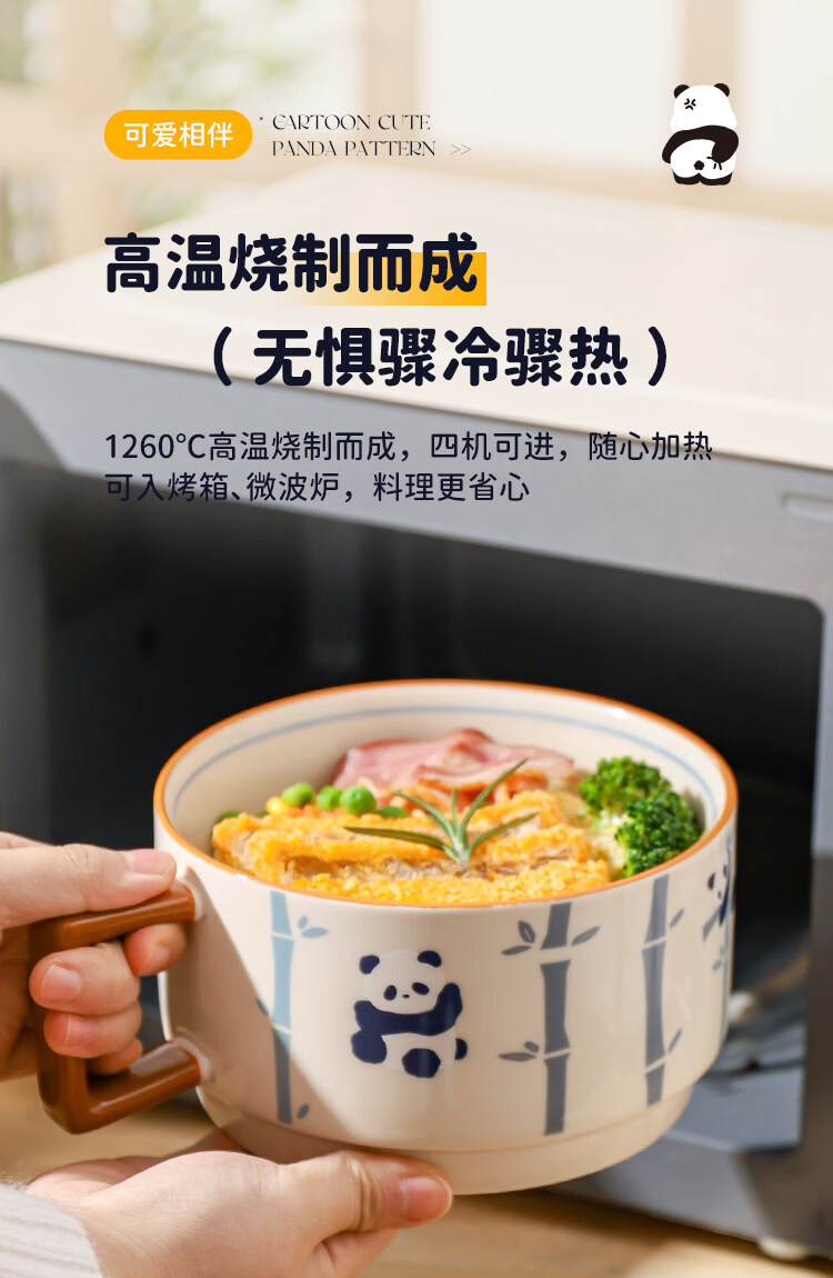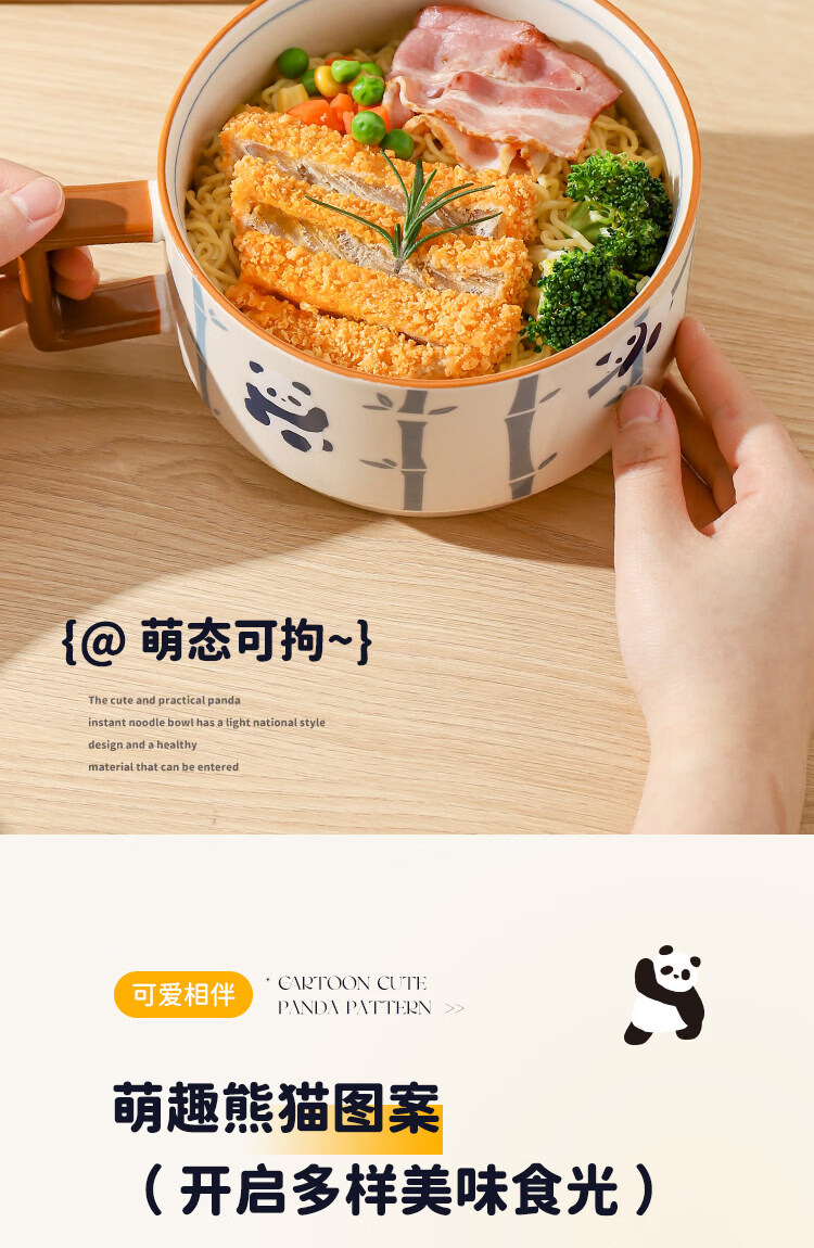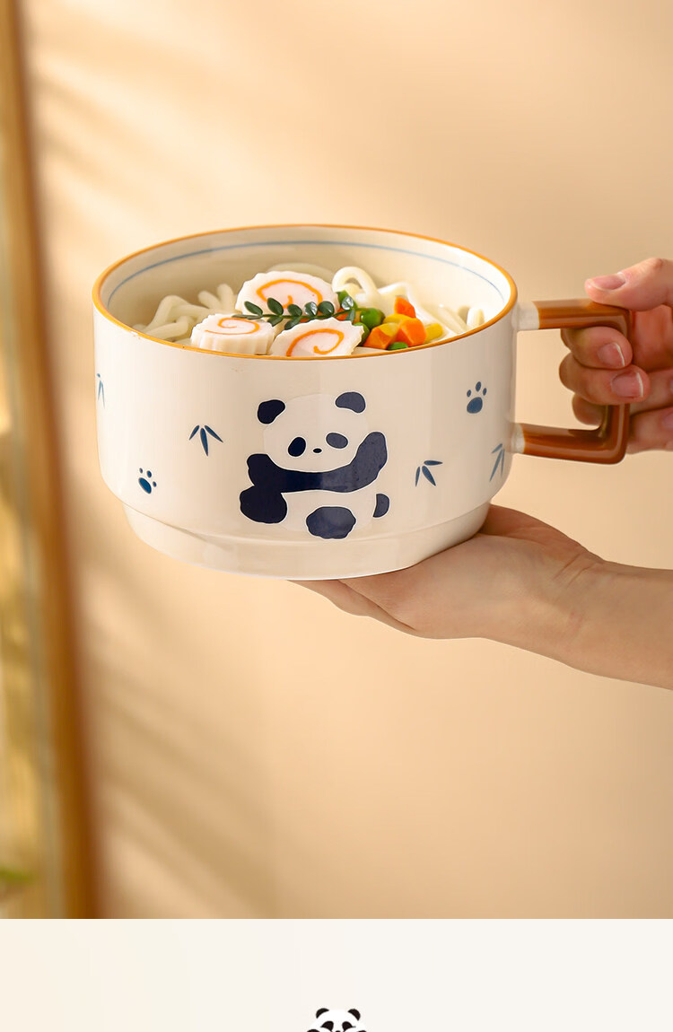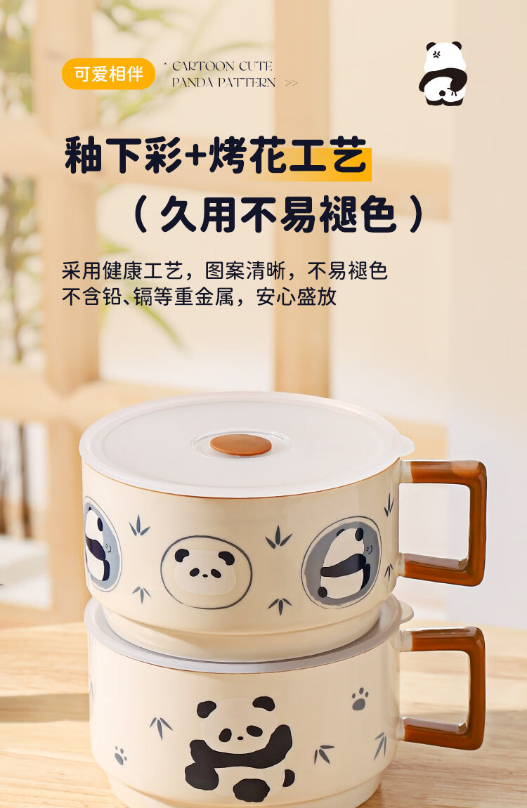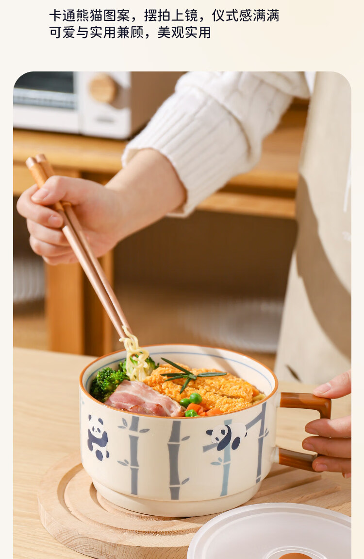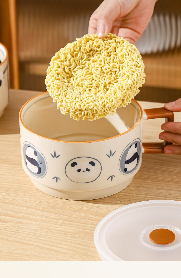 Kawashimaya Panda instant noodle bowl with lid and handle large capacity ceramic lunch box microwave oven special bowl for personal use Panda instant noodle bowl with lid (selling cute pandas)
