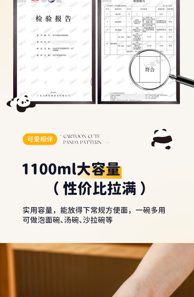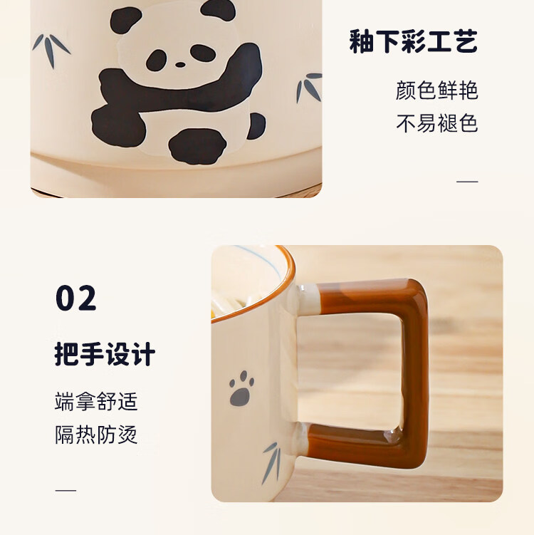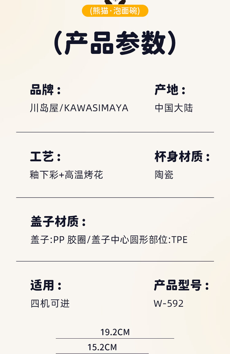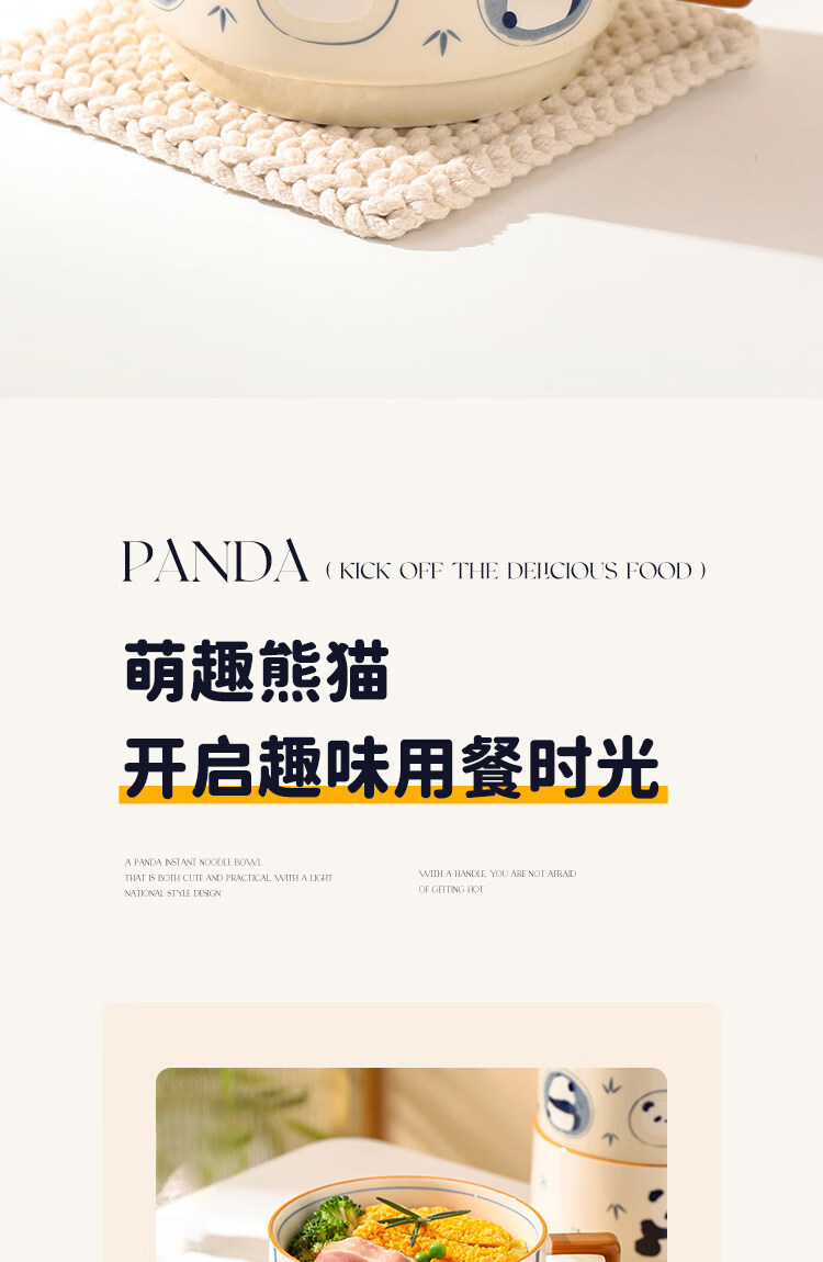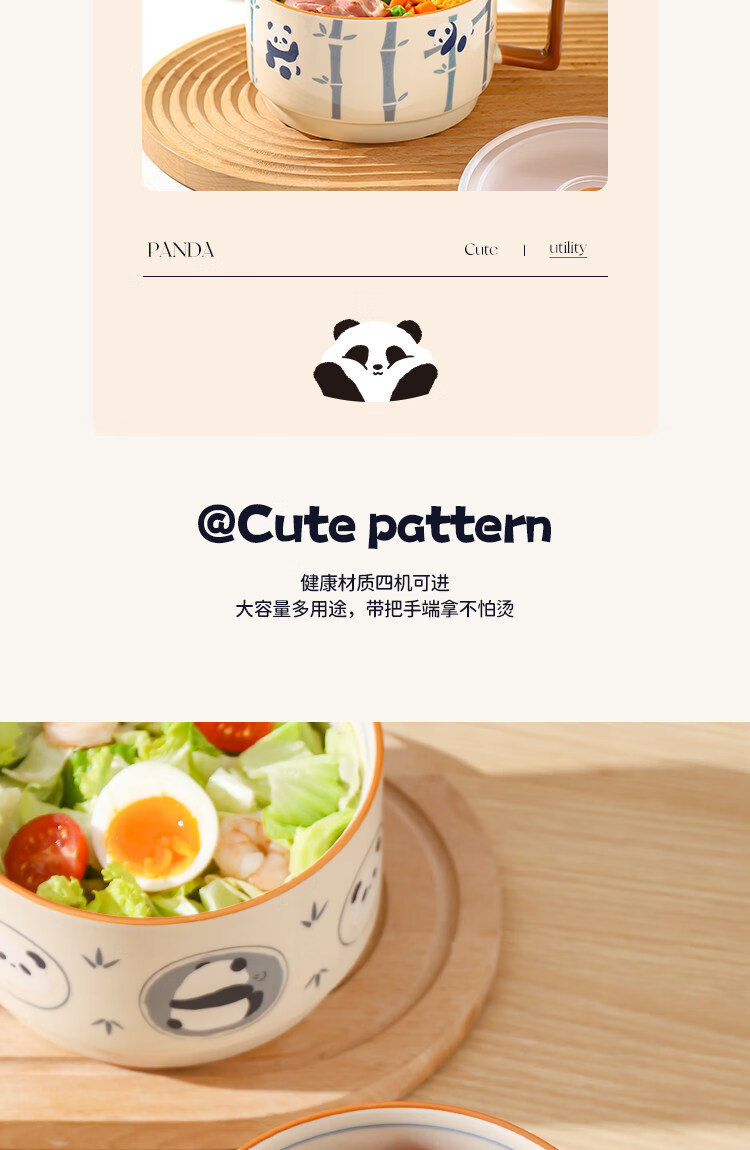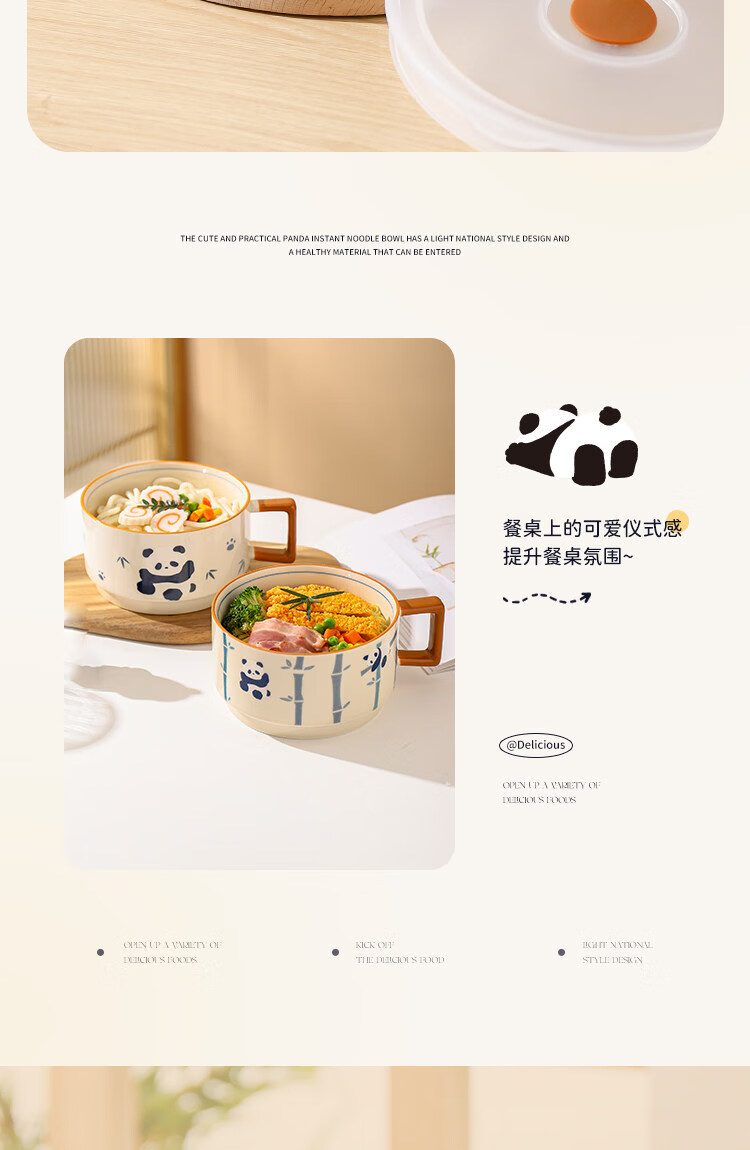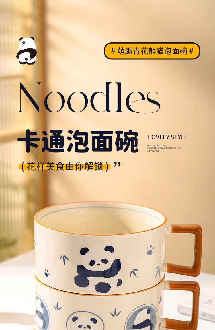 Kawashimaya Panda instant noodle bowl with lid and handle large capacity ceramic lunch box microwave oven special bowl for personal use Panda instant noodle bowl with lid (selling cute pandas)