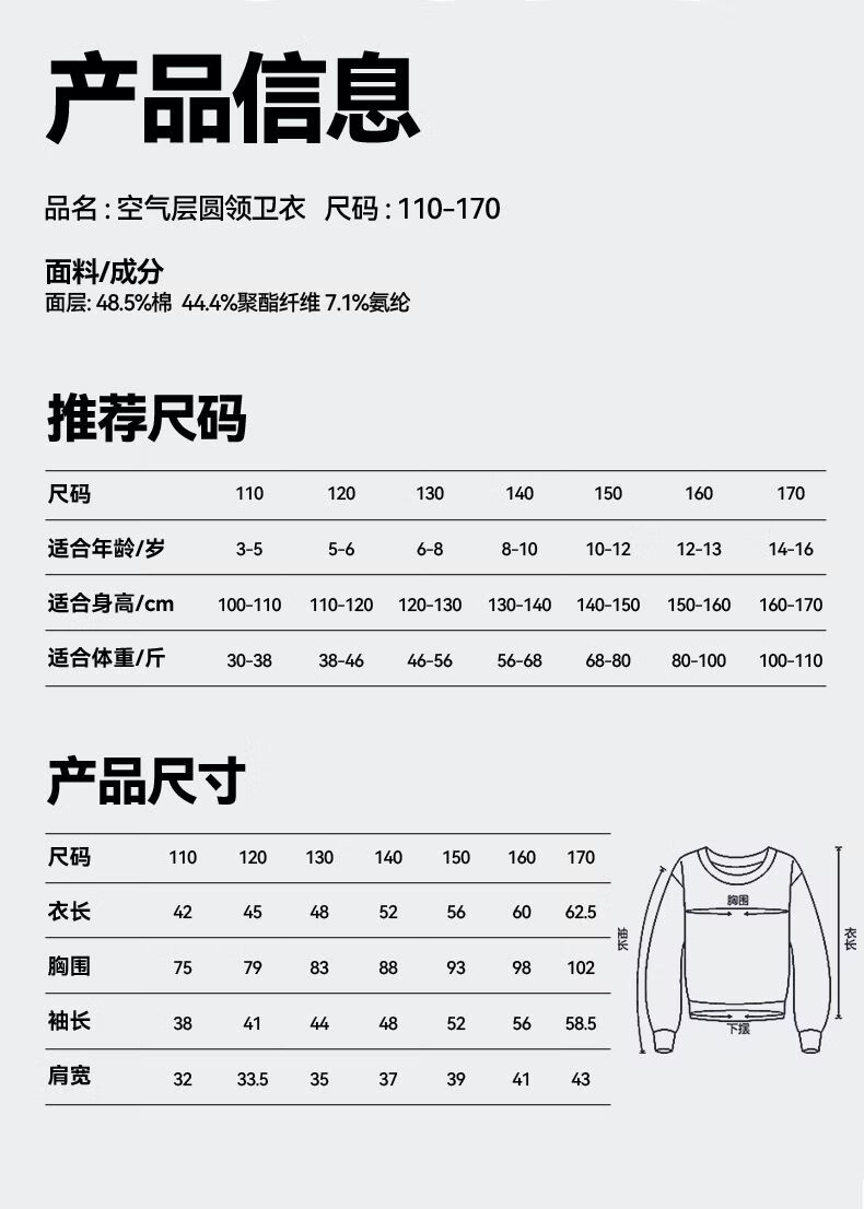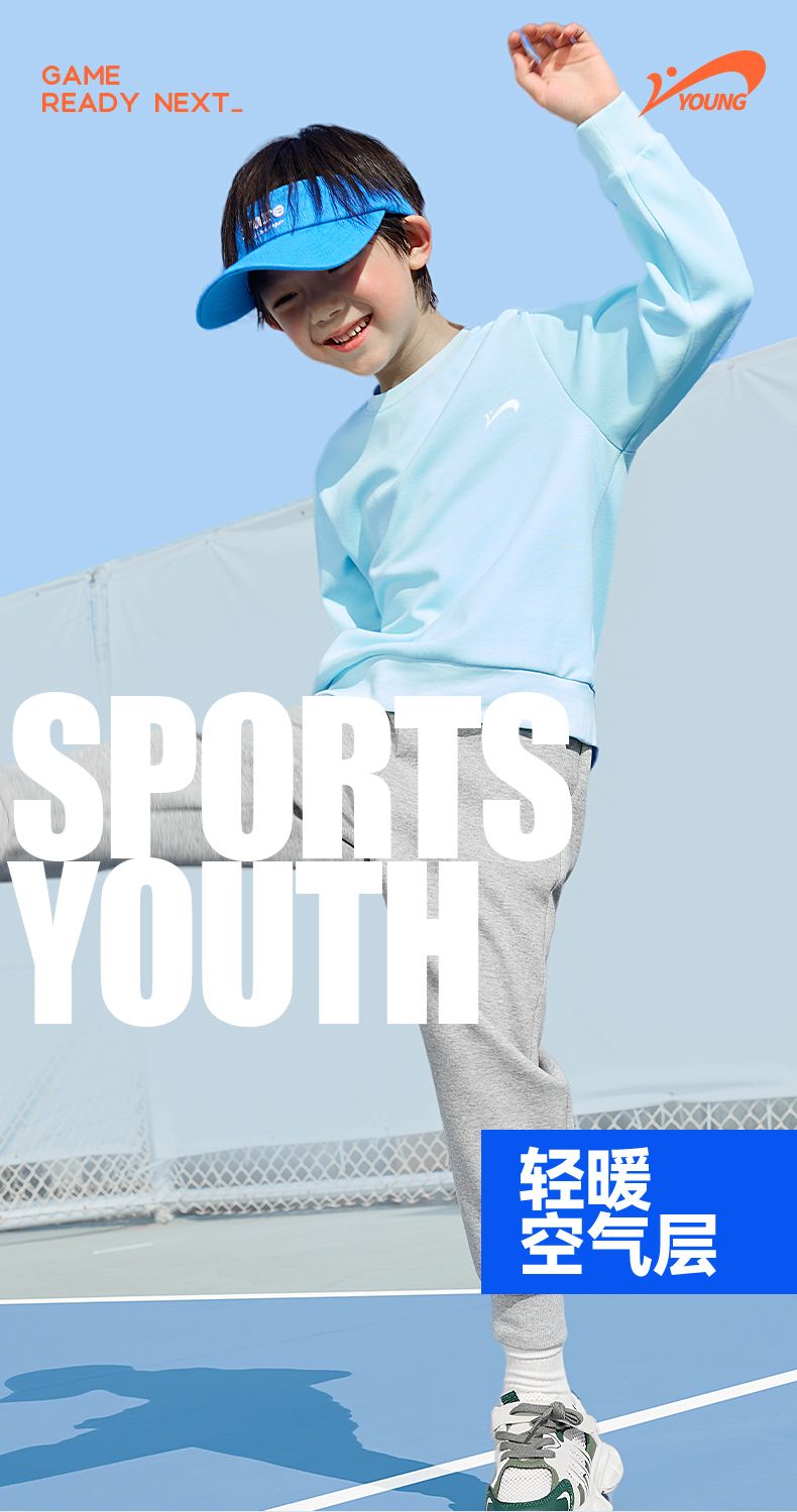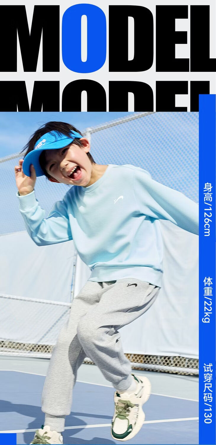 Guirenniao children's sweatshirt spring 2026 new boys' round neck sports tops spring and autumn big children's spring knitted pullover white/G orange line mark lower right + G Guirenniao orange silicone K 110