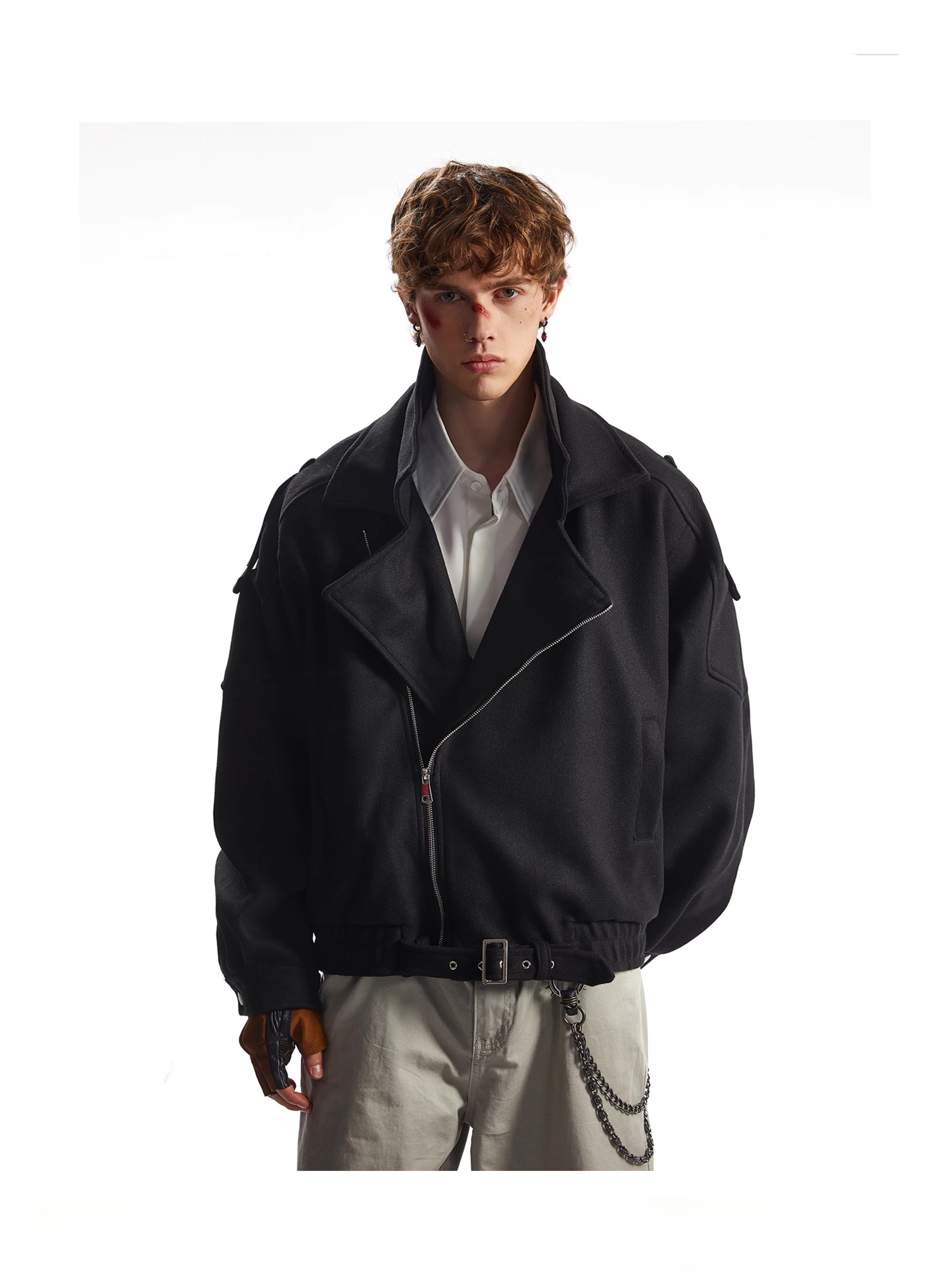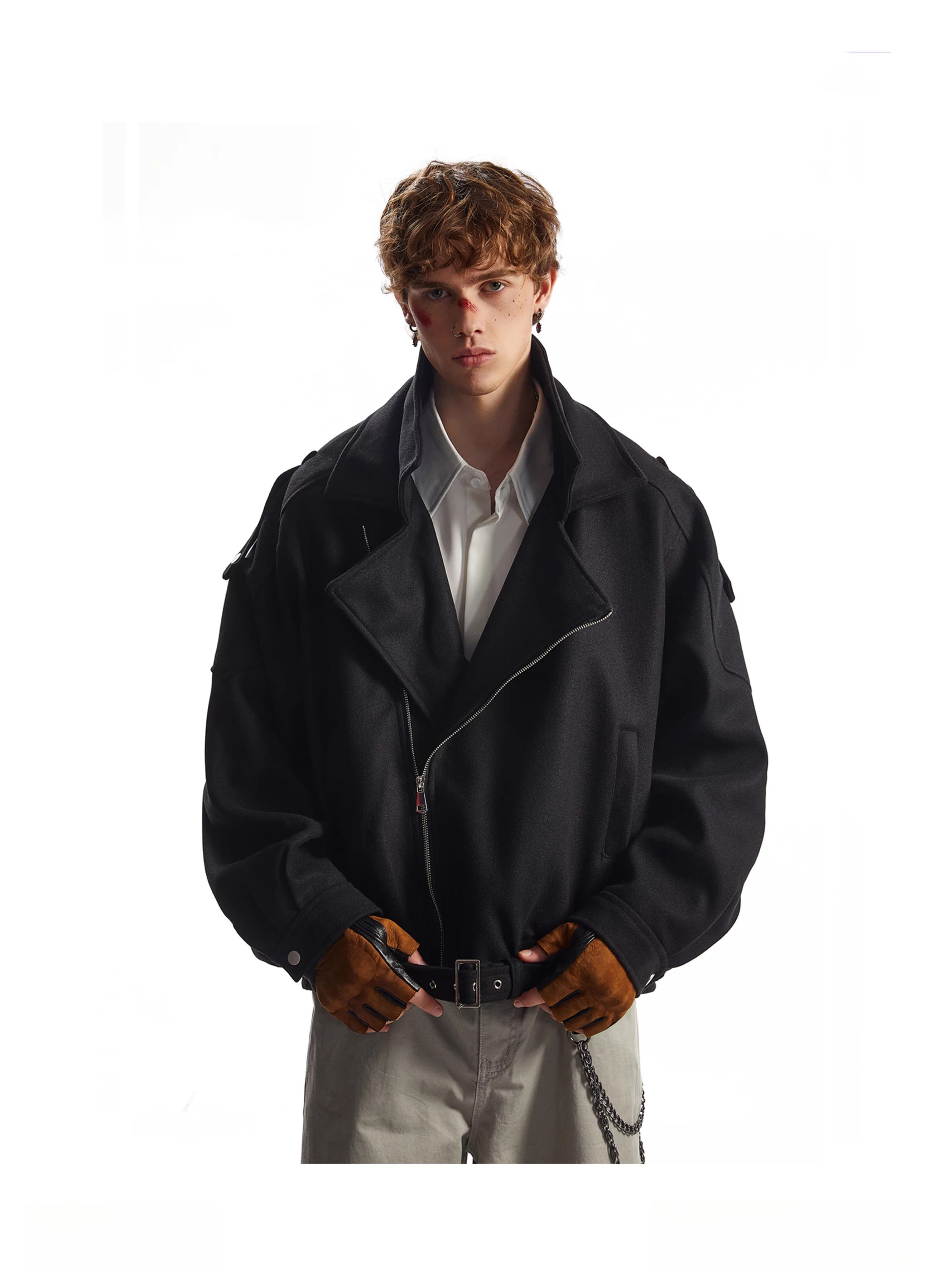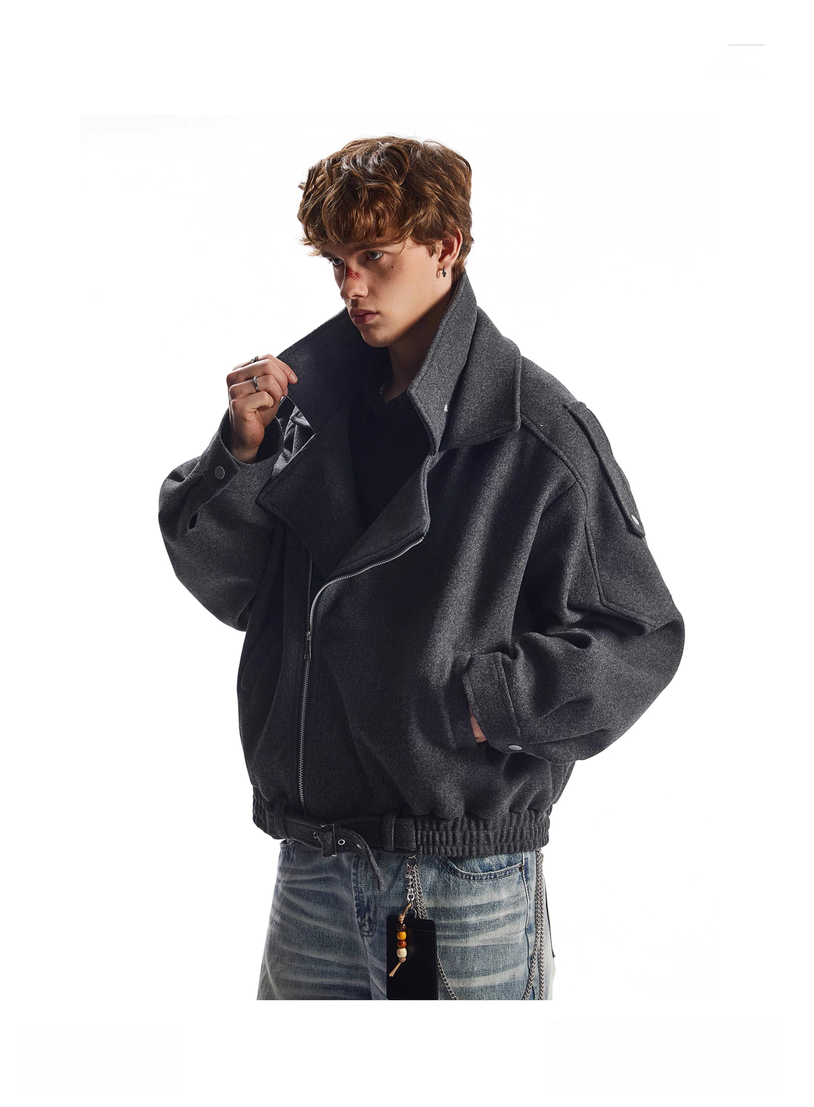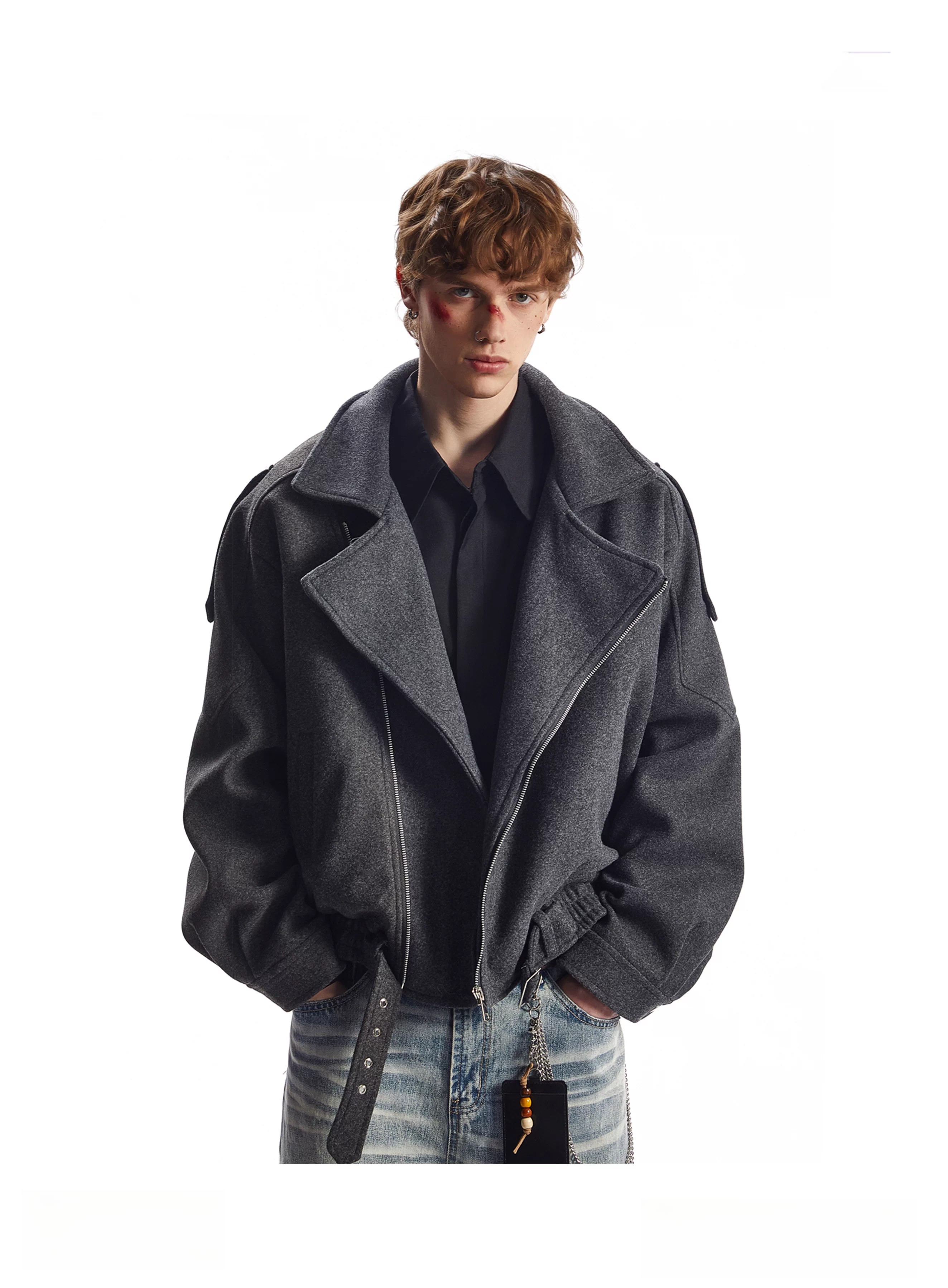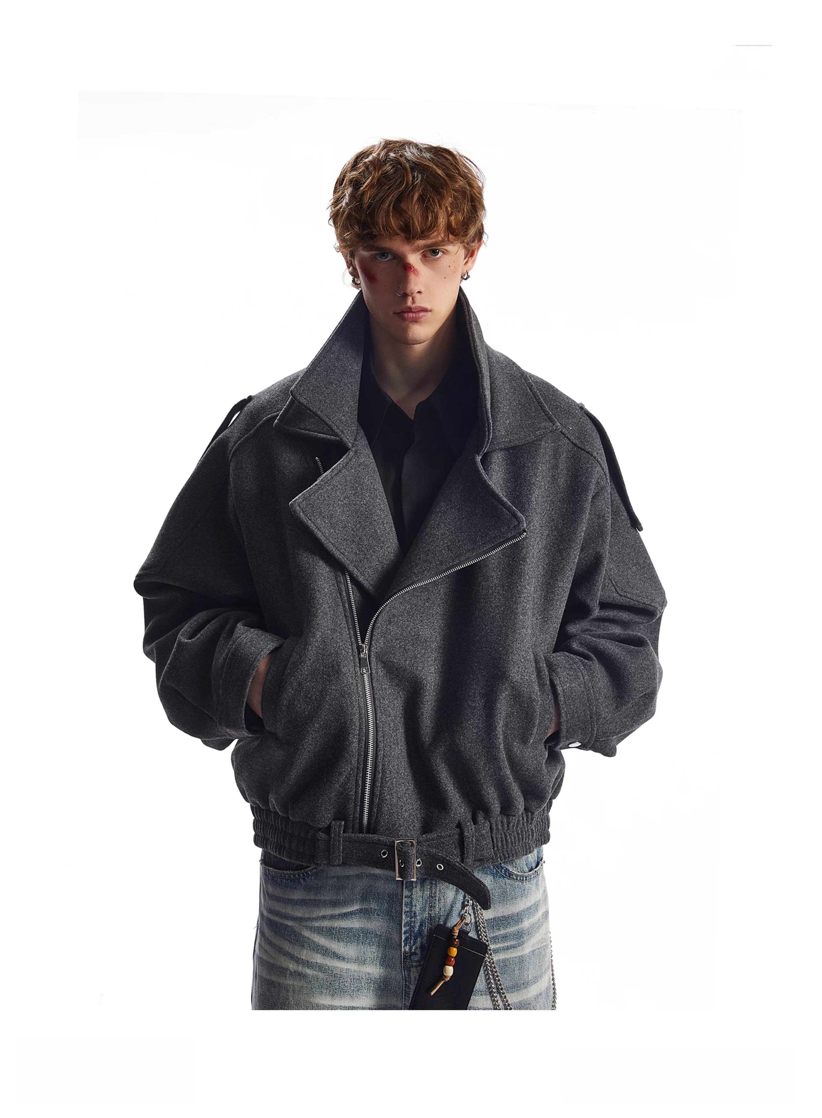 OEMG American retro deconstructed woolen coat men's autumn and winter tops thickened warm silhouette lapel jacket dark gray high quality XL recommended 110-130Jin Jin equals 0.5 kg