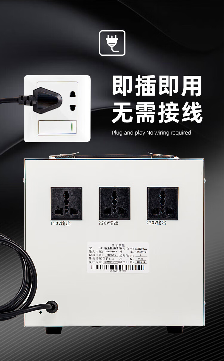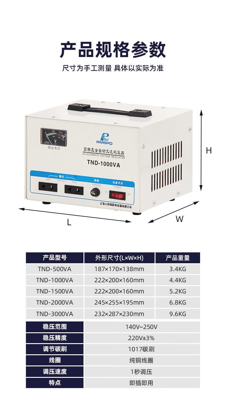 Shanghai People's single-phase voltage stabilizer 220V intelligent automatic household regulated power supply SVC-500VA SVC-1000VA