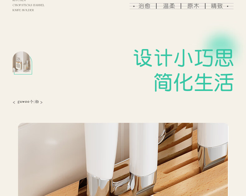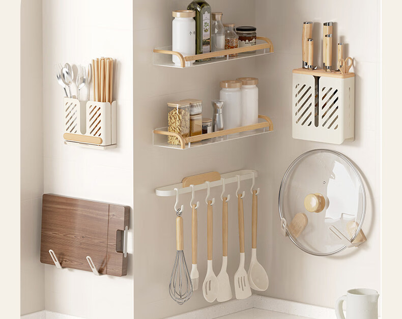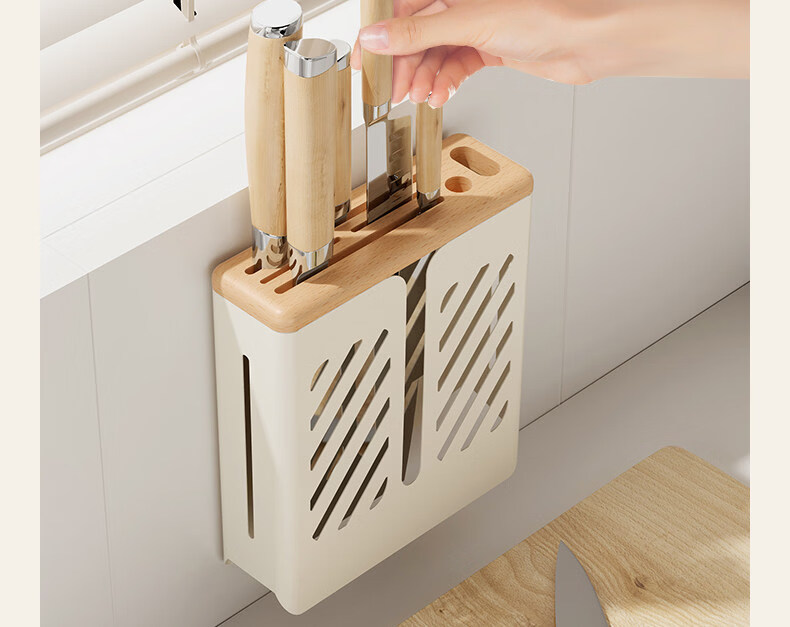 Tuojin imported quality log knife holder from Germany, cream style wall-mounted kitchen knife kitchen wall-mounted knife storage shelf home, log cream style chopstick tube + knife holder