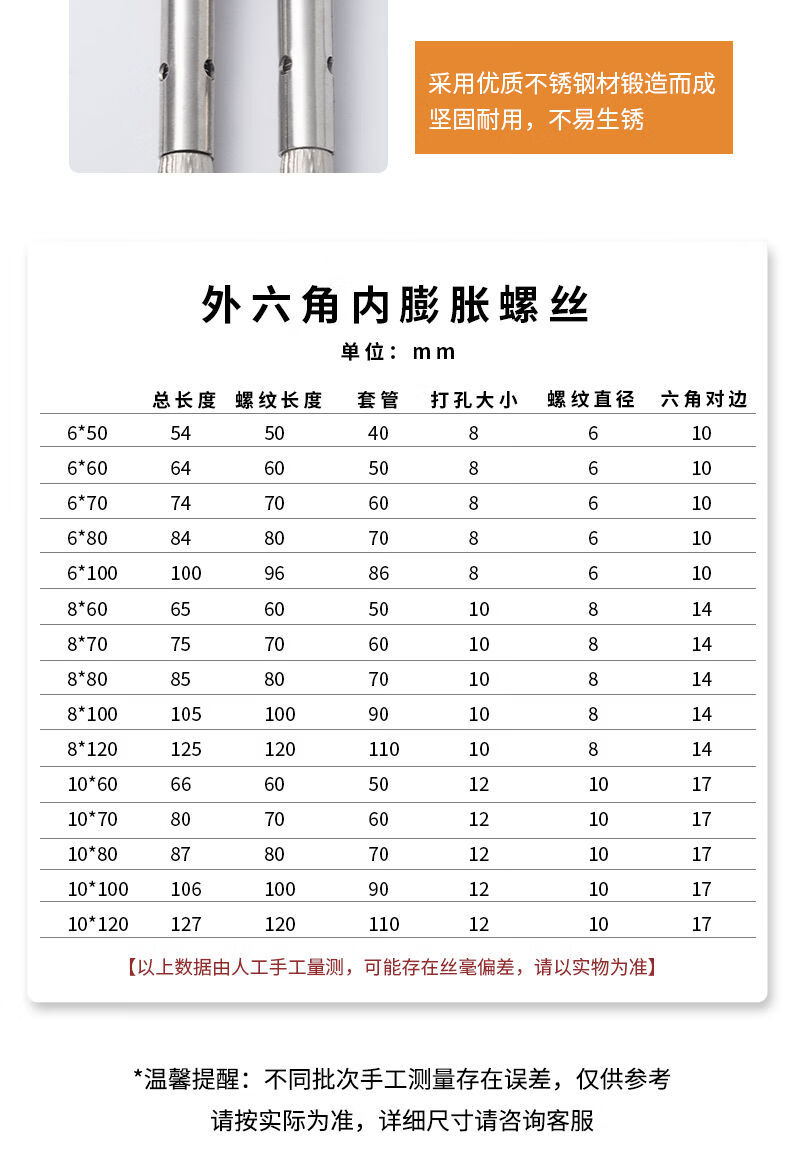 Wing Fantasy 201 external hexagonal expansion screw built-in expansion bolt floor expansion pull-in 304 M6 50 50 pcs