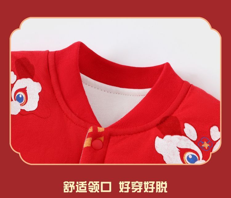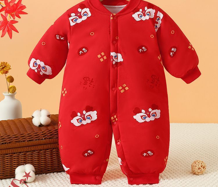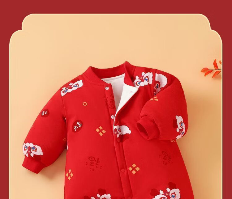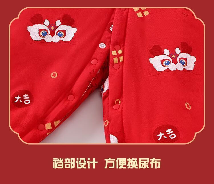 Modal baby full month clothes newborn jumpsuit autumn and winter baby robe pajamas newborn comfortable super thick new Chinese style Good Luck - light white 66cm recommended age 3-6 months weight 6-10Jin Jin equals 0.5 kg