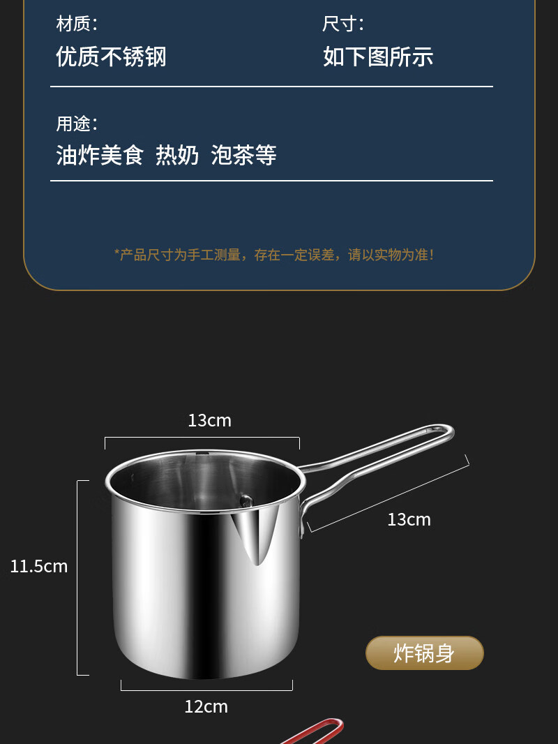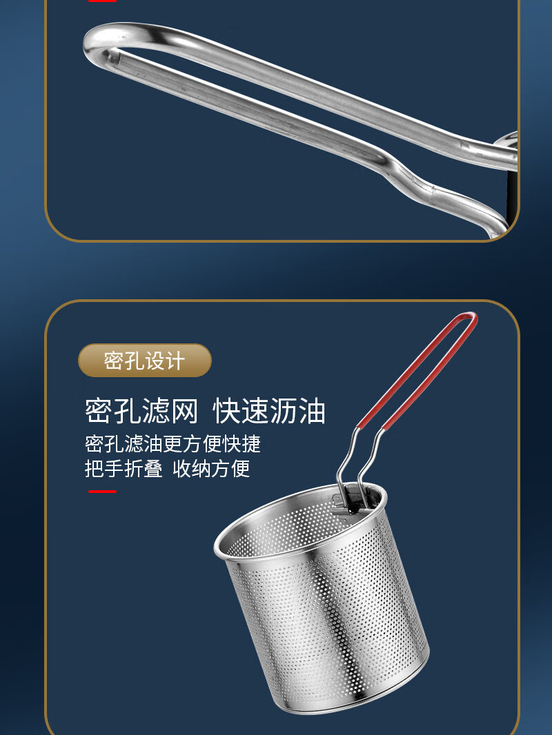 Zwilling German quality stainless steel frying pan household small frying pan with filter induction cooker mini fuel-saving food grade stainless steel small frying pan + frying basket 1 inch