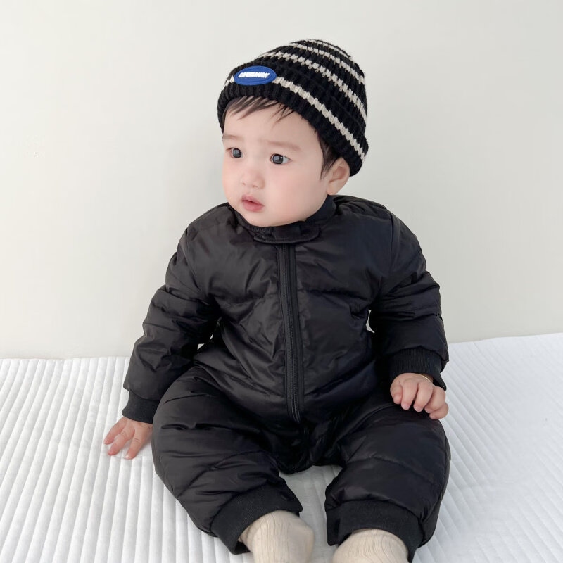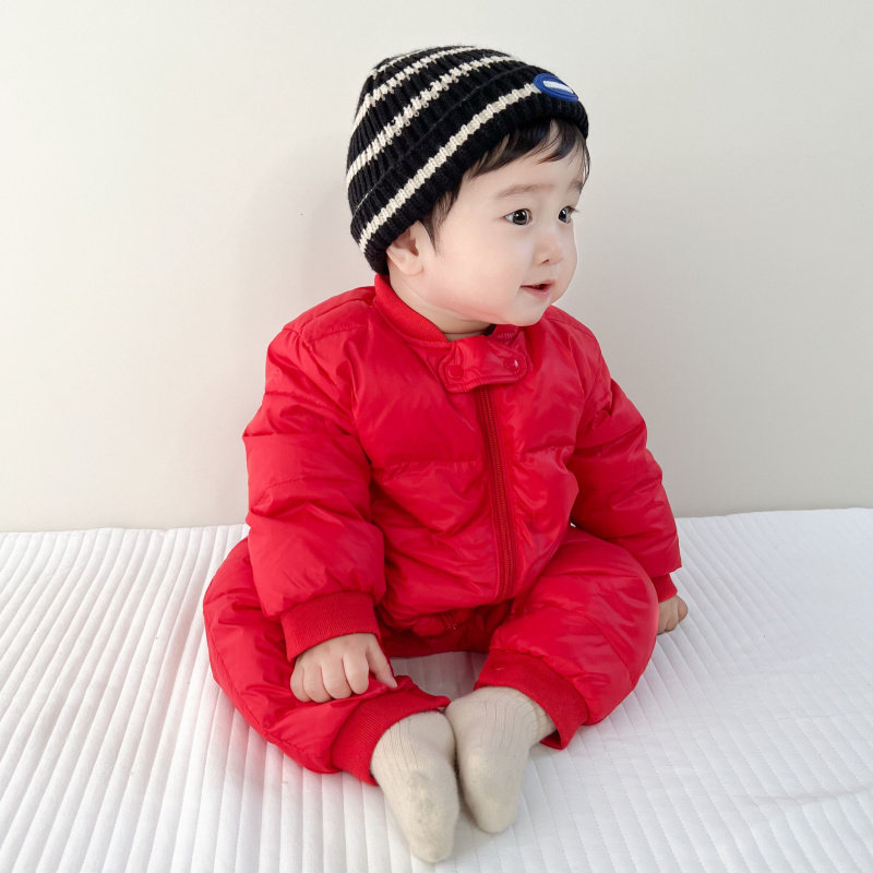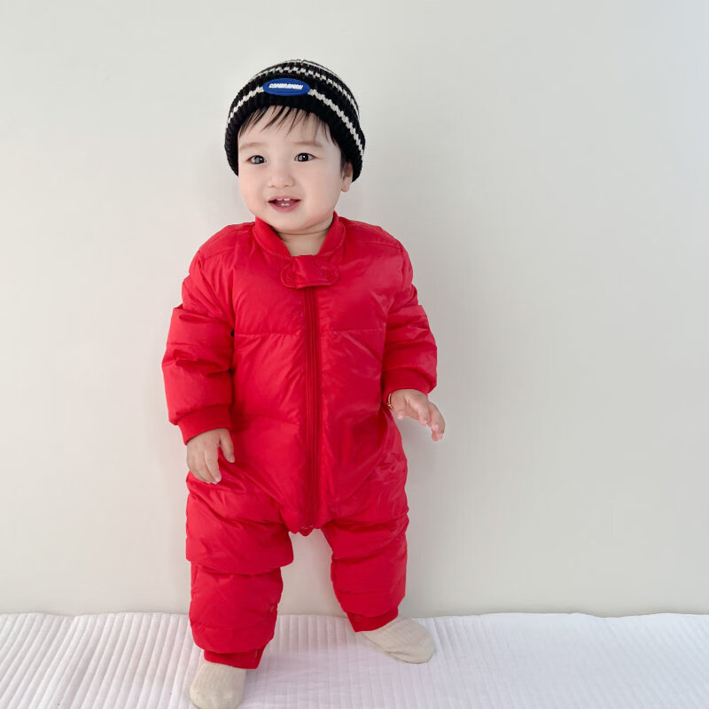 Disney (Disney) baby winter down jumpsuit for men and women, thickened winter outdoor clothing, plus fleece rompers, children's warm clothes, red down jumpsuit 36cm 100