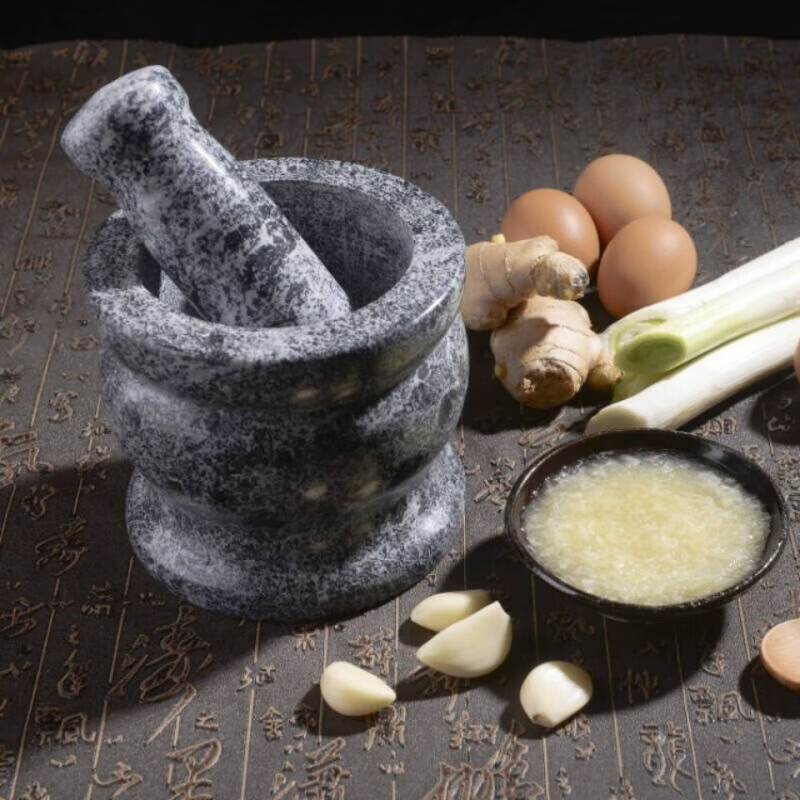 Tuojin manual stone mortar, stone garlic pounding jar, garlic pounding artifact, manual grinder, old-fashioned pepper pounding machine, new medium bowl, household 11 cm polished stone mortar