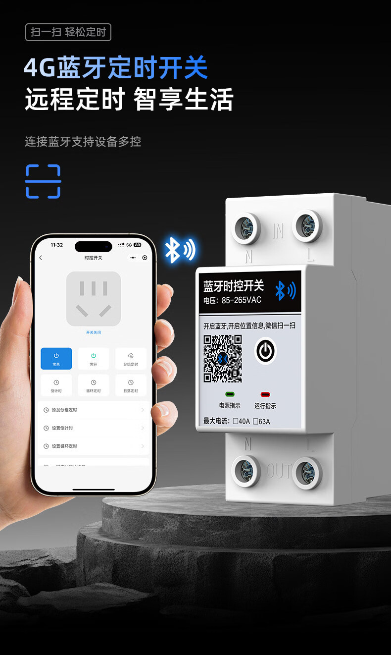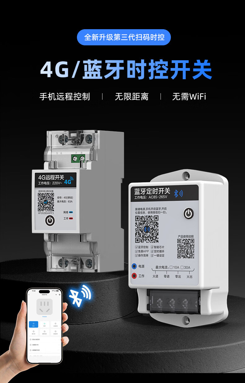 Intelligent time control switch 4G/Bluetooth/wifi mobile phone remote control timing longitude and latitude time controller 220V Bluetooth model 20 meters 220V 7 kilowatts_rail type