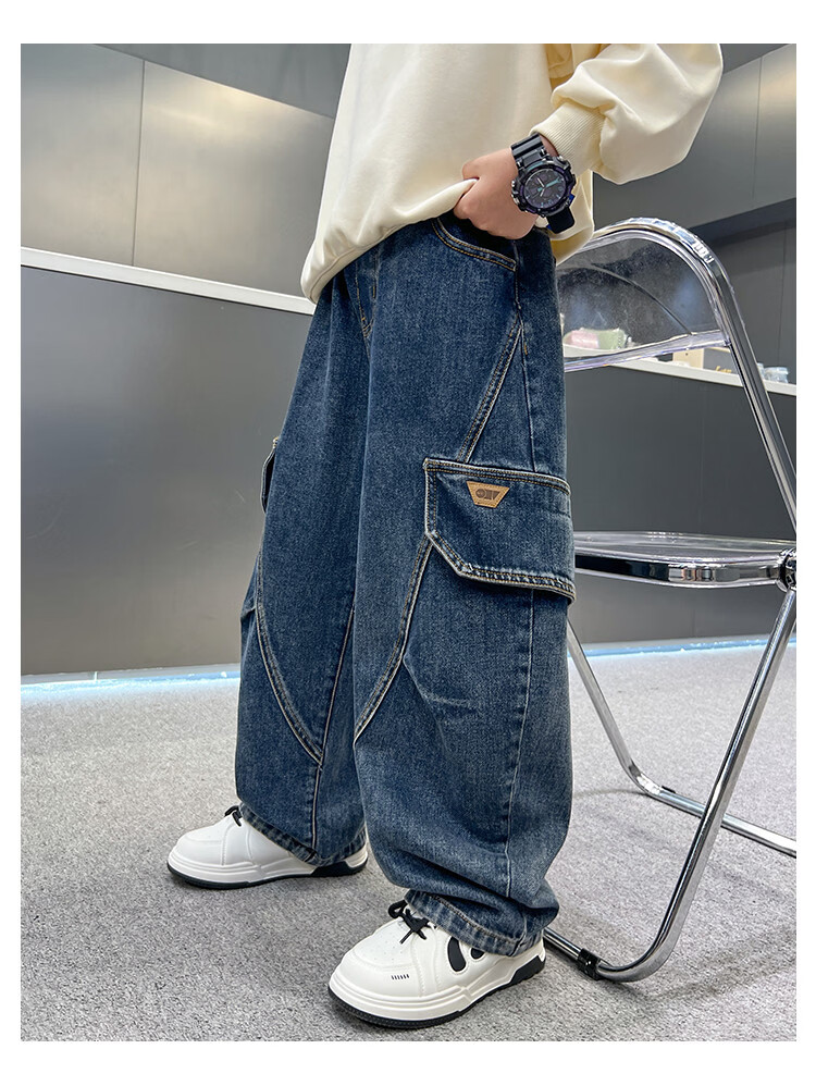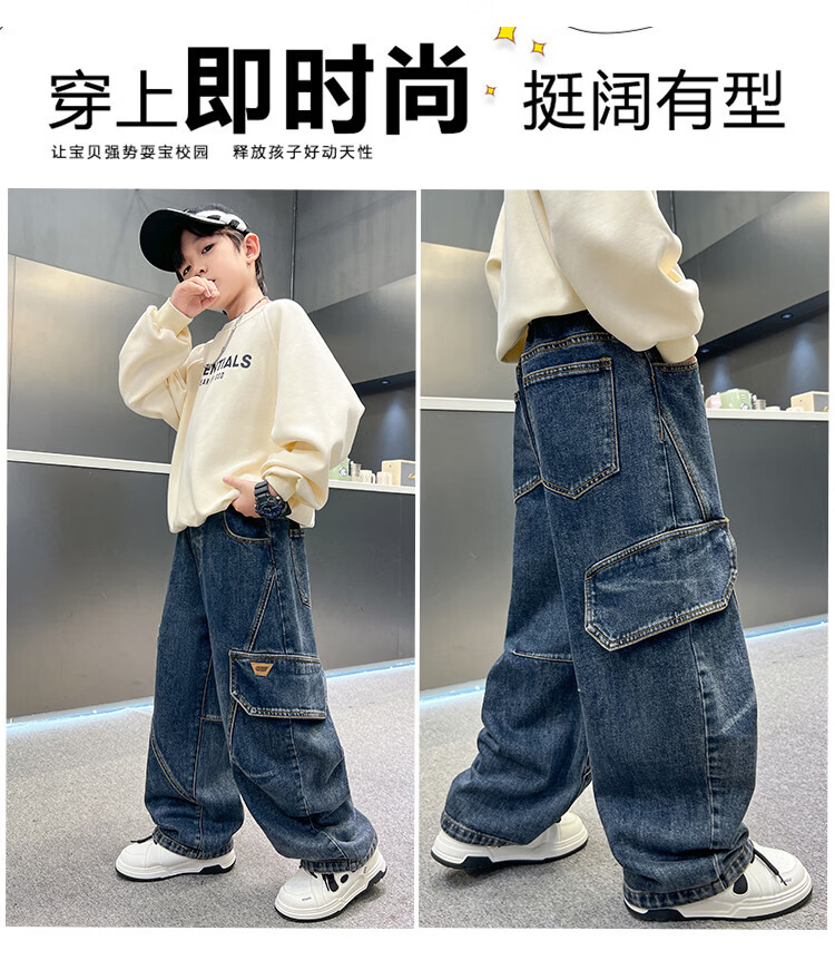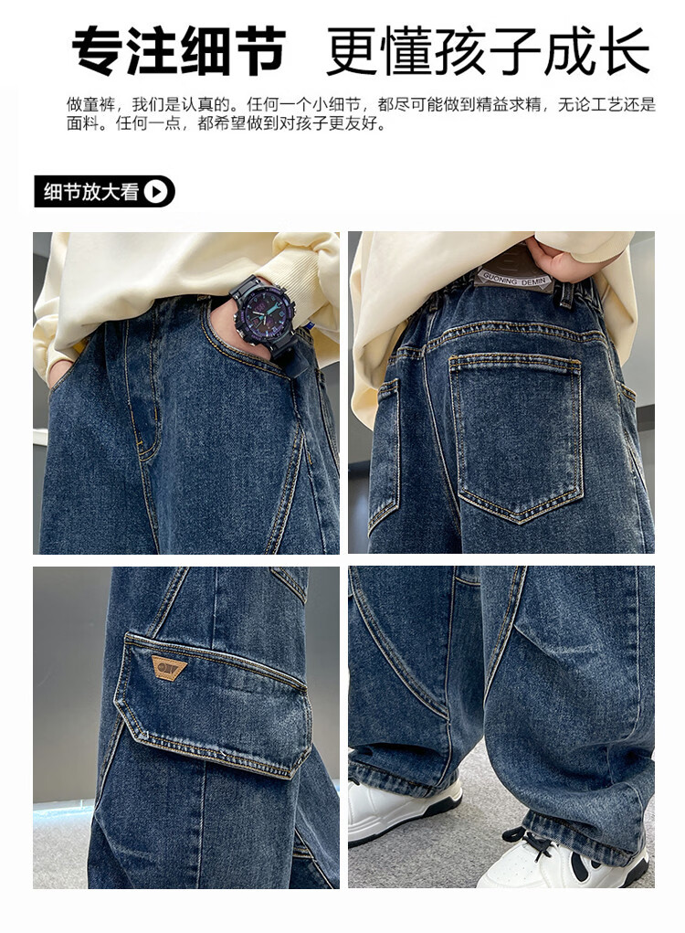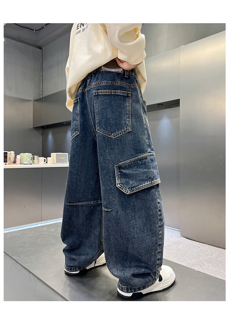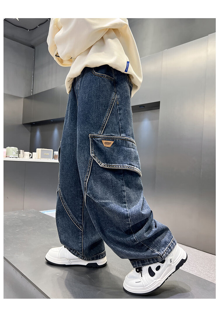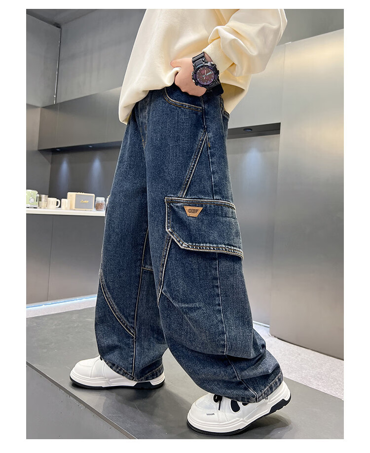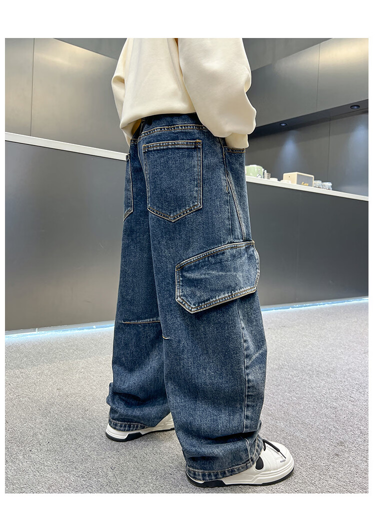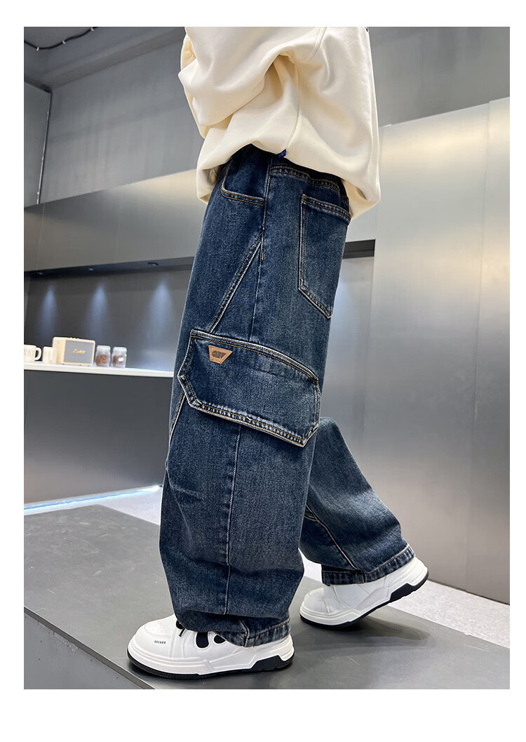 Disney Boys' Velvet Work Jeans Autumn and Winter New Middle and Large Boys' Winter Thickened One-Piece Pants Trendy New Year Cotton Jacket Blue Velvet 120 cm