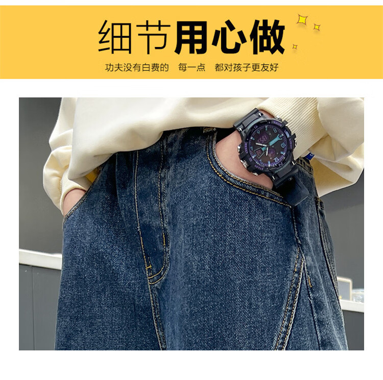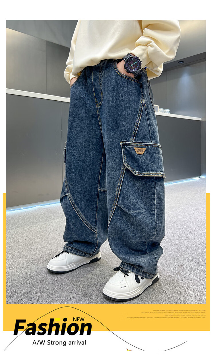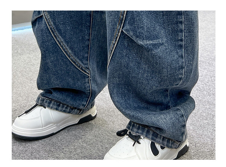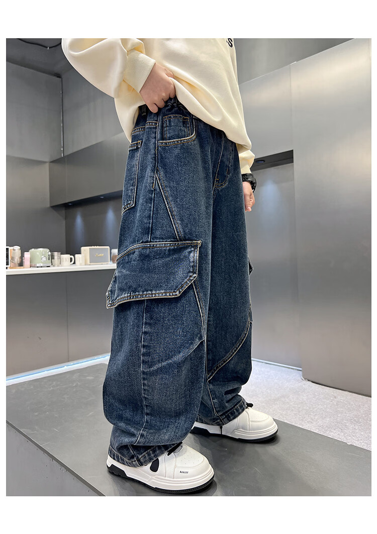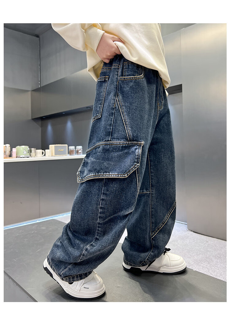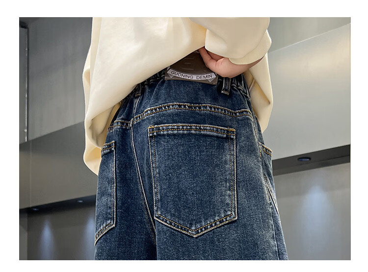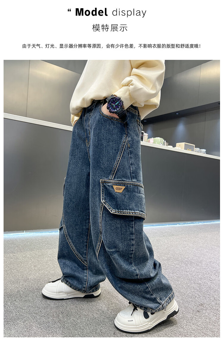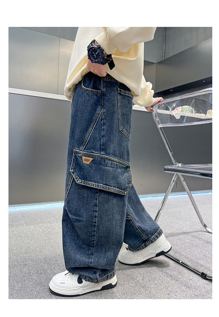 Disney Boys' Velvet Work Jeans Autumn and Winter New Middle and Large Boys' Winter Thickened One-Piece Pants Trendy New Year Cotton Jacket Blue Velvet 120 cm