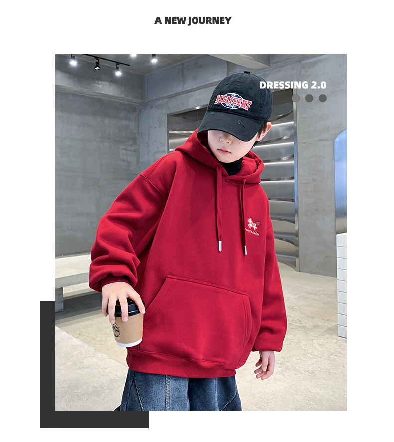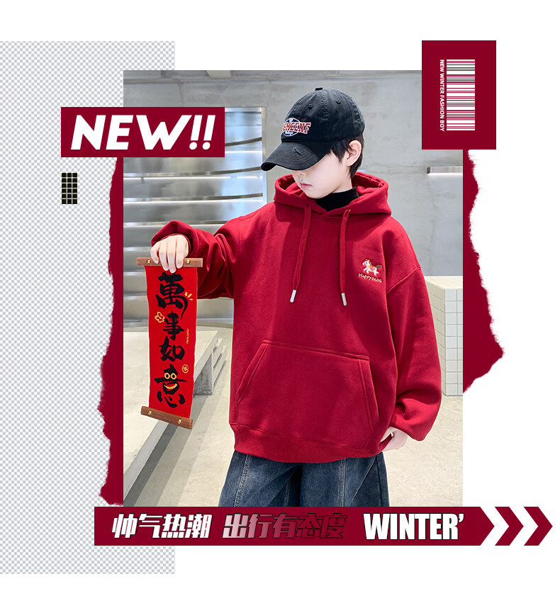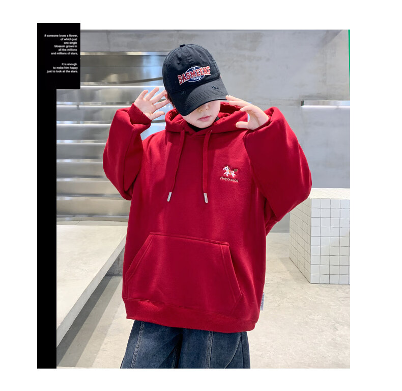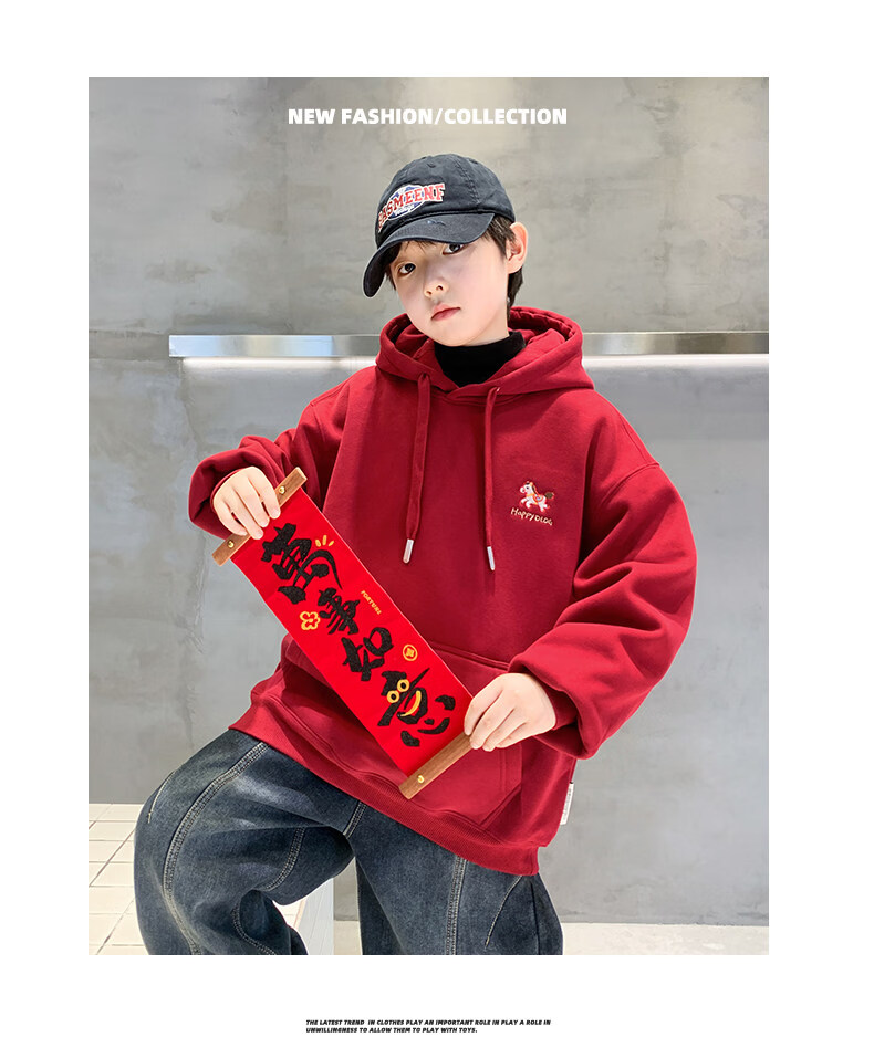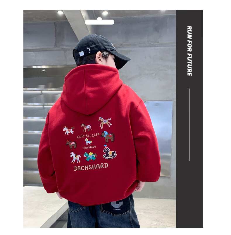 Disney Boys Red Sweatshirt Autumn and Winter New Children's Zodiac New Year Year of the Horse Thickened Winter Velvet New Year's Eve Clothing New Year Cotton Jacket Style Red Velvet Thickened 130 cm