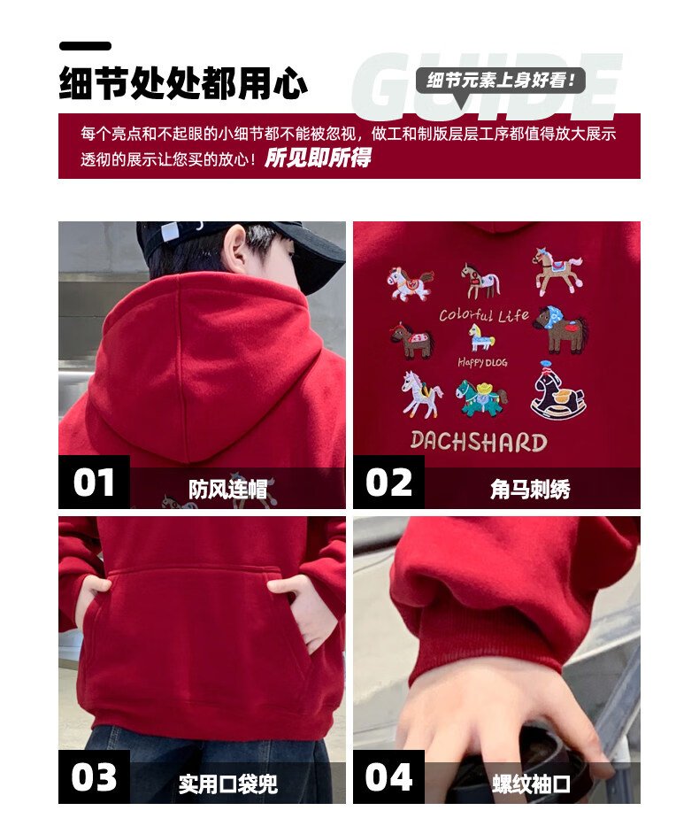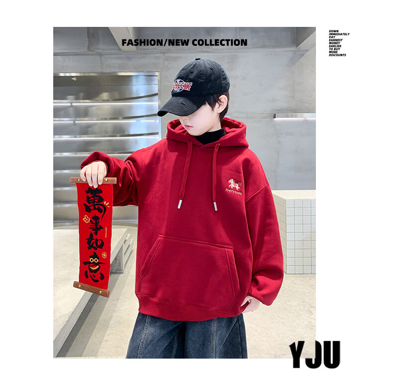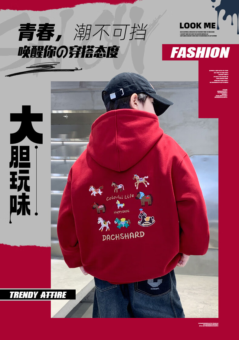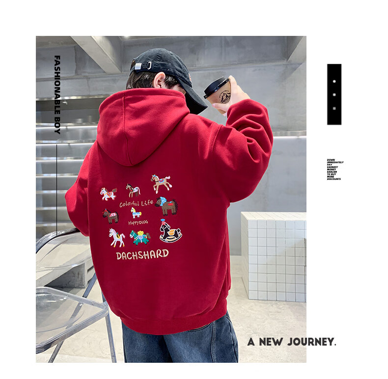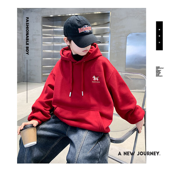 Disney Boys Red Sweatshirt Autumn and Winter New Children's Zodiac New Year Year of the Horse Thickened Winter Velvet New Year's Eve Clothing New Year Cotton Jacket Style Red Velvet Thickened 130 cm