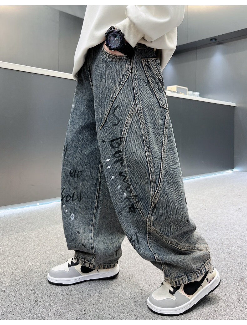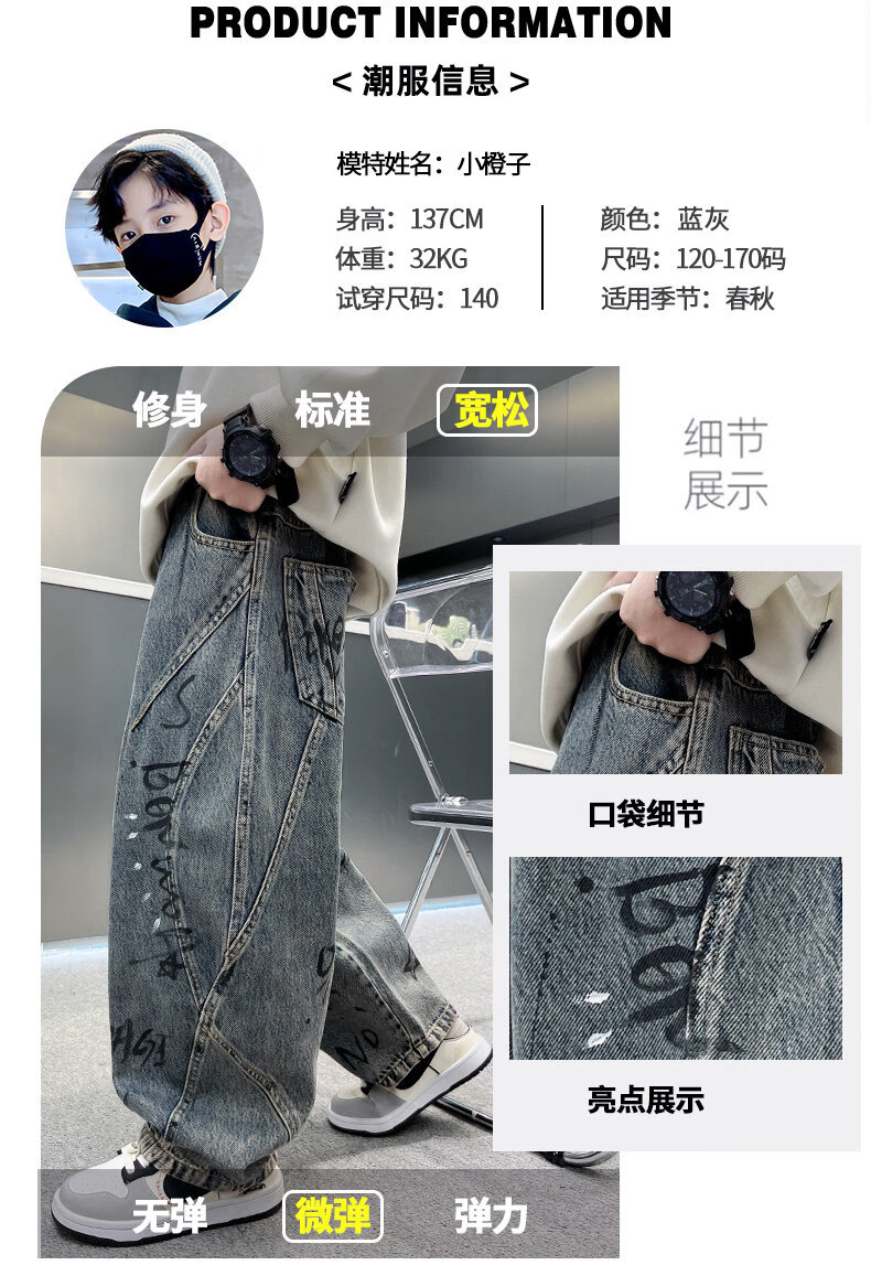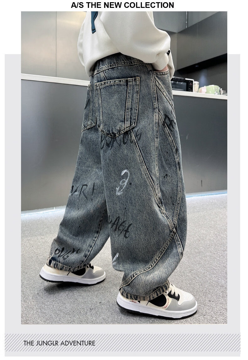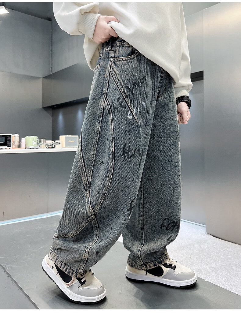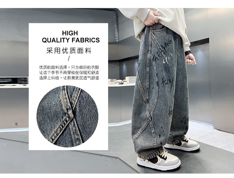 Disney children's clothing boys' velvet pants winter new denim thickened boys' winter autumn and winter styles for middle-aged and older children to celebrate the new year cotton coat style blue and gray velvet thickened 150 cm