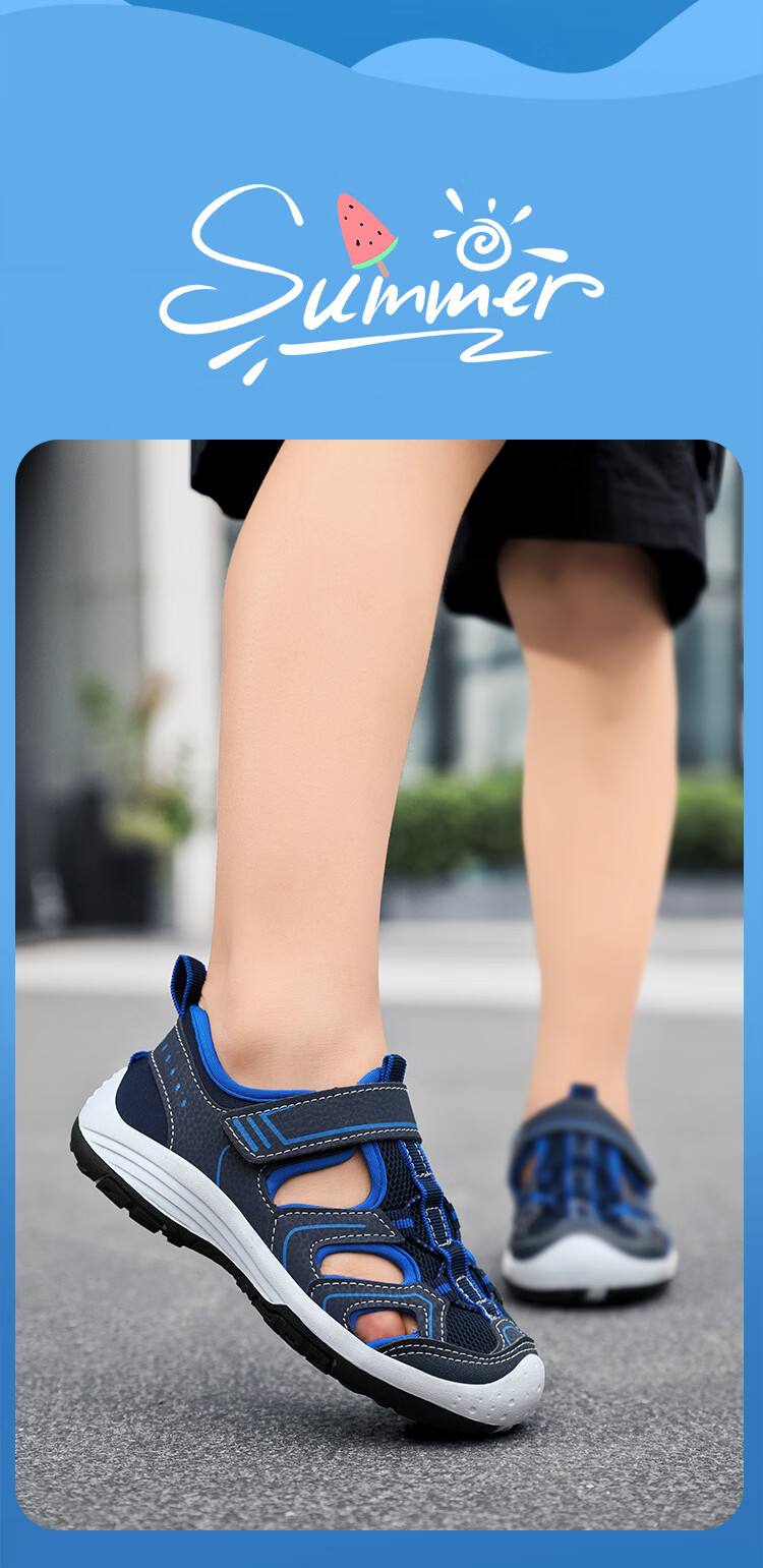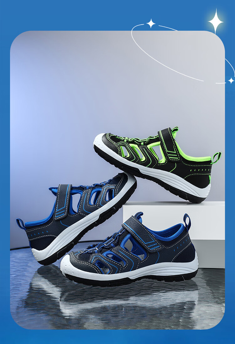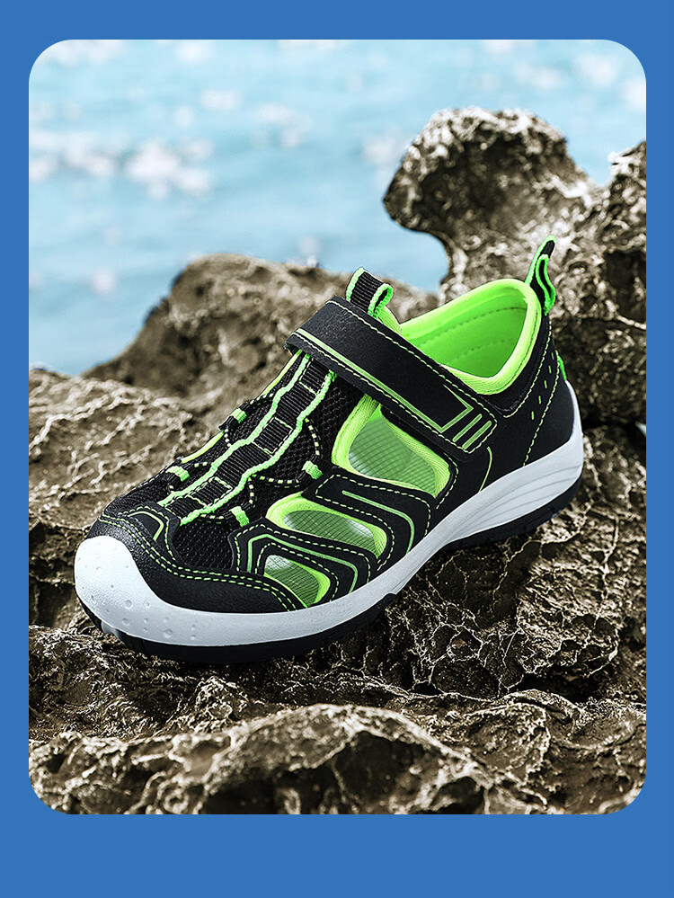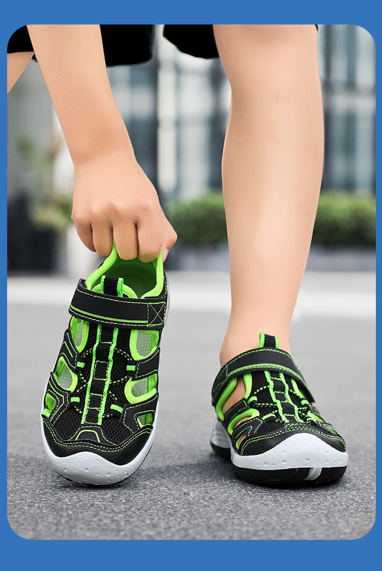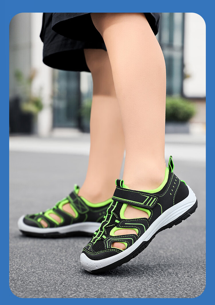 Baotou sandals 2025 summer new non-slip outdoor frame for boys wading sports beach sandals for older children fluorescent green 36