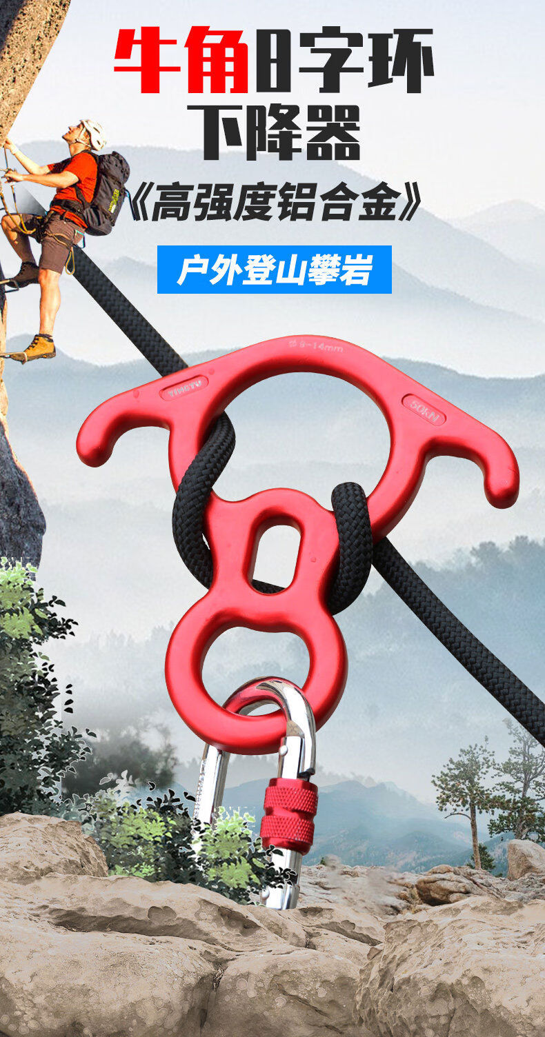 Rock climbing equipment horn 8-shaped ring descender slow descent device eight-shaped ring speed descender rock climbing descender rock climbing tool orange