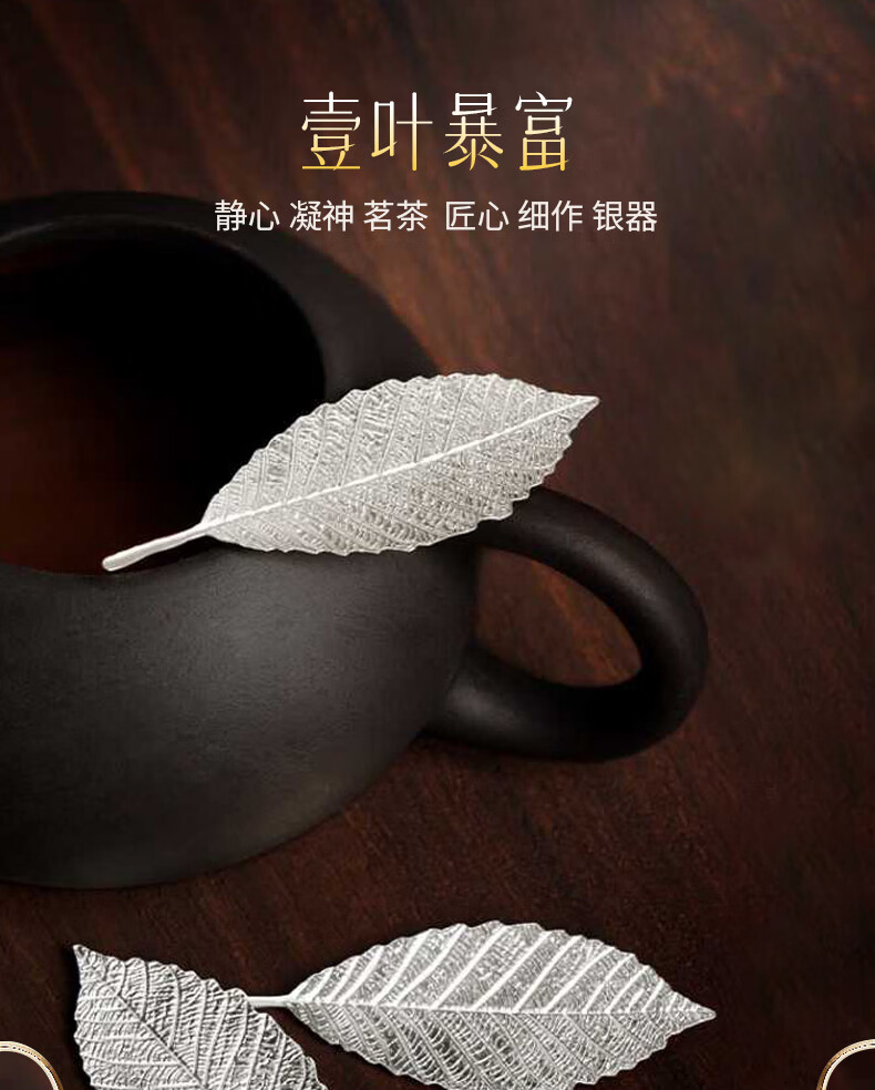 Liuguifu Jewelry Pure Silver 999 Silver Leaf Tea Companion Tea Pet Silver Bar Softening Water Quality Investment Collection Accessories New Year Gift One Leaf Rich Leaf About 2g