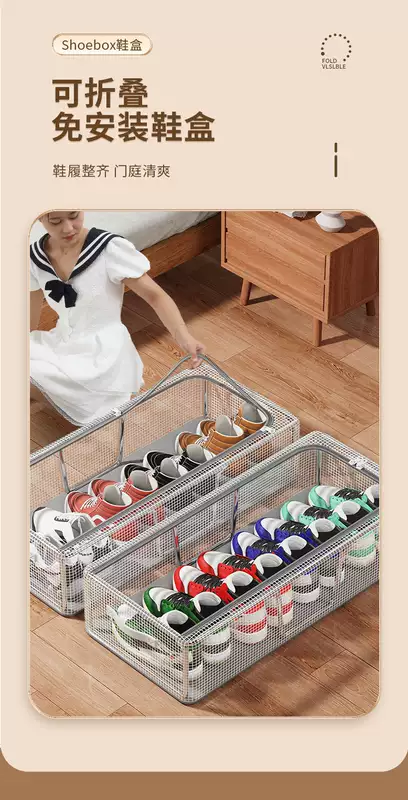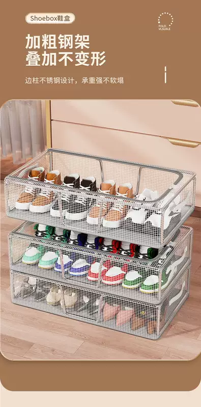 Yusenyi Shoe Box Shoe Storage Magic Transparent Space-Saving Dustproof Shoe Cabinet for Boots Drawer-type Bed Bottom Foldable Shoe Rack Medium Size (1 Pack) Bold Steel Frame Stable Stacking