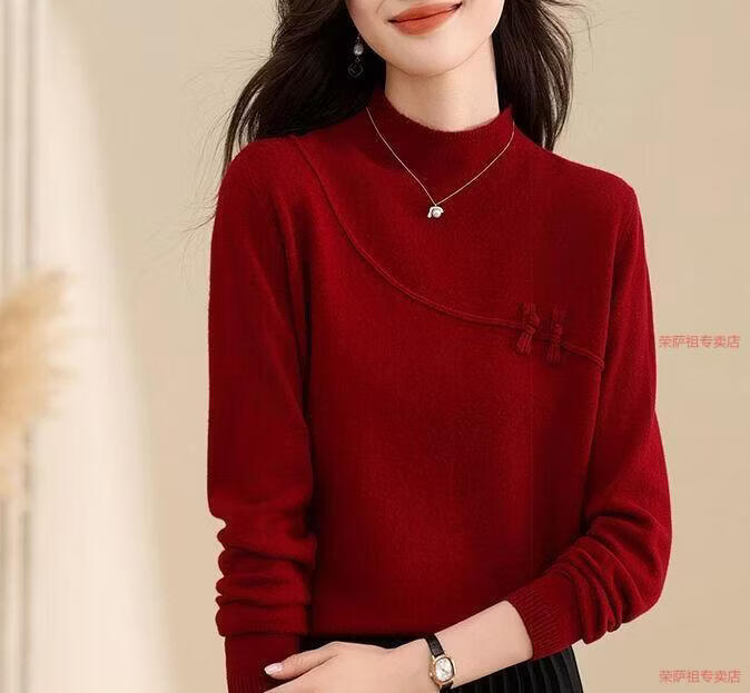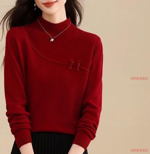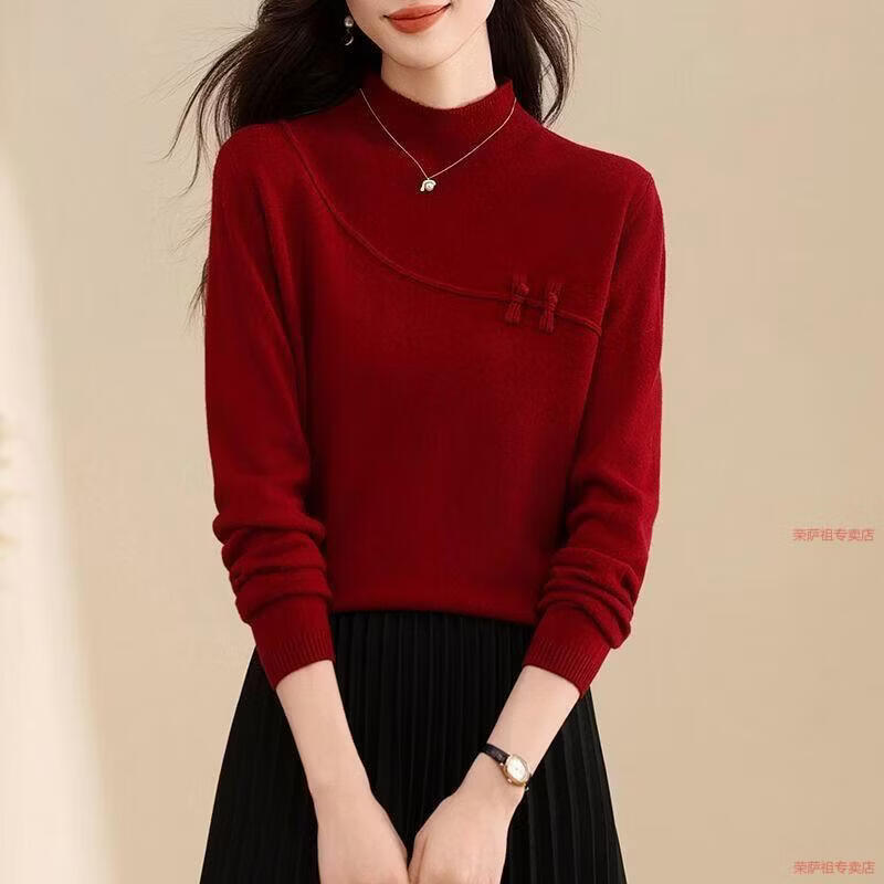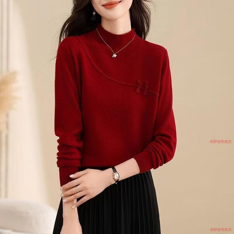 Hengyuanxiang 2026 Spring Festival Retro Red Sweater Women's Wool Knitted Bottoming Top Chinese Style Women's Autumn and Winter Bottoming Top Red 4331# M 94-110Jin Jin is equal to 0.5 kg