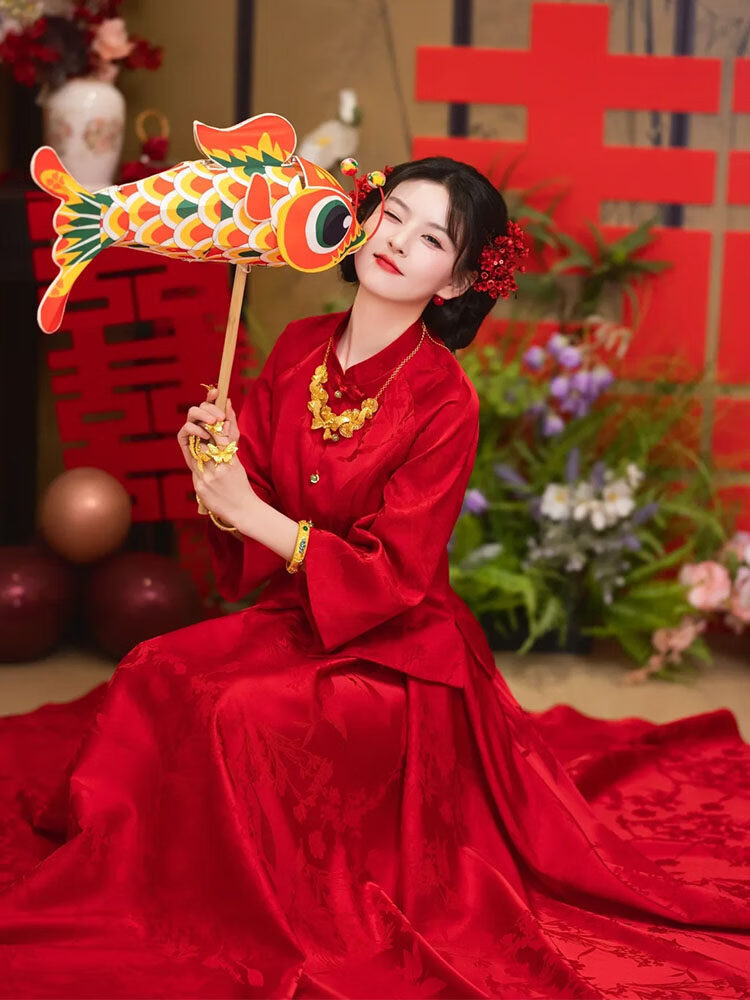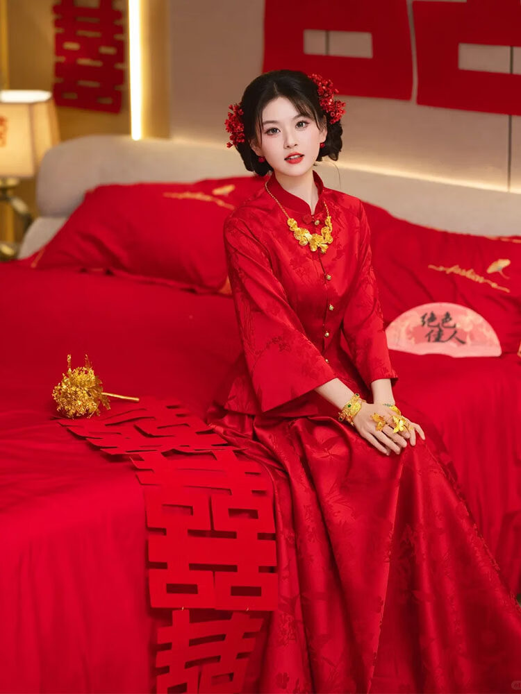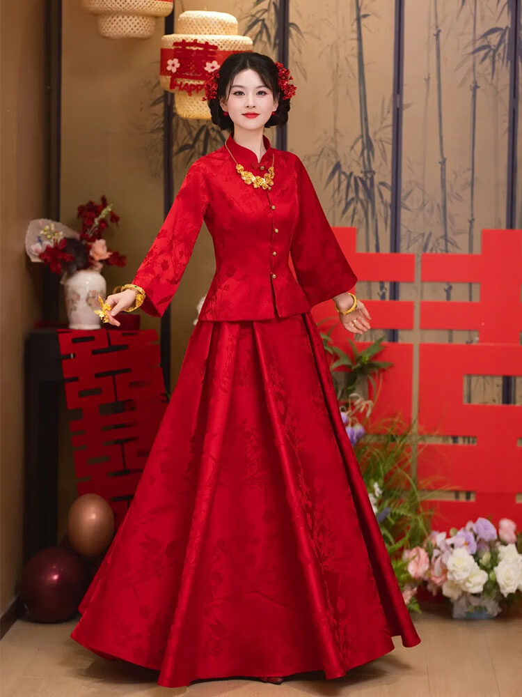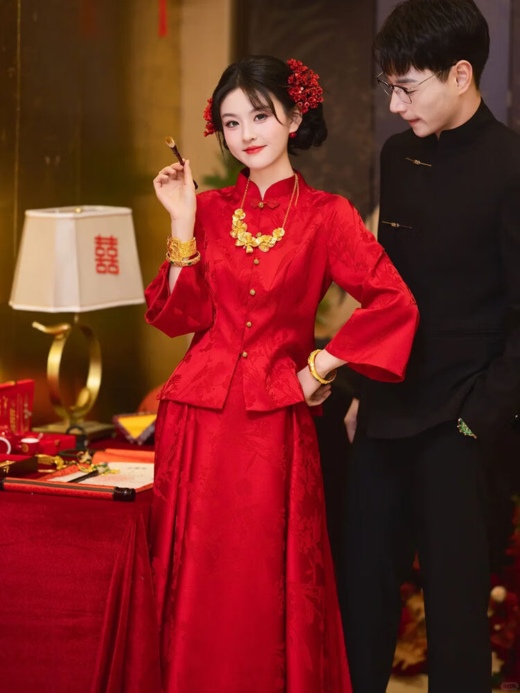 Wanzhuang New Chinese Style Red Toasting Wear Women's Autumn Two-piece Set Red Set S