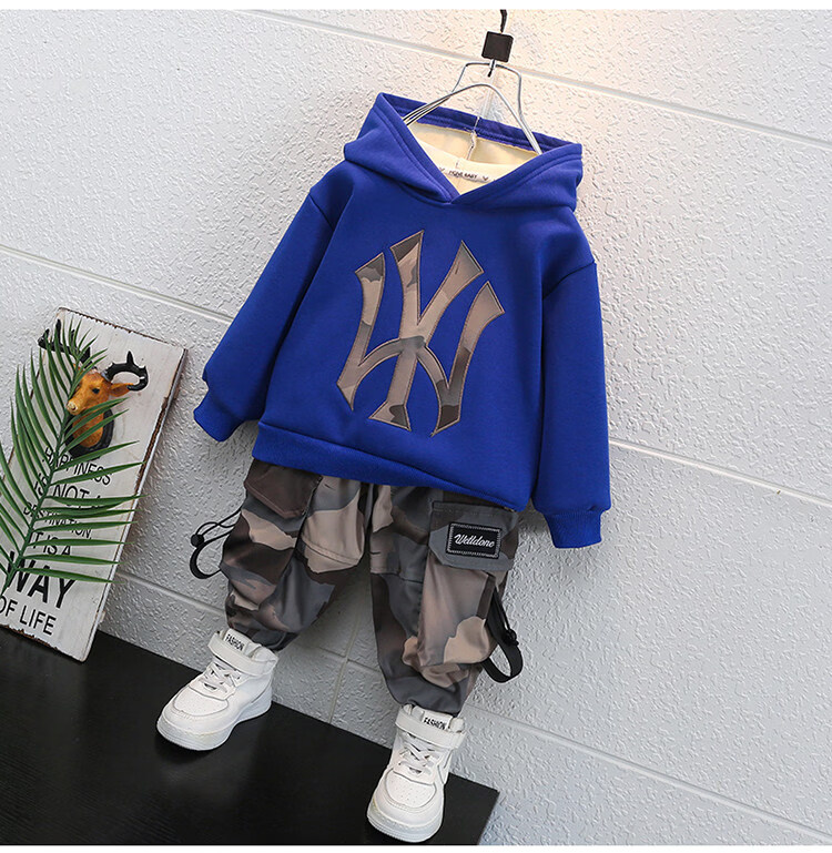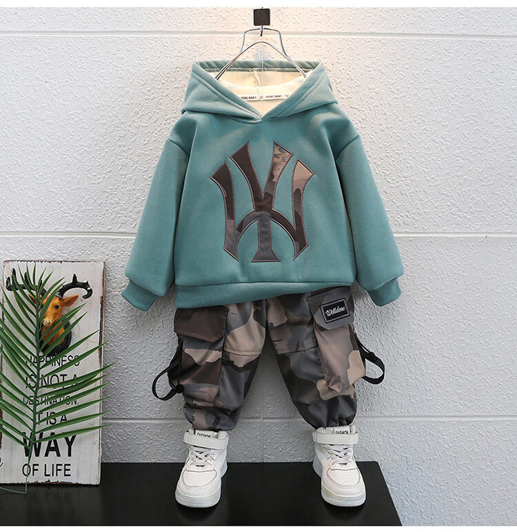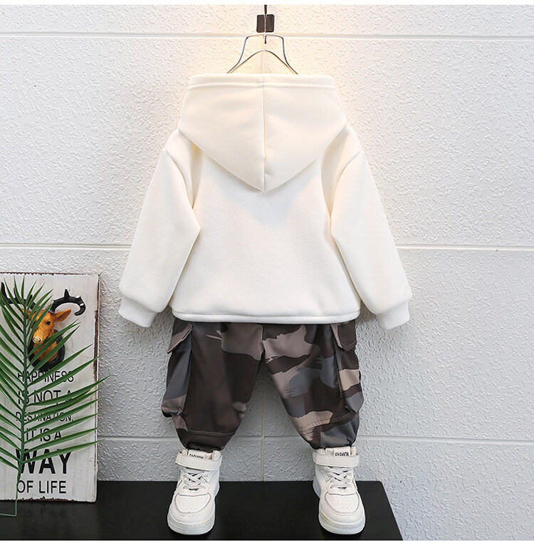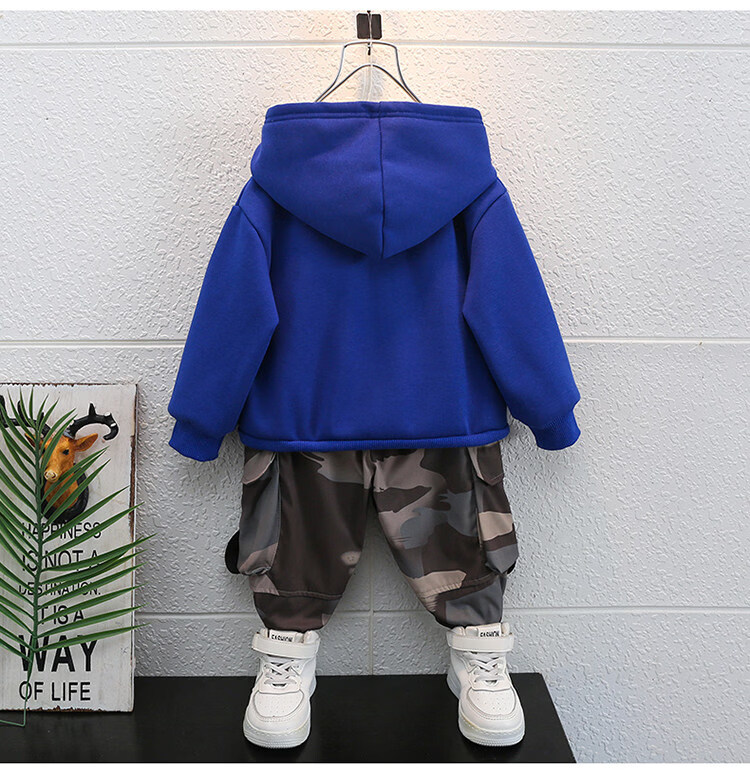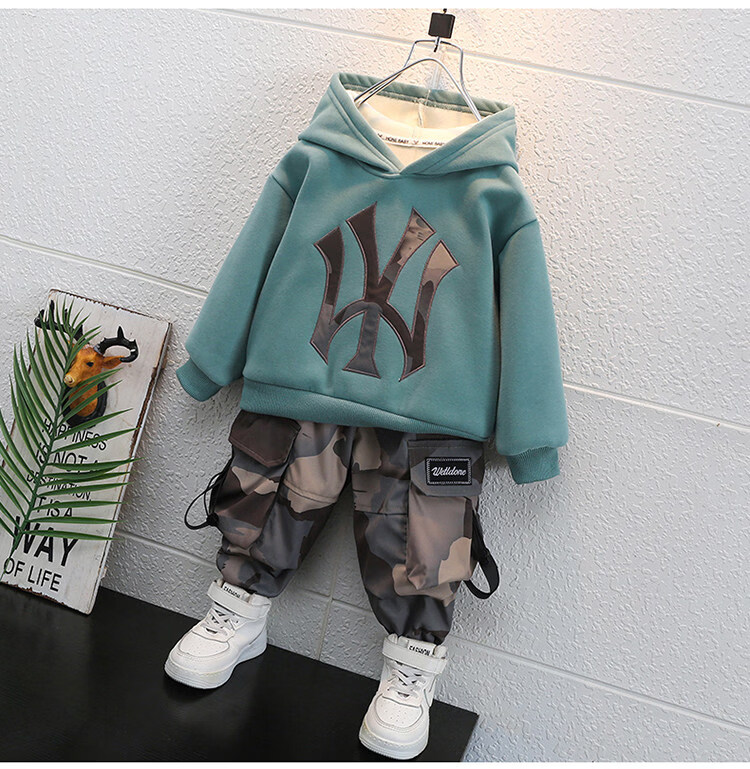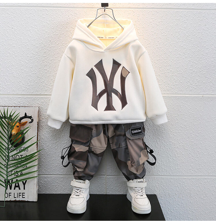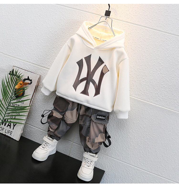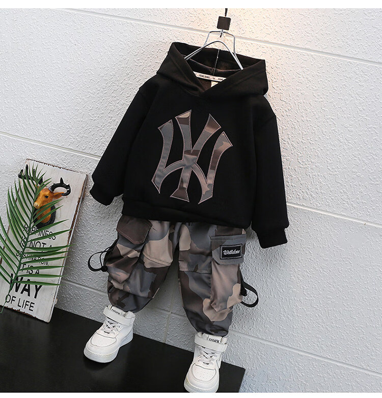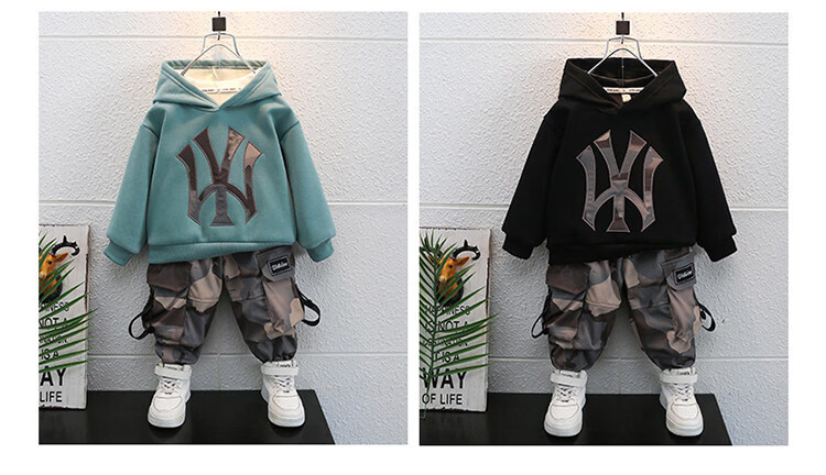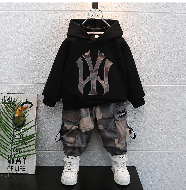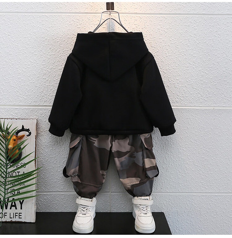 Qi Yuemang Boys Autumn and Winter Clothing Set 2026 Western Style Children's Clothes Children's Plus Velvet Thickened Cotton Two-piece Set Trendy Black 90 cm