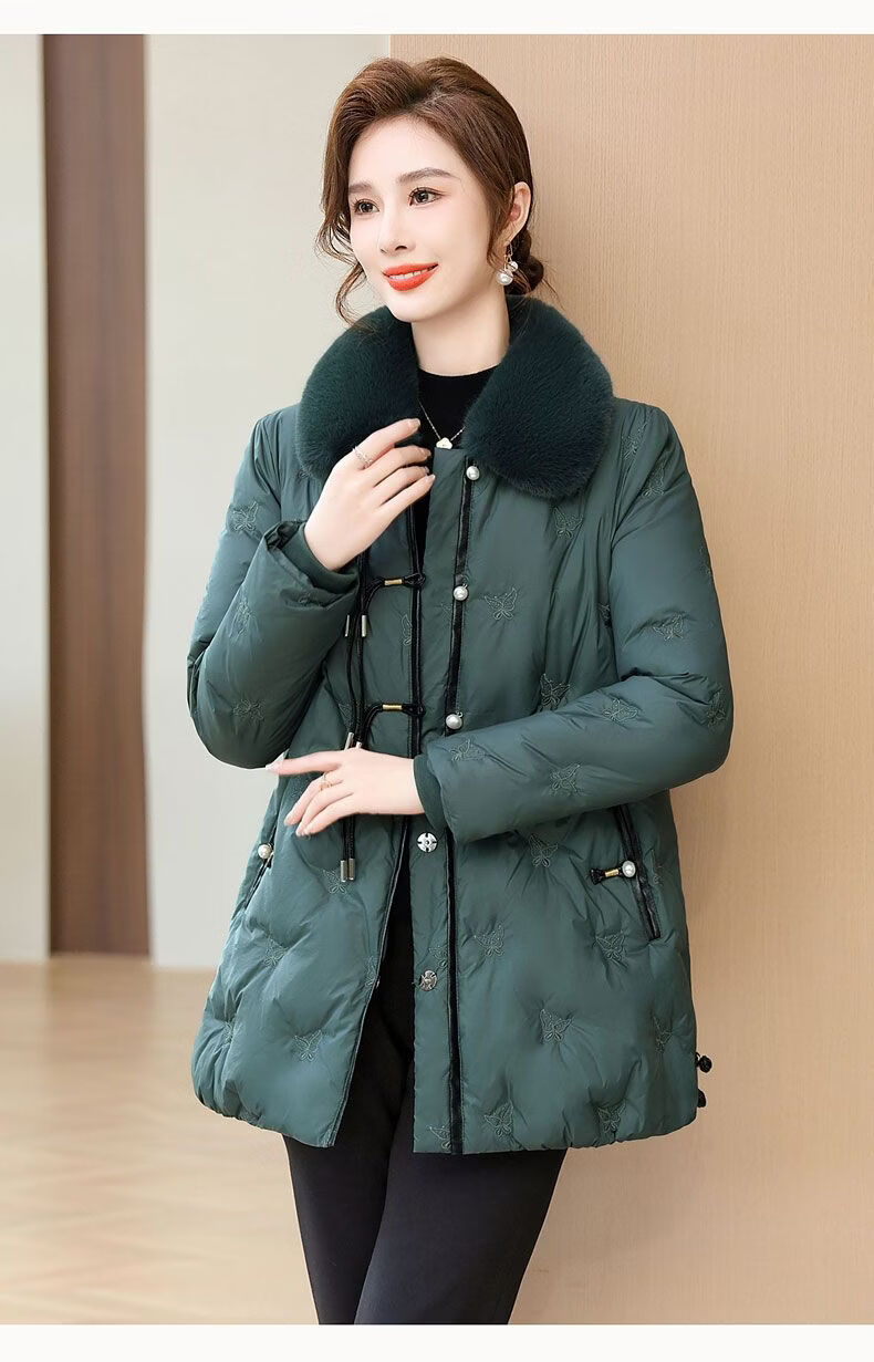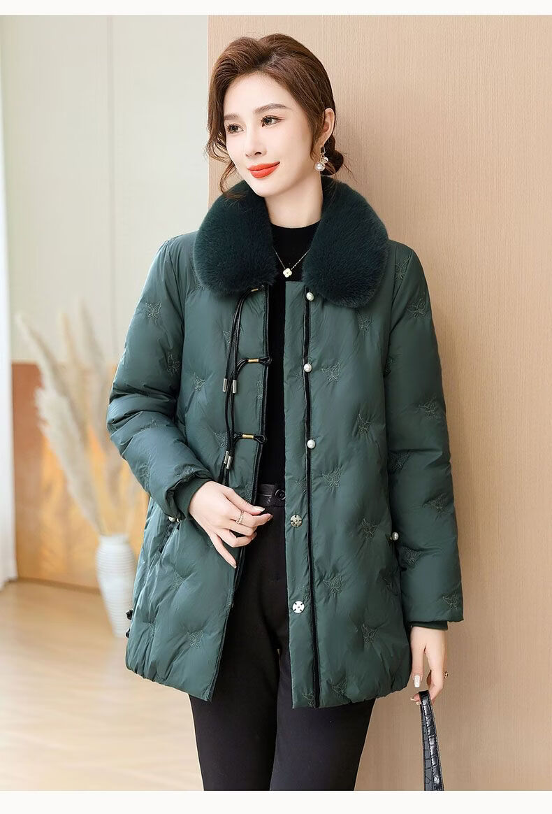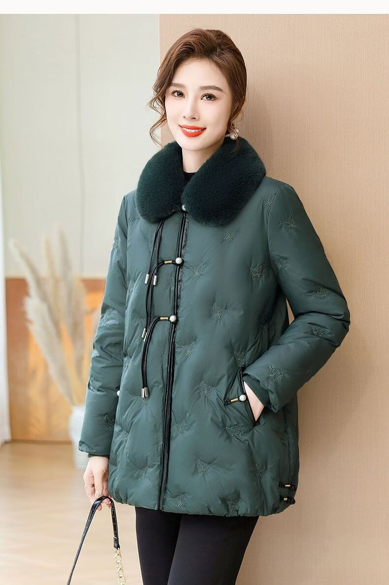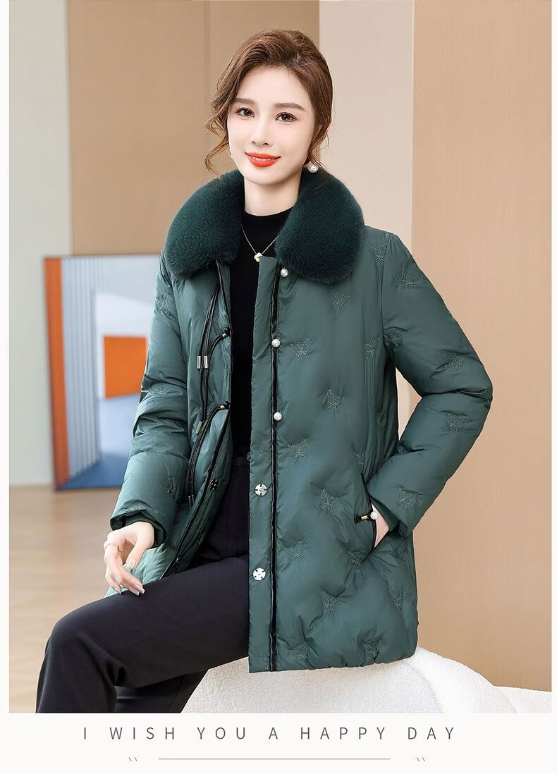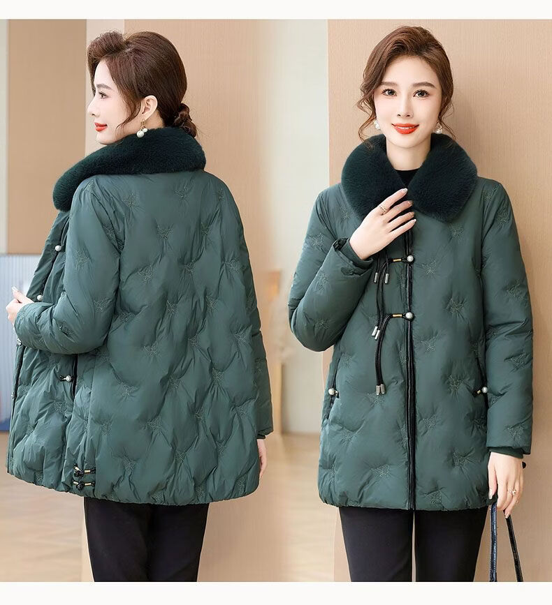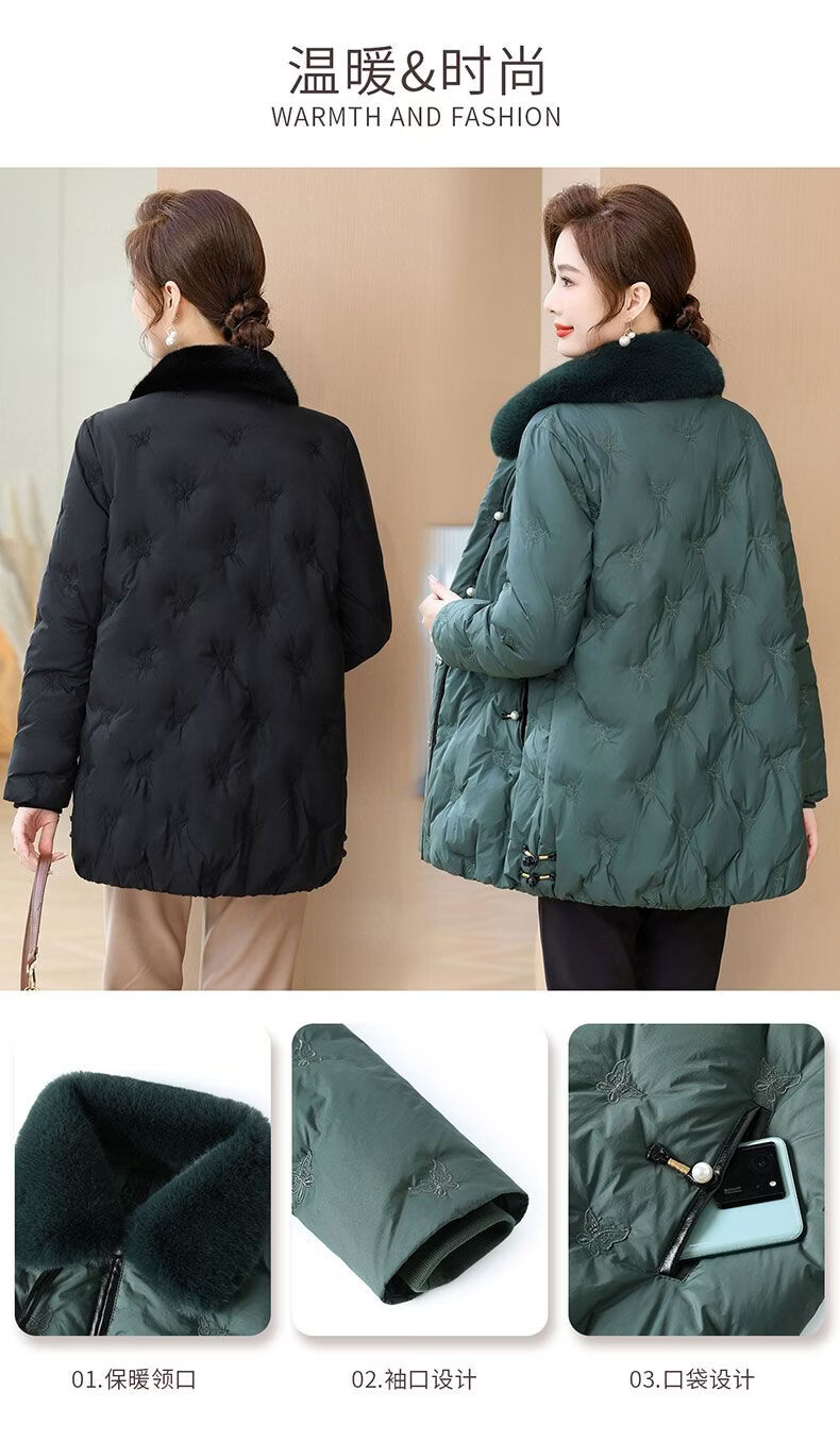 ROMON middle-aged mother's new winter down jacket, middle-aged and elderly women's winter clothing, western style jacket, thickened big fur collar, fashionable khaki XL recommended 85-110Jin Jin equals about 0.5 kg