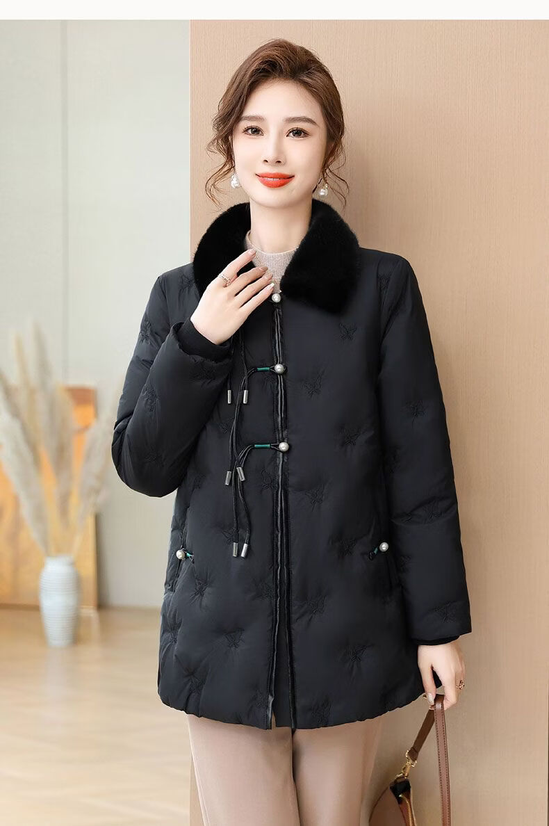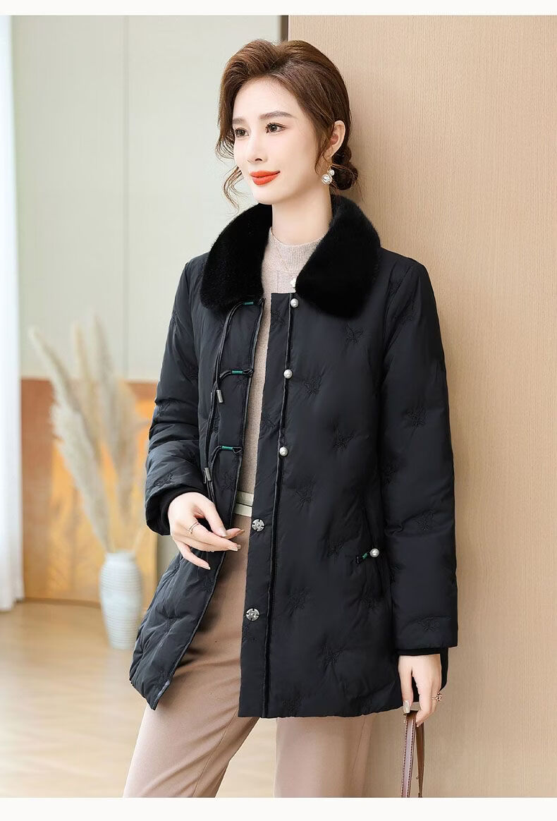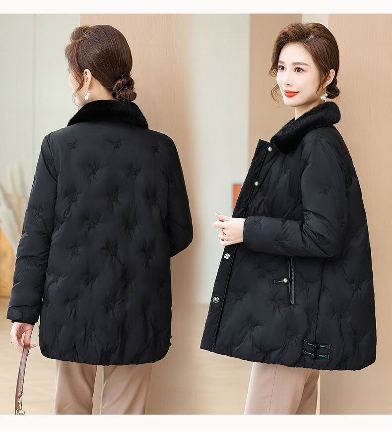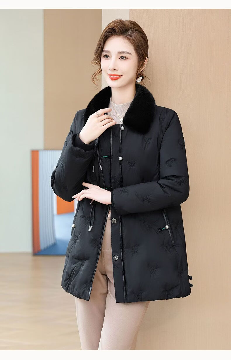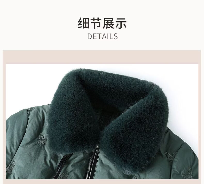 ROMON middle-aged mother's new winter down jacket, middle-aged and elderly women's winter clothing, western style jacket, thickened big fur collar, fashionable khaki XL recommended 85-110Jin Jin equals about 0.5 kg