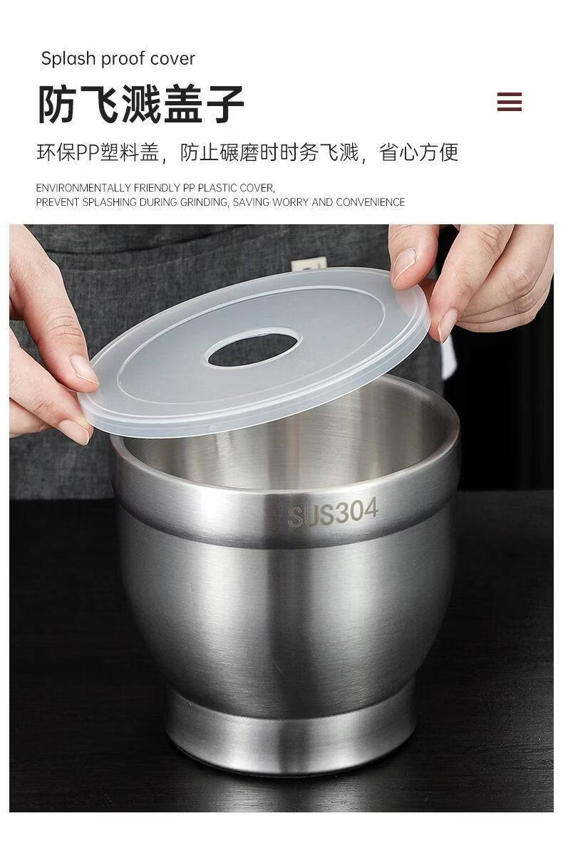 SWSR medical grade 316 stainless steel solid garlic masher household grinder manual garlic masher garlic mortar chili extra thick 316 grade healthier drum type extra large + cover + masher