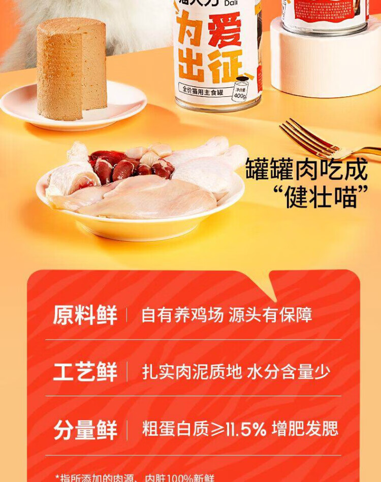 Cat Dali Cat Food Cat Staple Food Love Staple Food Can Stray Cat Can Full Price Cat Staple Food Can Cat Wet Food Add 1 Yuan to Get Love Plastic Spoon Love Staple Food Can 400g*6 Cans 1kg