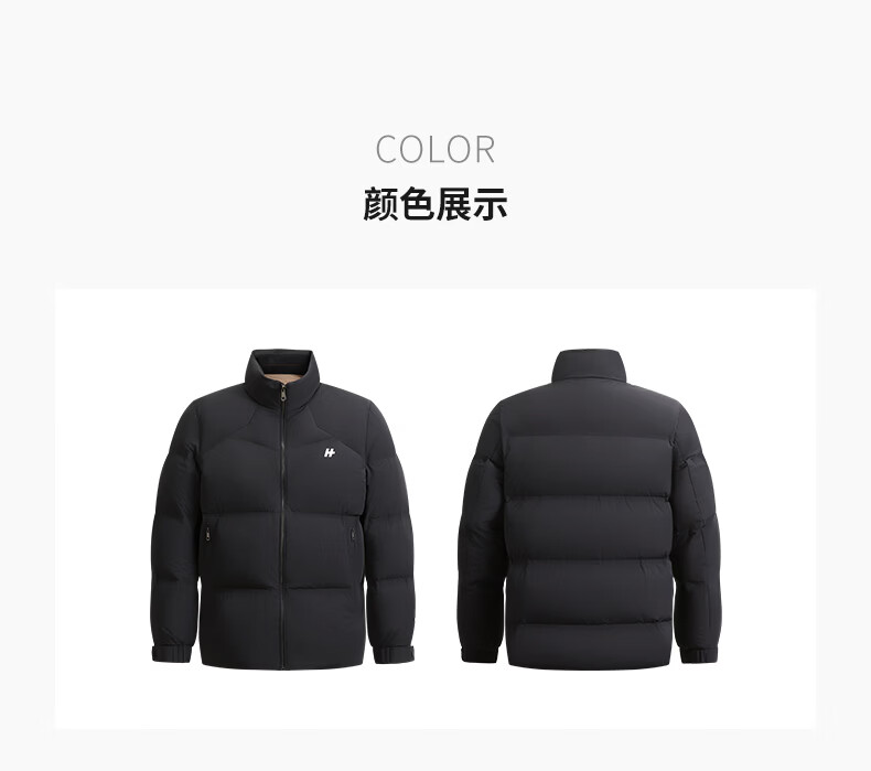 HECHTER stand collar short down jacket men's business casual white duck down jacket high-end black M