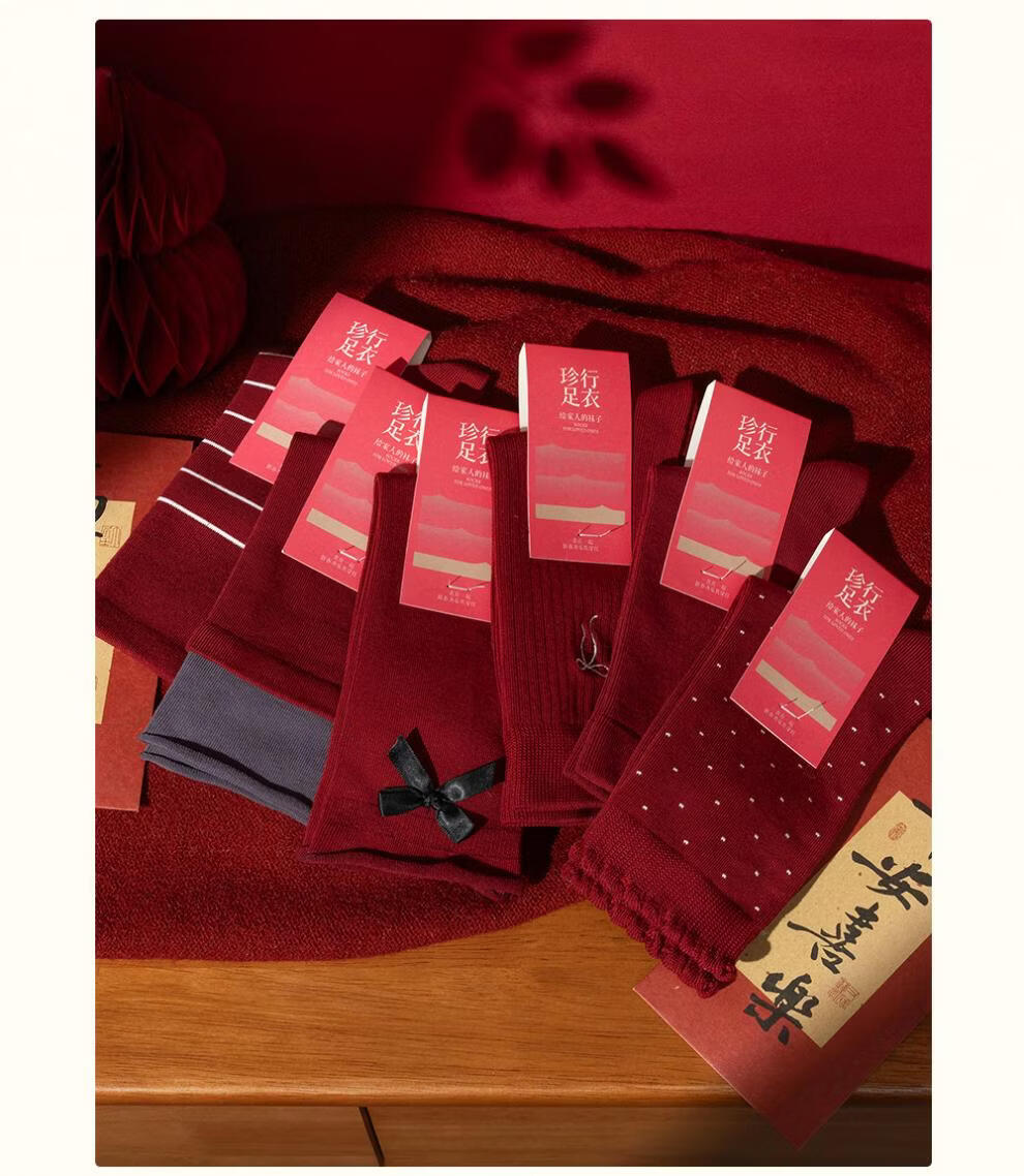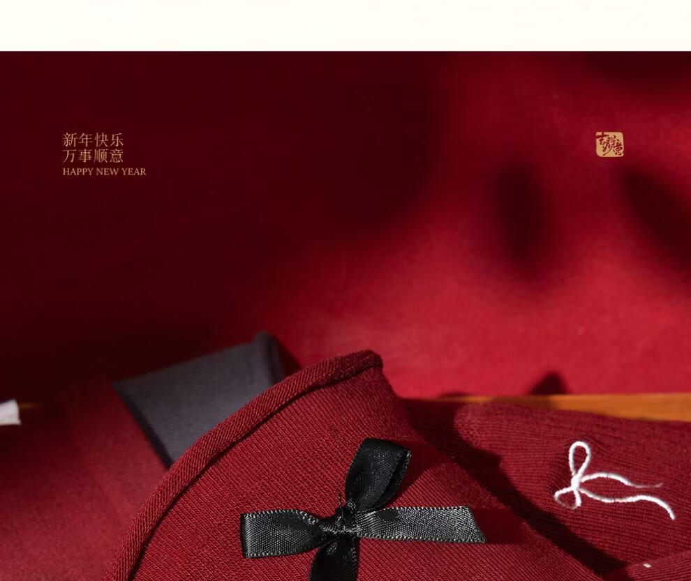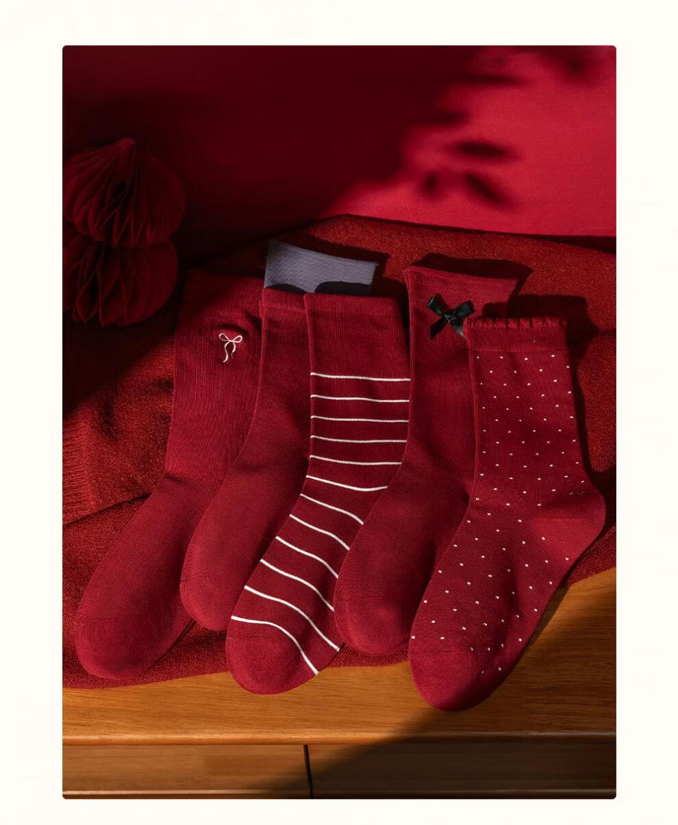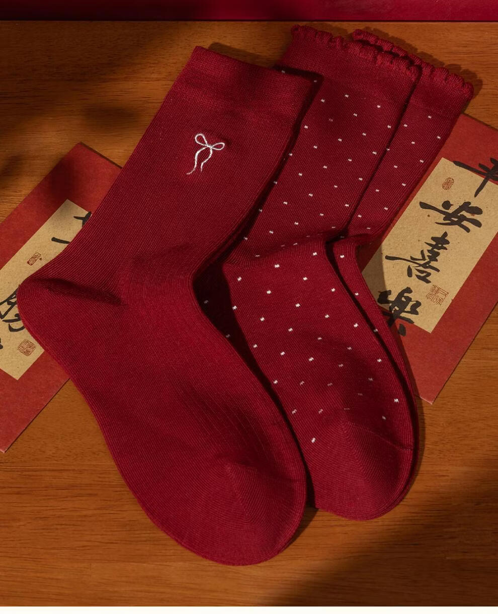 Zhenxing Footwear (ZJZUE) Zodiac Year Red Socks Women's Cotton Autumn and Winter 2026 Year of the Horse New Year's Gift Couple Wedding Lace Medium Socks Gift Box 100% Cotton Design Red Socks Gift Box Pendant + Double Ruffles + Black Bow One Size (35-40 Codes) High-Level Red Ritual Sense