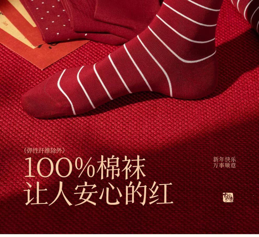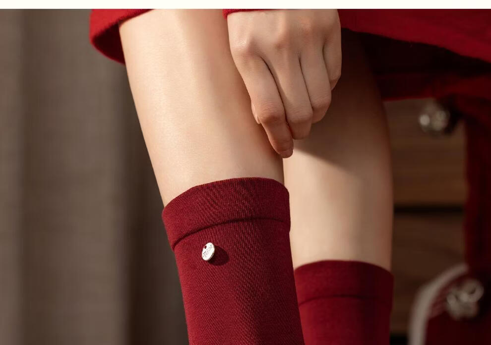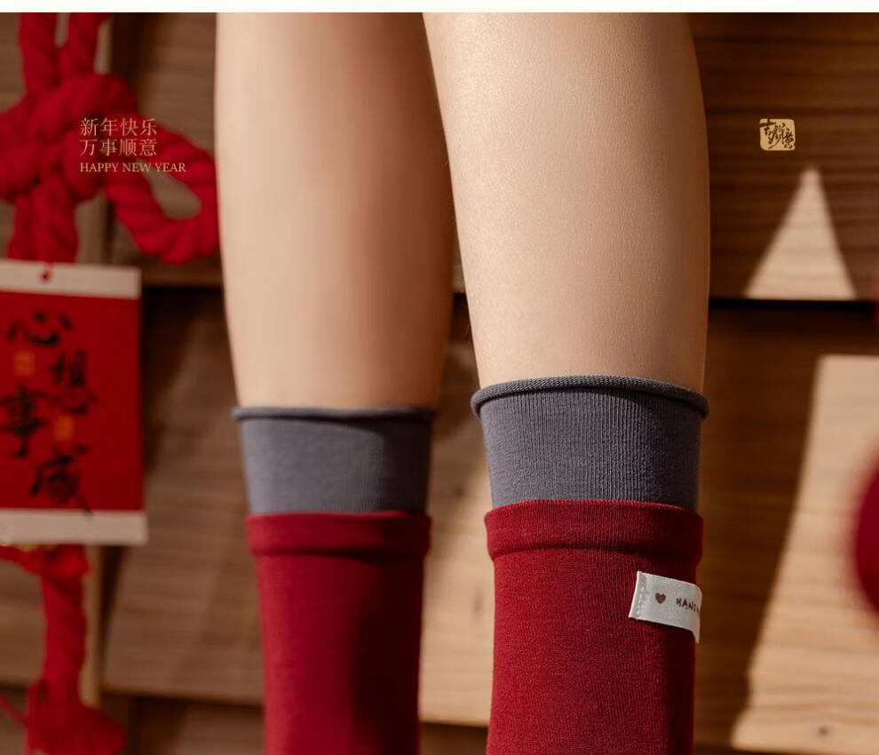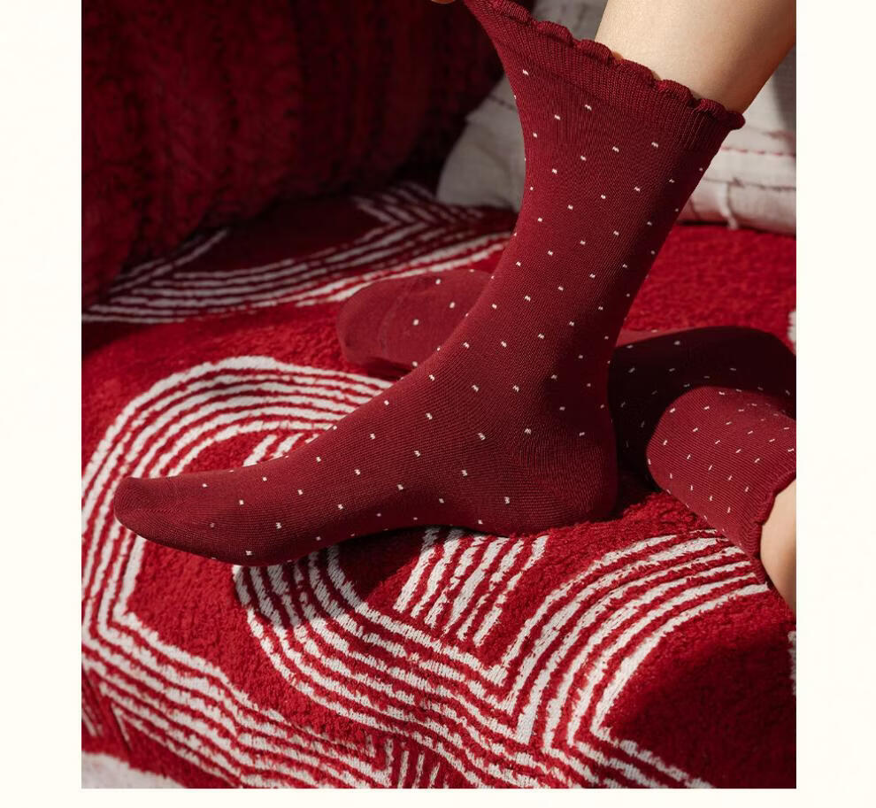 Zhenxing Footwear (ZJZUE) Zodiac Year Red Socks Women's Cotton Autumn and Winter 2026 Year of the Horse New Year's Gift Couple Wedding Lace Medium Socks Gift Box 100% Cotton Design Red Socks Gift Box Pendant + Double Ruffles + Black Bow One Size (35-40 Codes) High-Level Red Ritual Sense