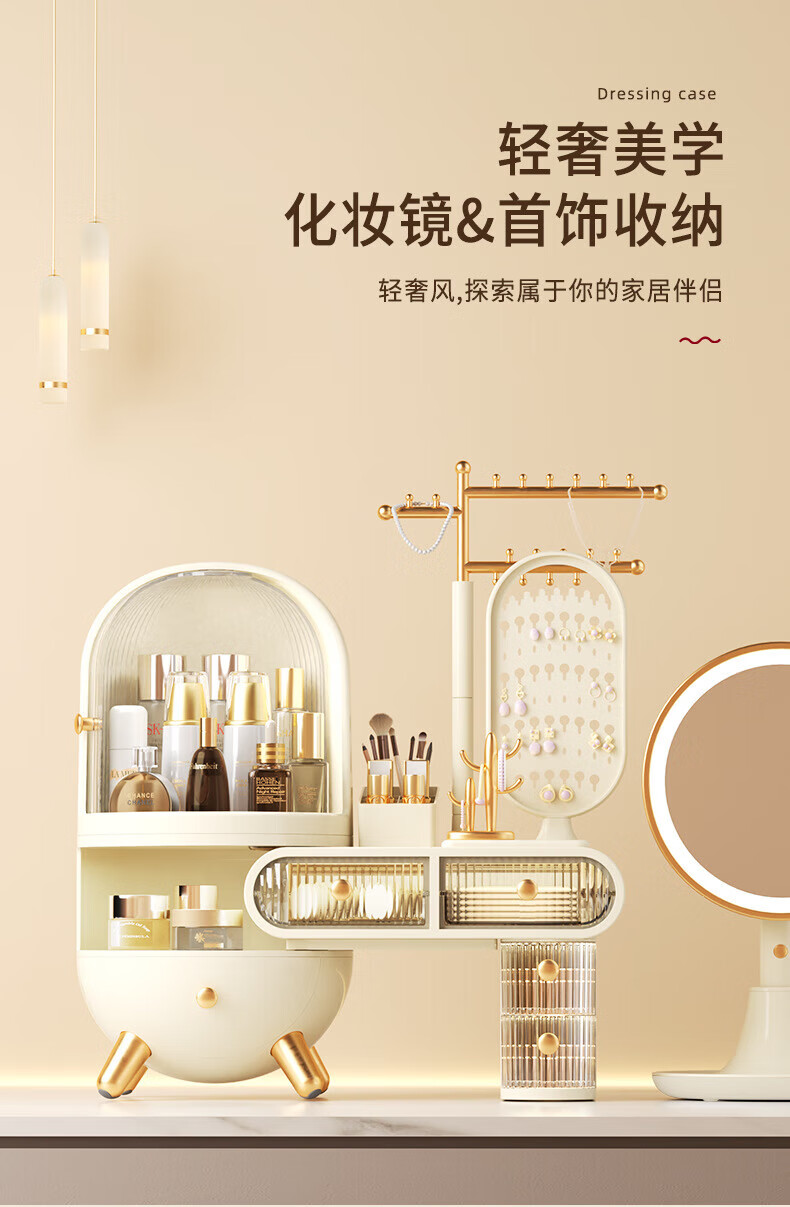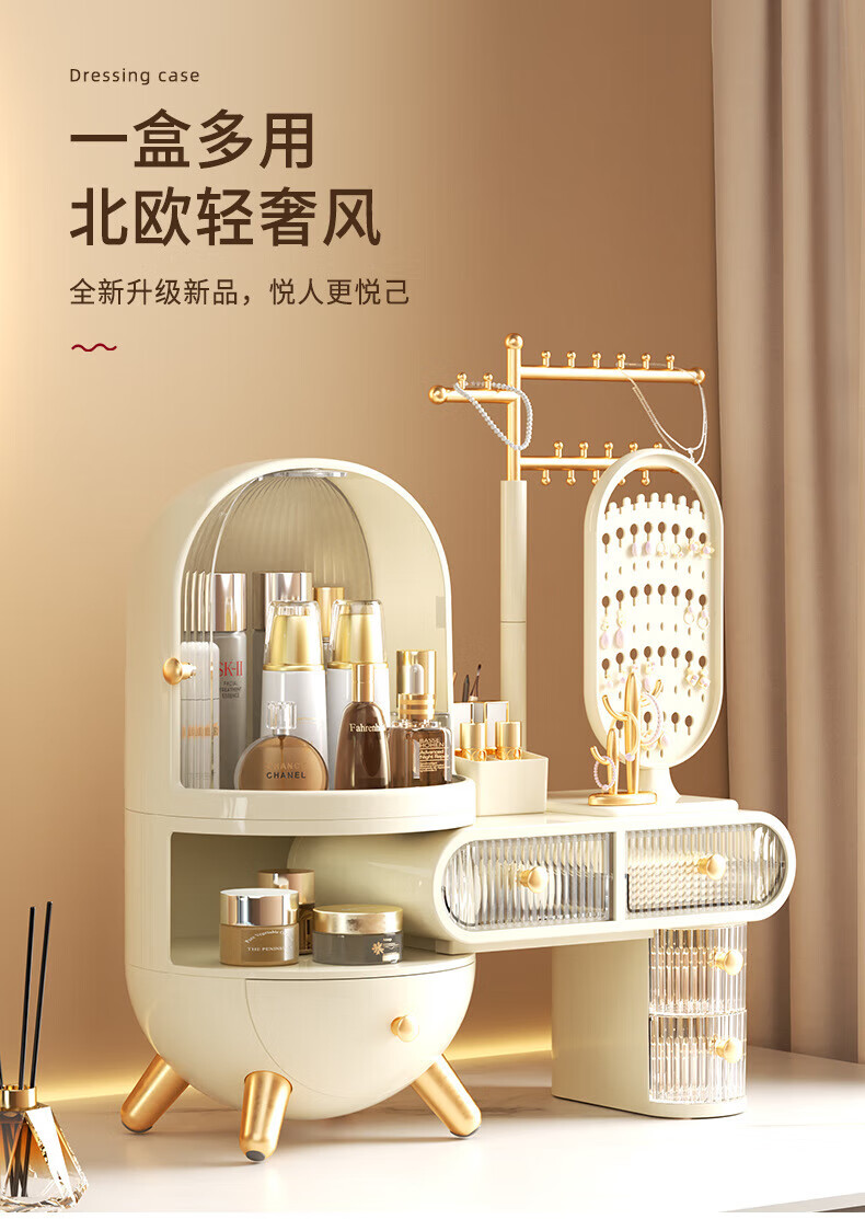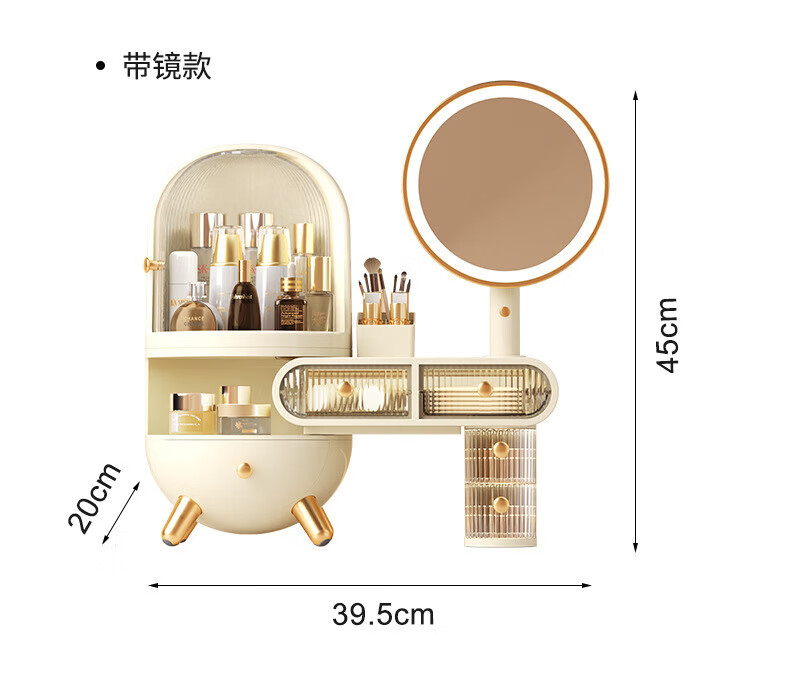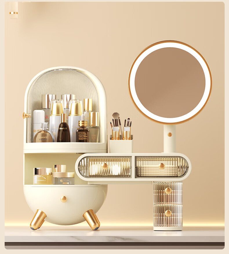 Dressing table cosmetics storage box desktop jewelry all-in-one dustproof sense with mirror dormitory supplies dormitory supplies