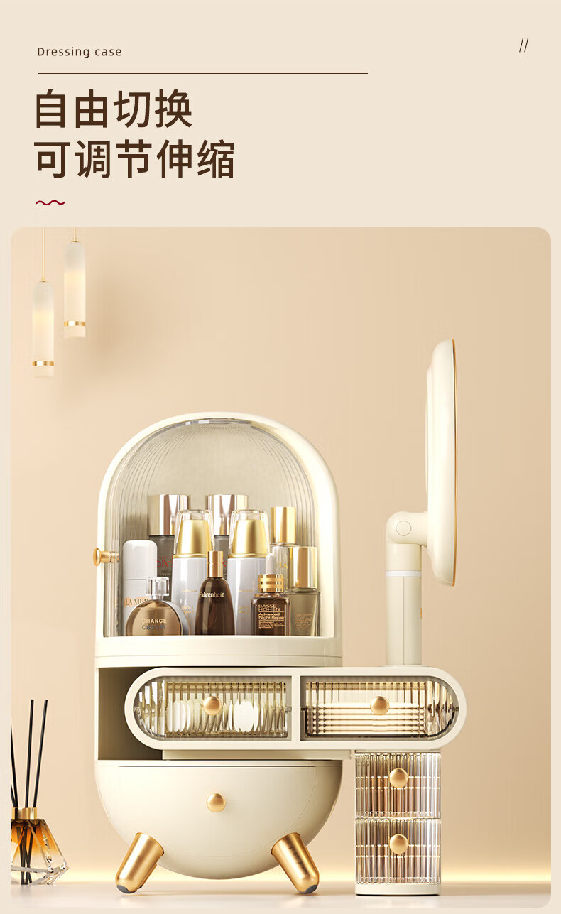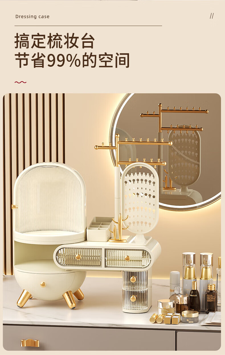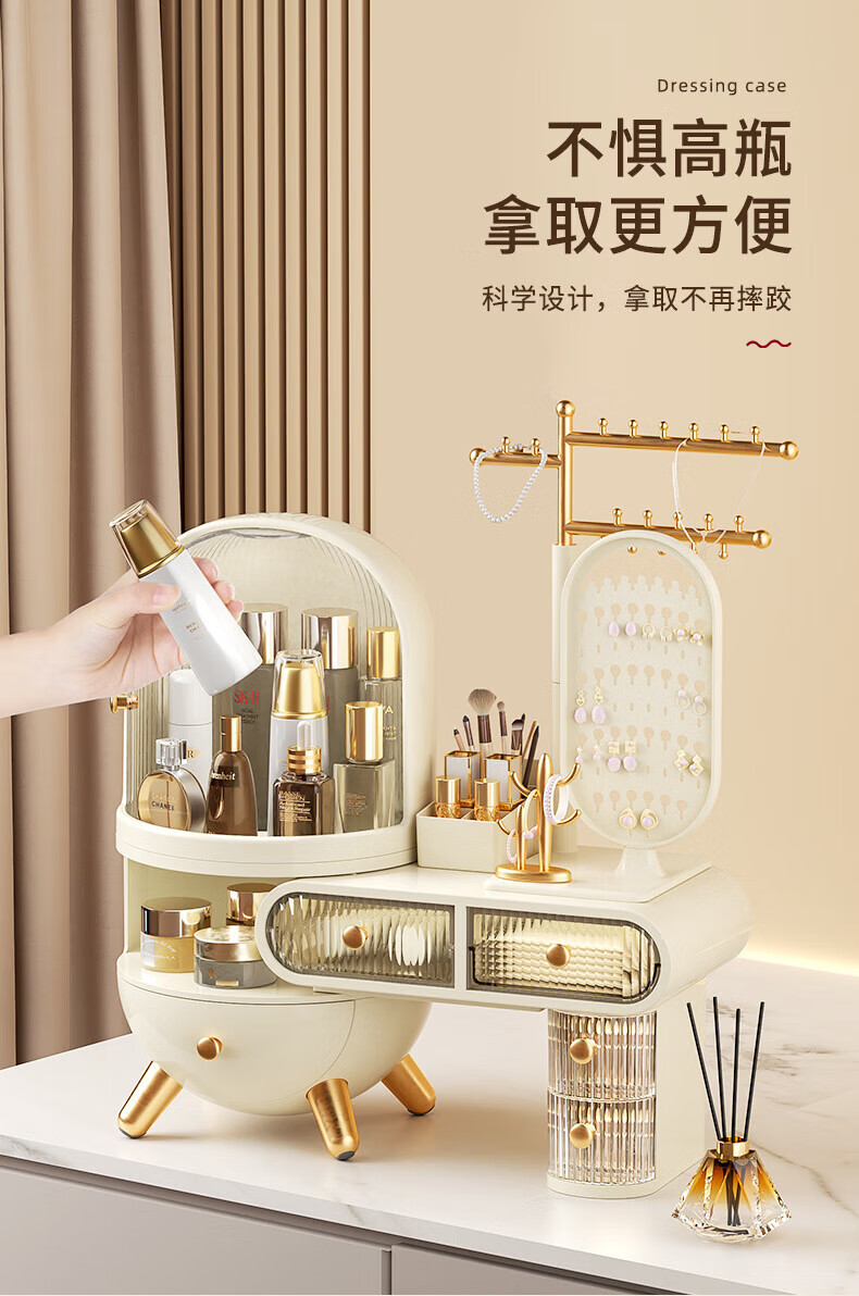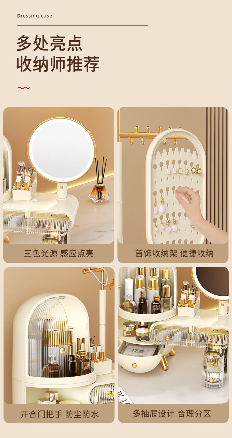 Dressing table cosmetics storage box desktop jewelry all-in-one dustproof sense with mirror dormitory supplies dormitory supplies