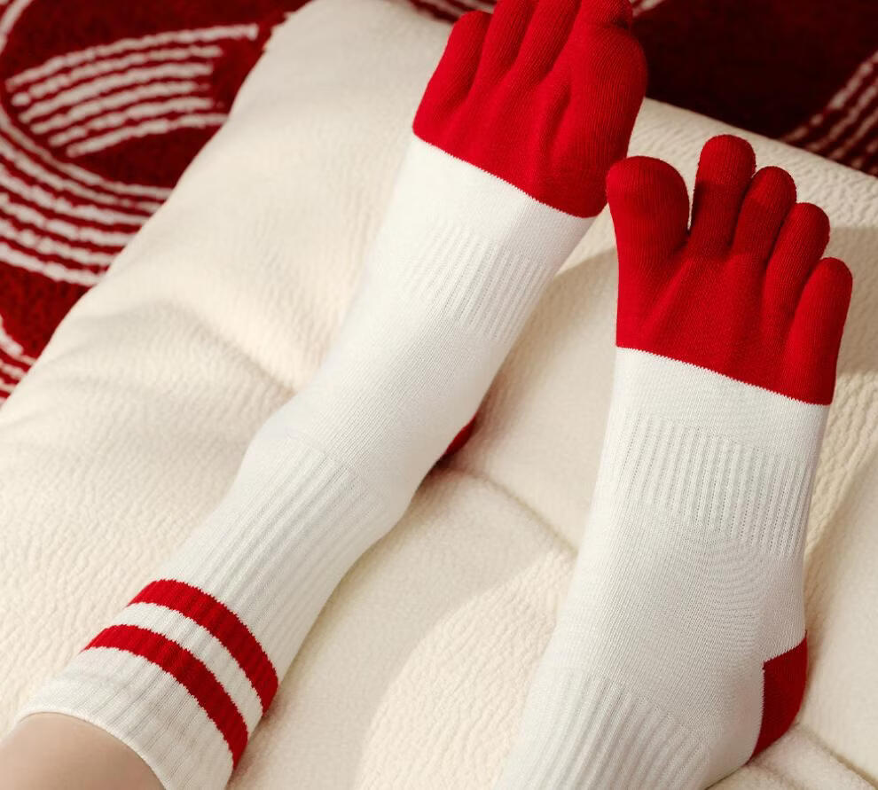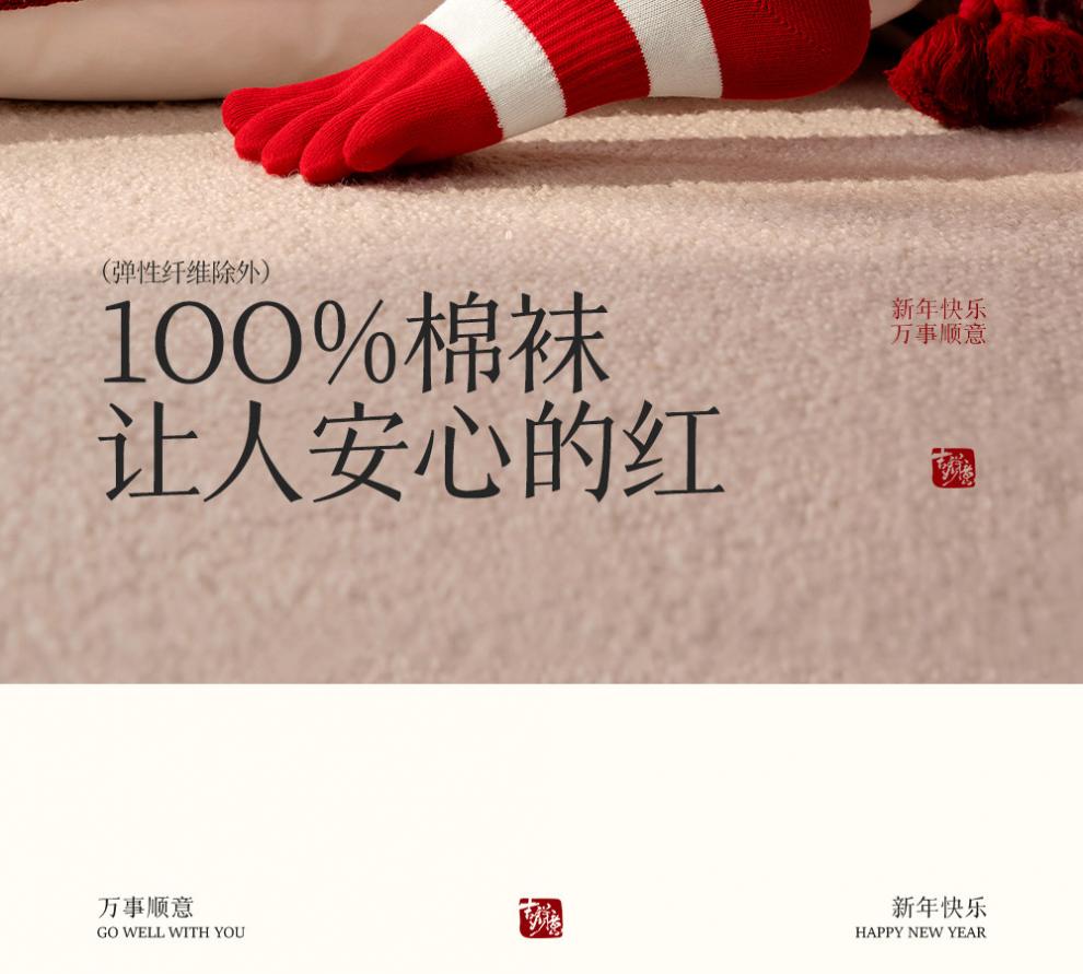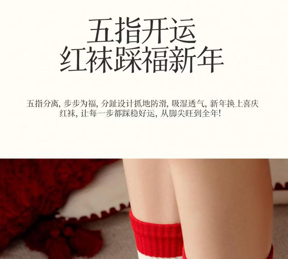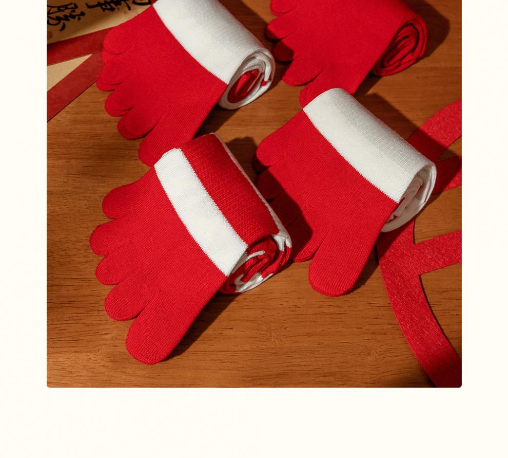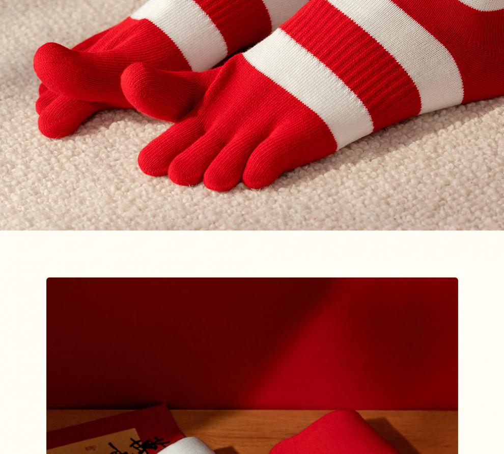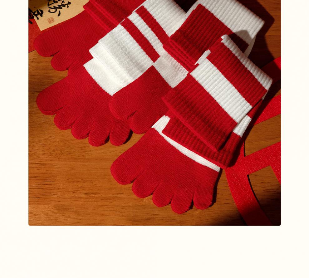 Zhenxing footwear (ZJZUE) five-finger socks for women, cotton, animal year, cotton, women's autumn and winter, bright red, new year socks, finger length simple socks, striped parallel bars + different colors on the head and heels + full body stripes, SF gift box, one size fits all, 100 cotton animal year hair gift box