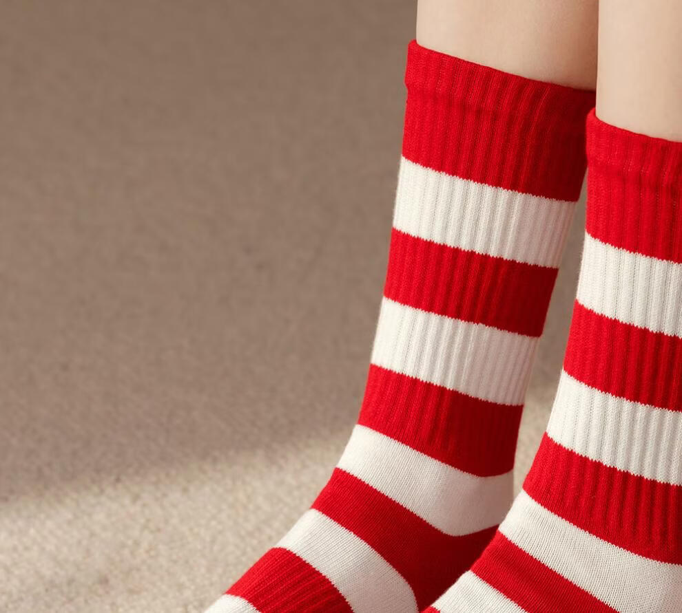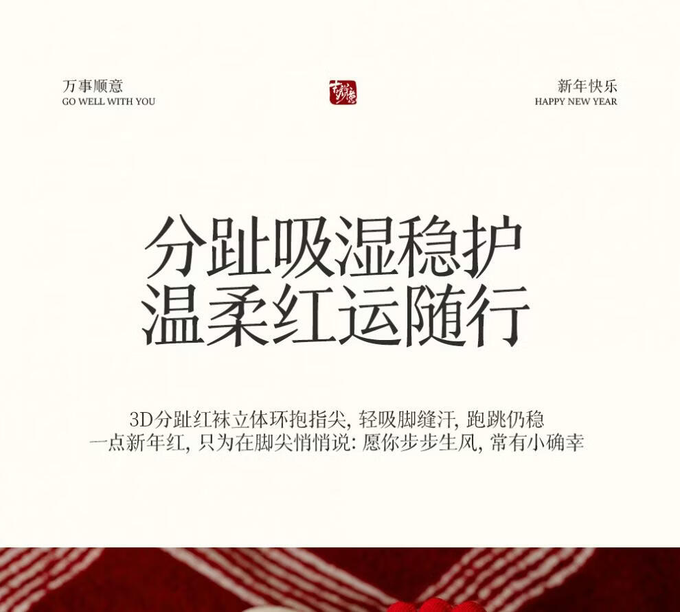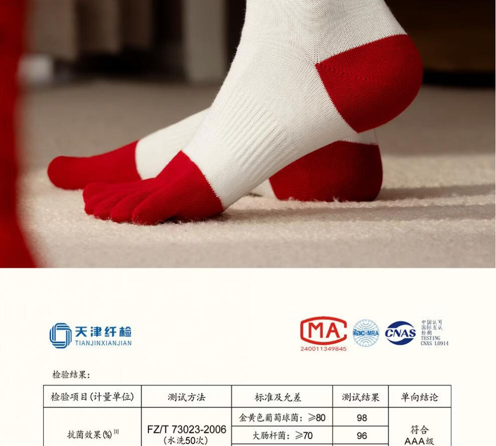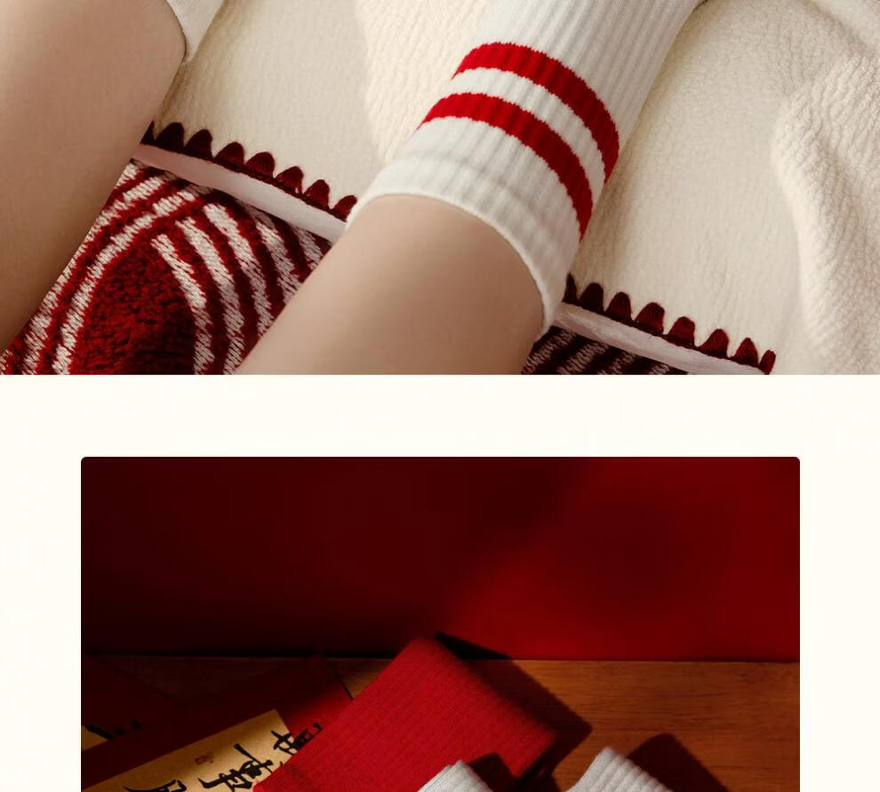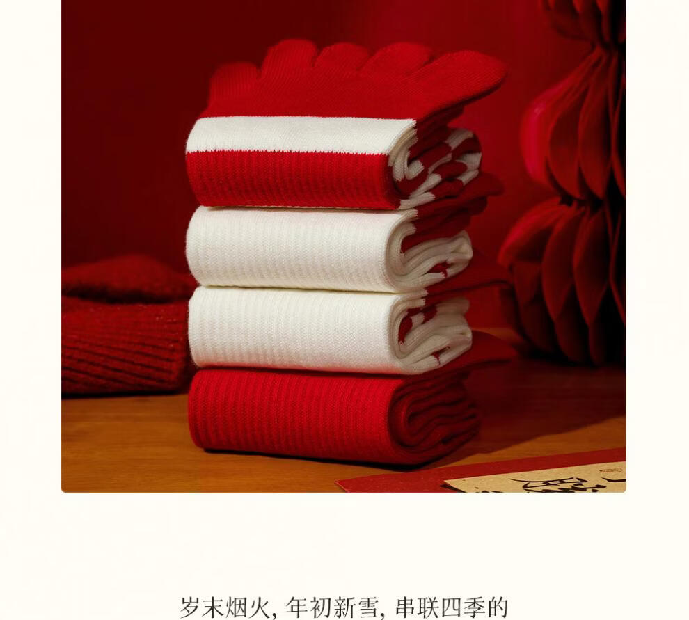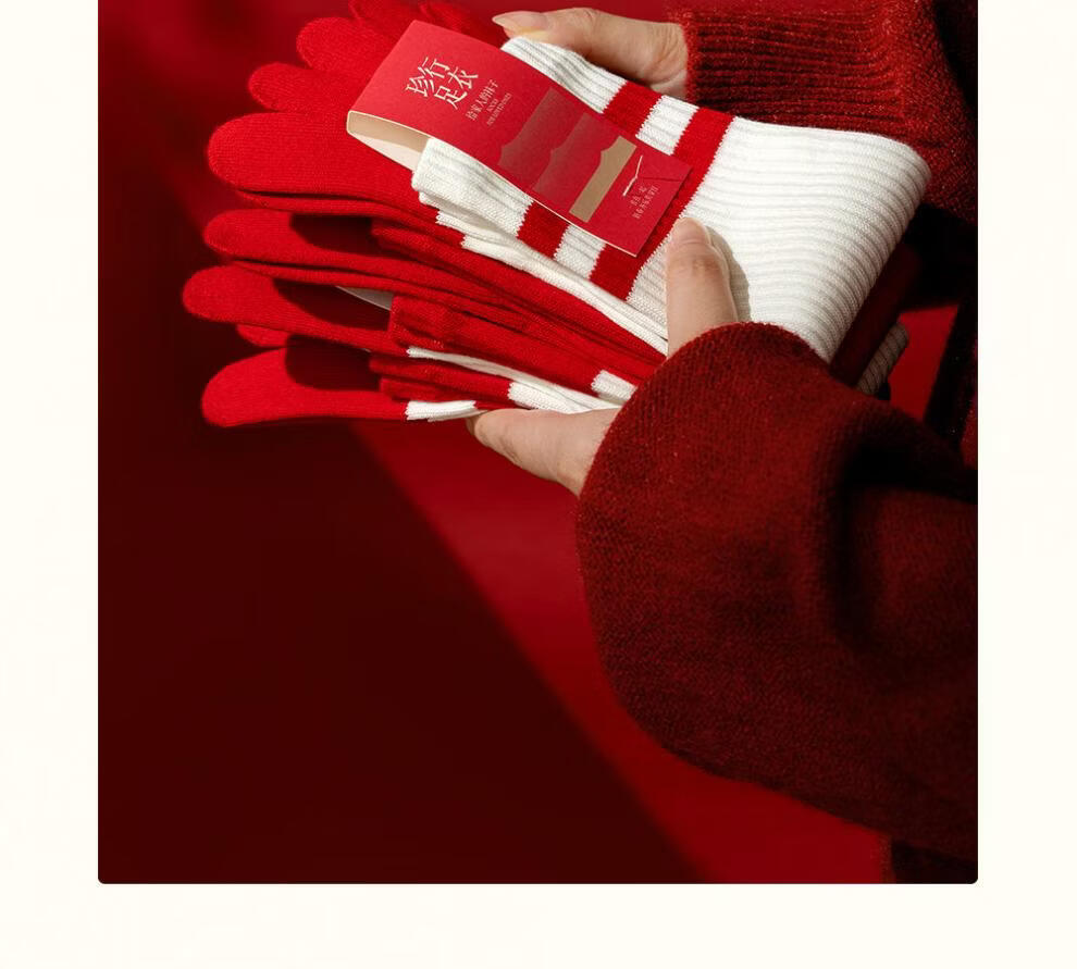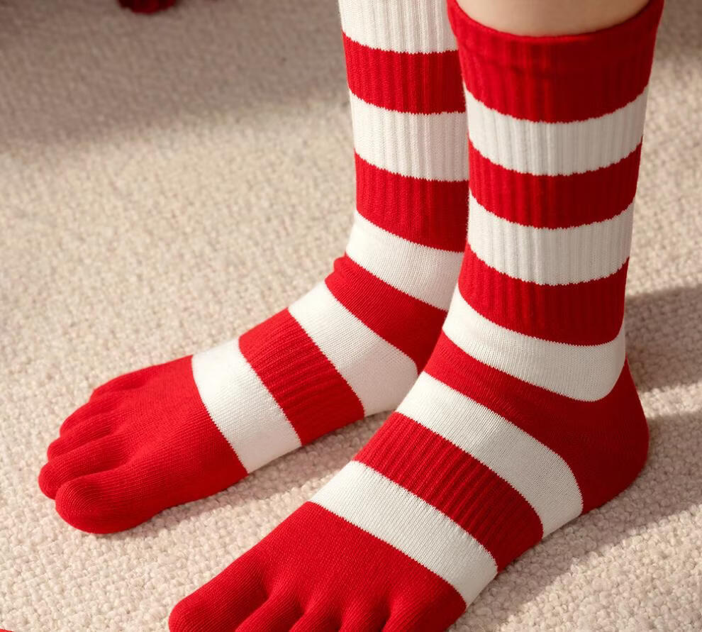 Zhenxing footwear (ZJZUE) five-finger socks for women, cotton, animal year, cotton, women's autumn and winter, bright red, new year socks, finger length simple socks, striped parallel bars + different colors on the head and heels + full body stripes, SF gift box, one size fits all, 100 cotton animal year hair gift box