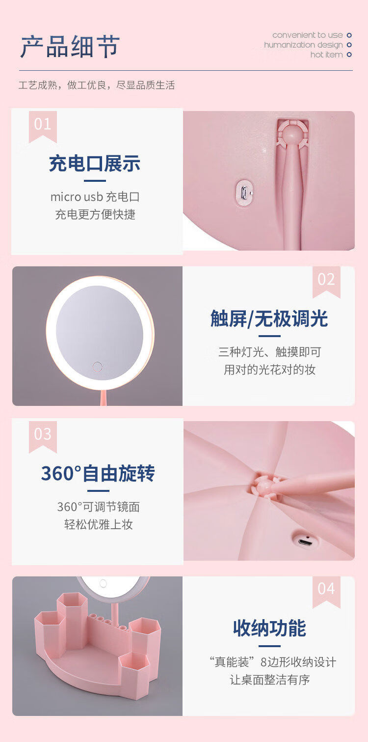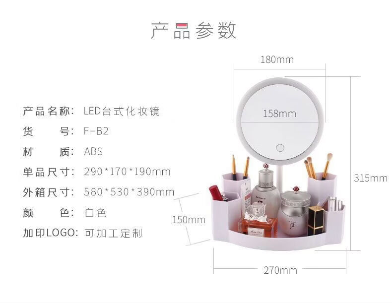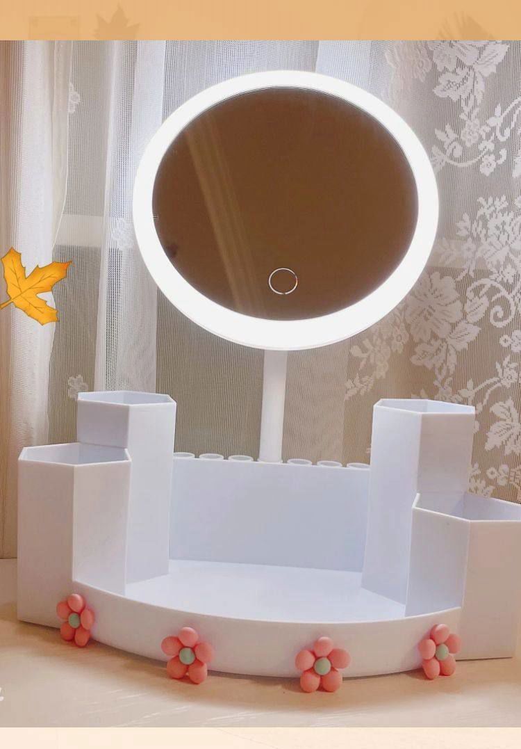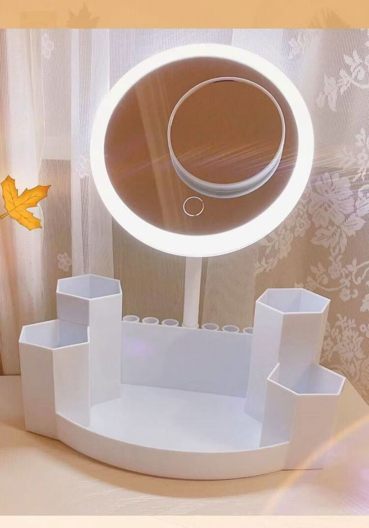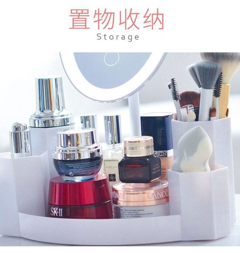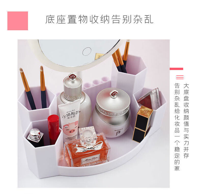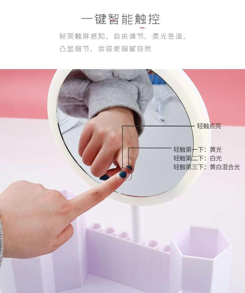 Yusen Yi mirror portable storage box integrated light mirror charging desktop desktop home dormitory dormitory mirror upgraded white three-color light charge plug-in free five times mirror