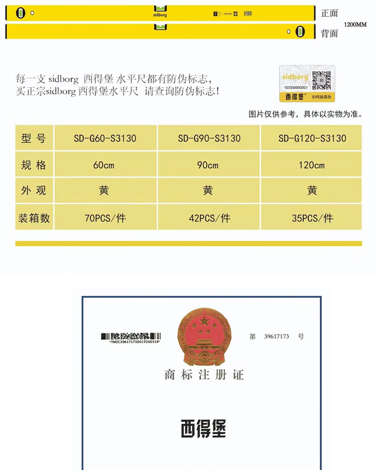 Level high-precision anti-fall aluminum alloy leveling level multi-function 2 meters with floor tiles sidborg-two blisters 120 cm SD-G120