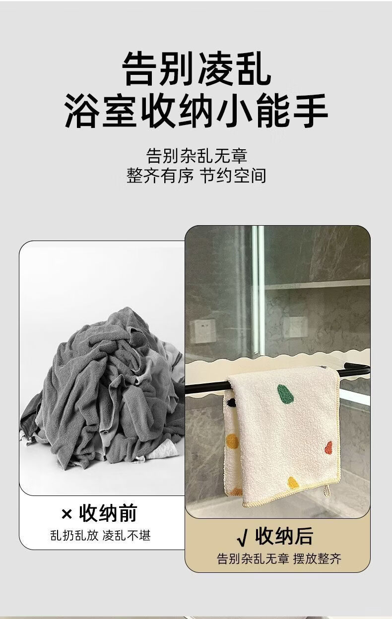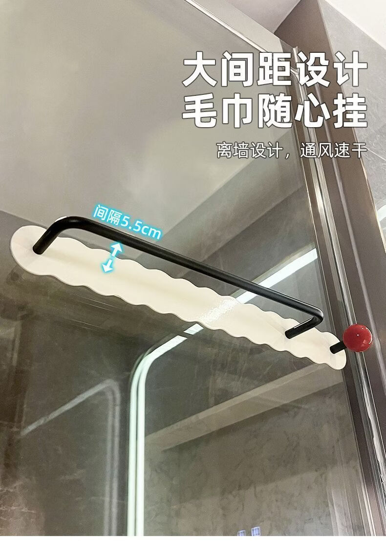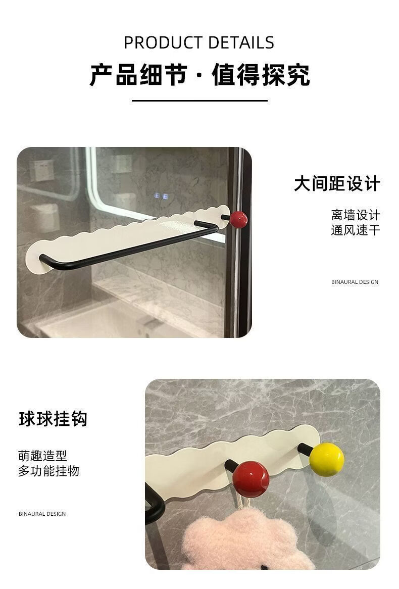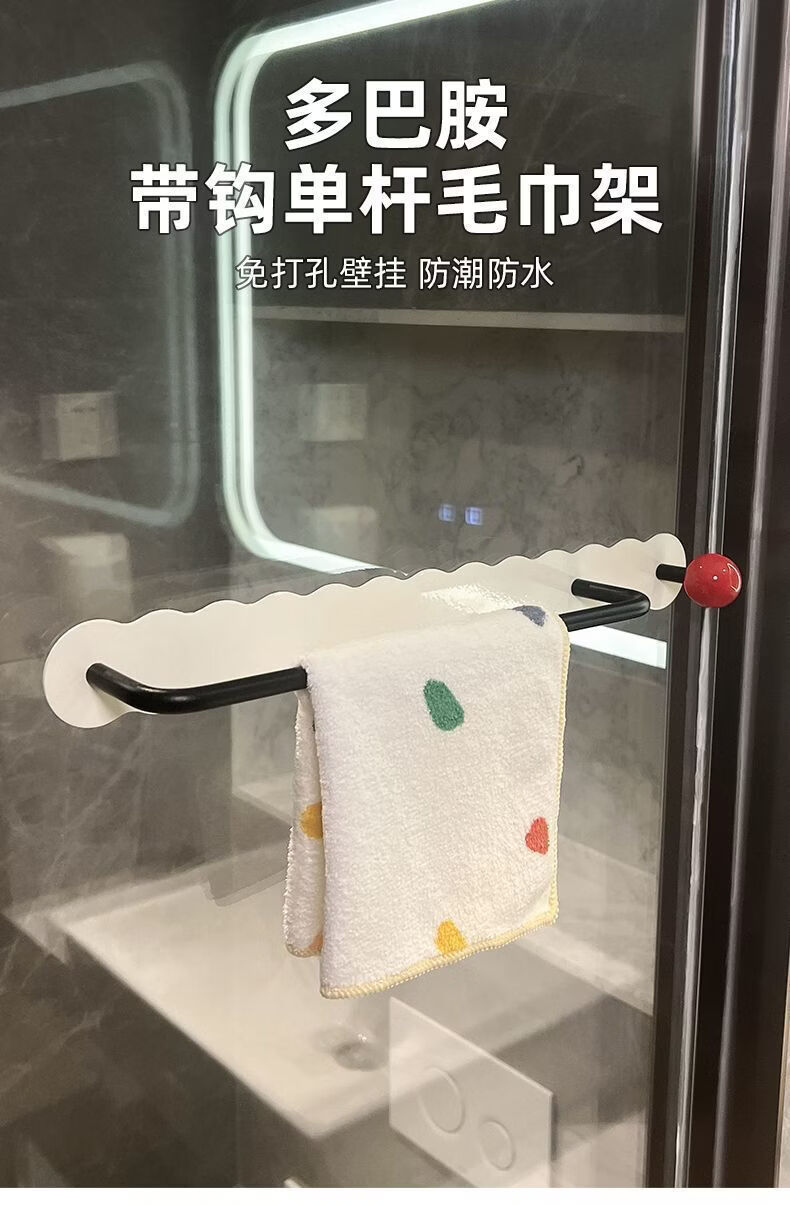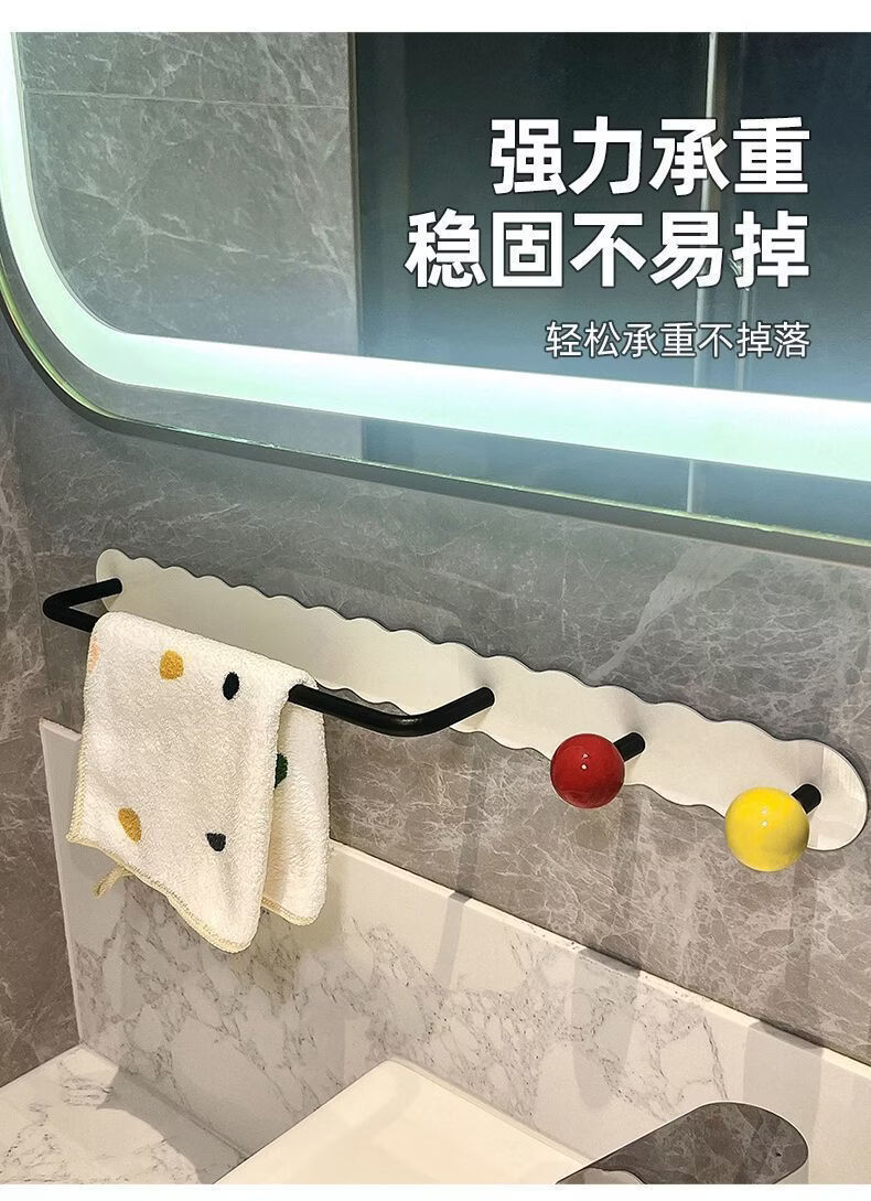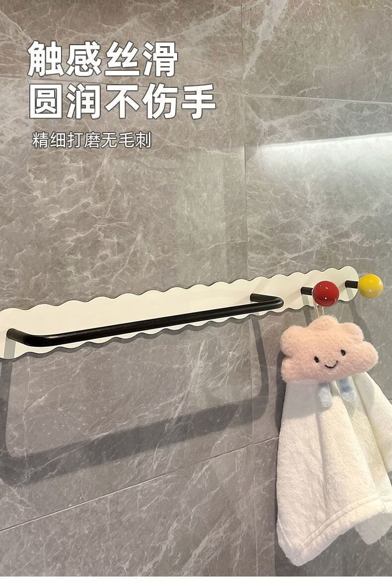 Fantasy bathroom towel rack without punching hook toilet bathroom towel hanging rod creative wall-mounted wall storage rack milk white dopamine towel rack 60cm three beads