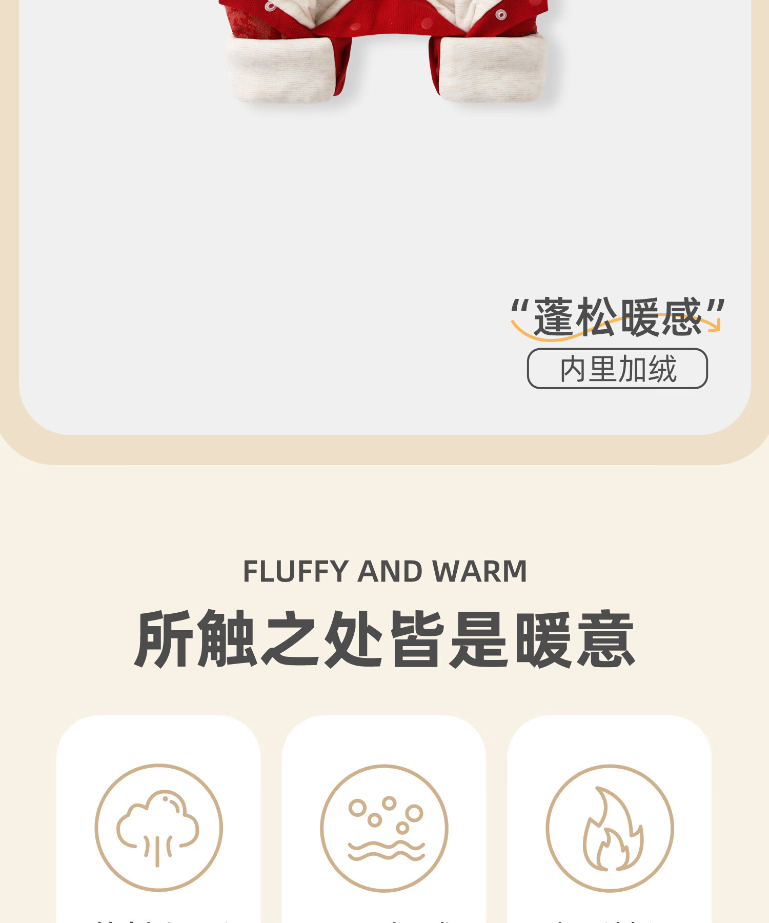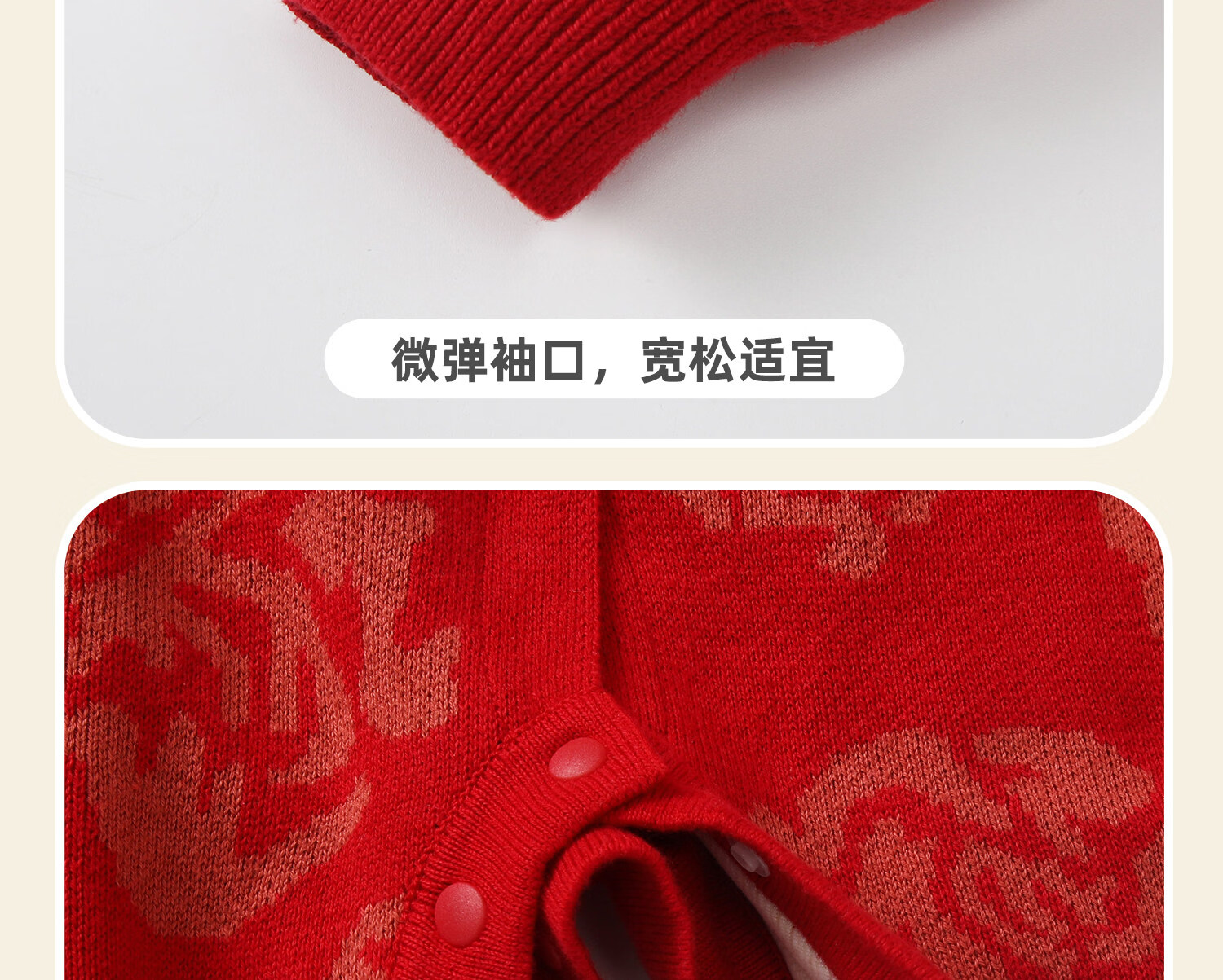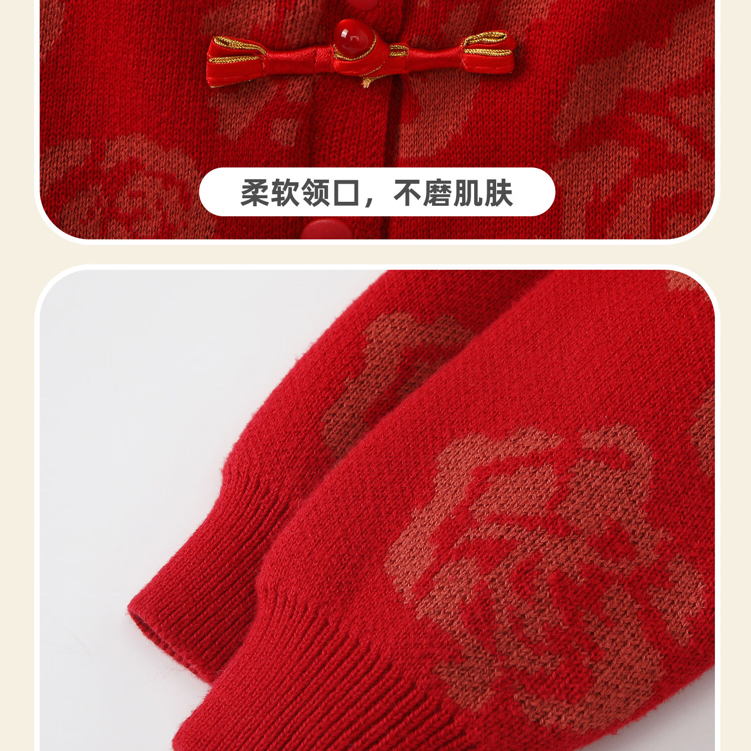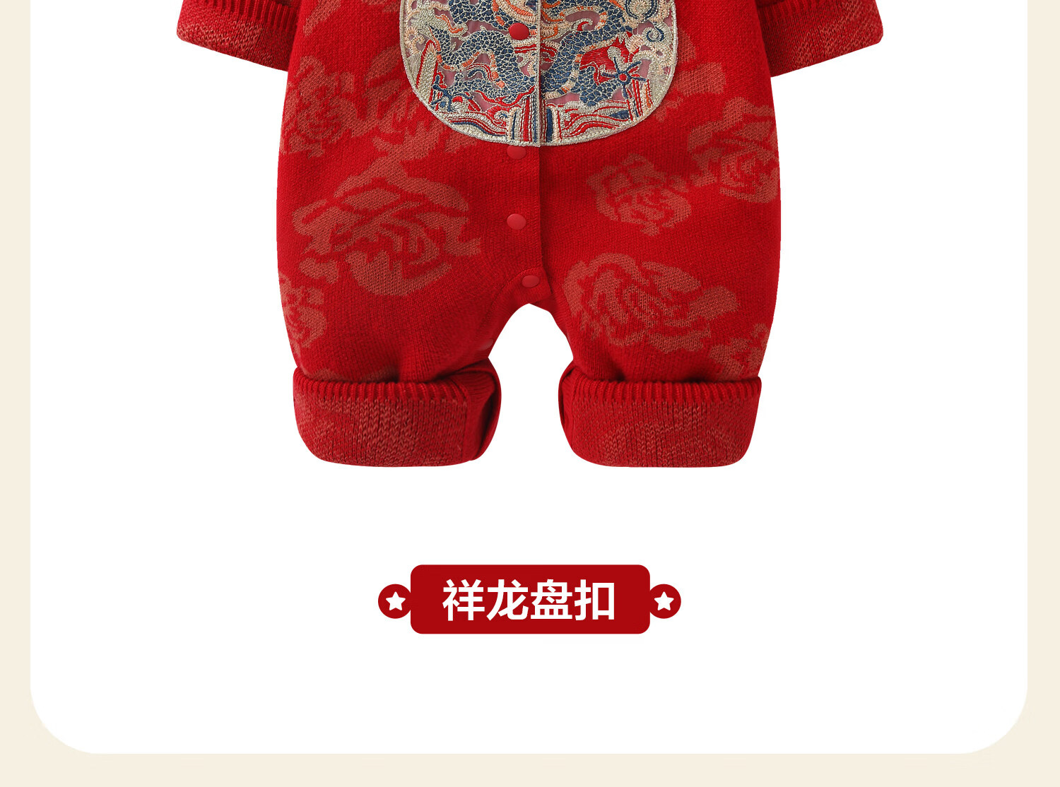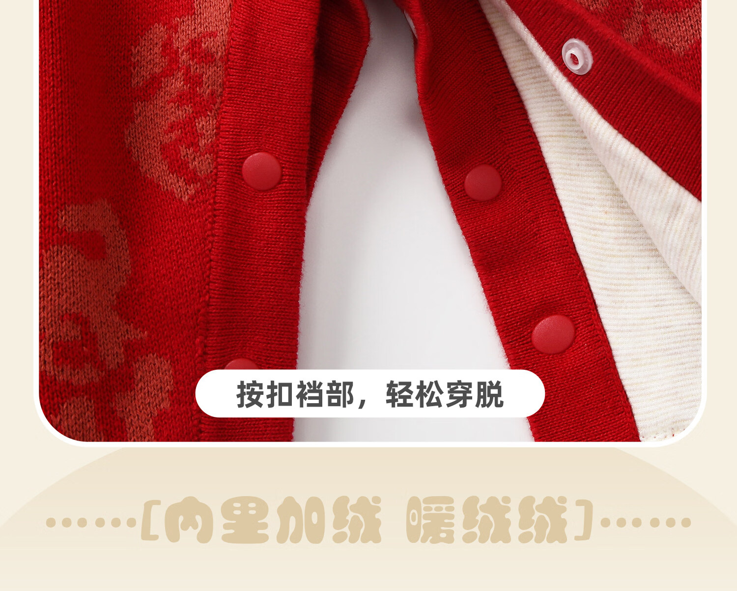 BORBOON B baby New Year's greeting clothes 2026 winter jumpsuit baby plus velvet red national style festive New Year small month old clothes for women plus velvet 7621 three-piece set 66cm