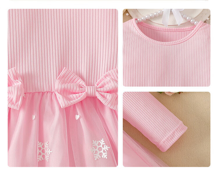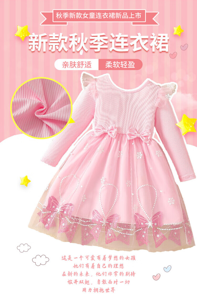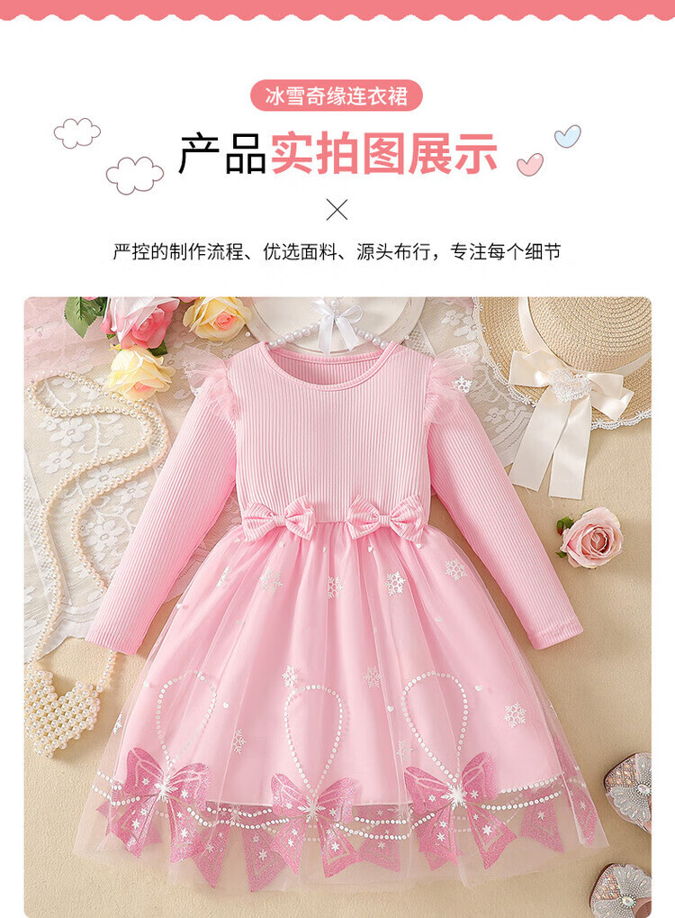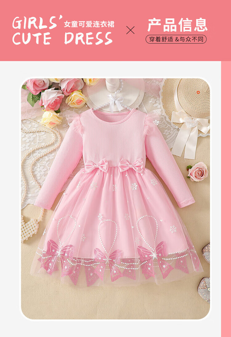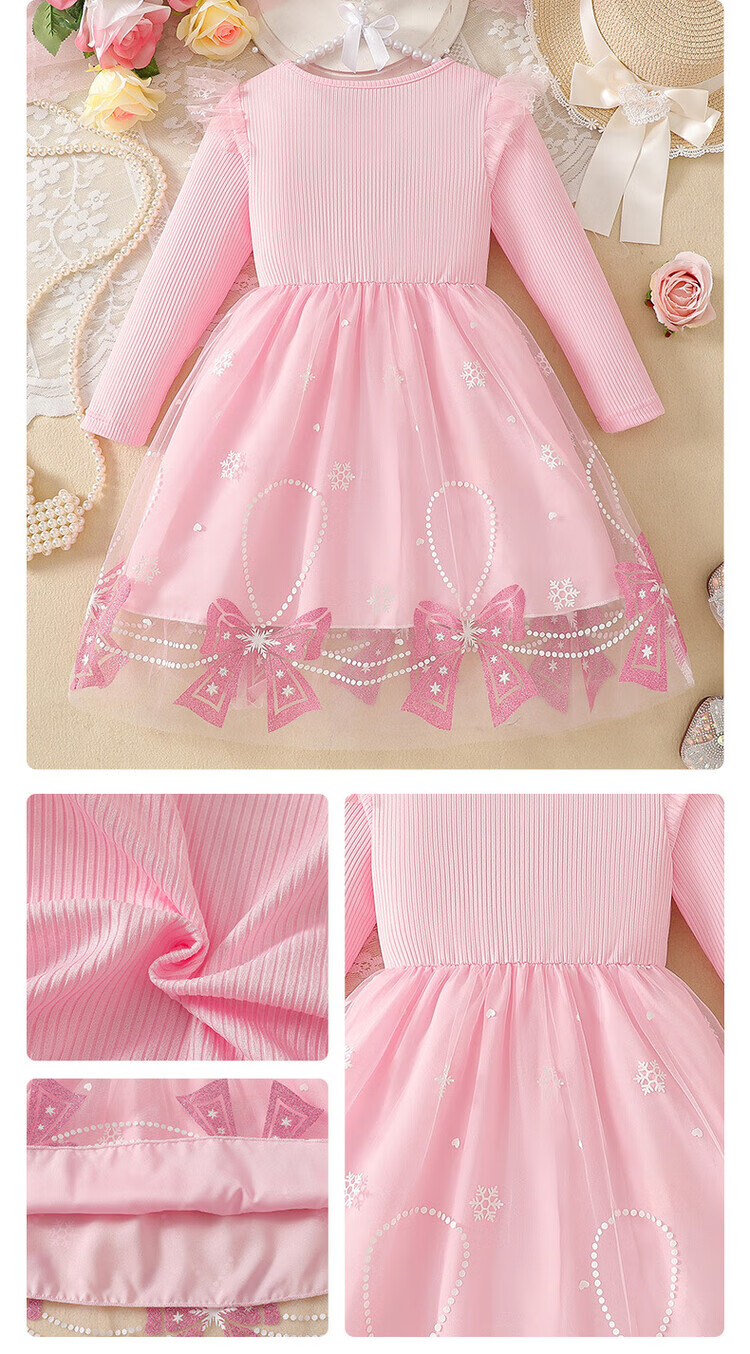Foreign trade girls spring and autumn dress autumn 2025 children's clothing girls skirt bow mesh princess dress pink 110 cm 4-5