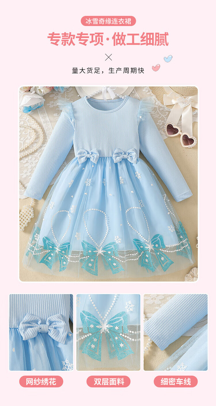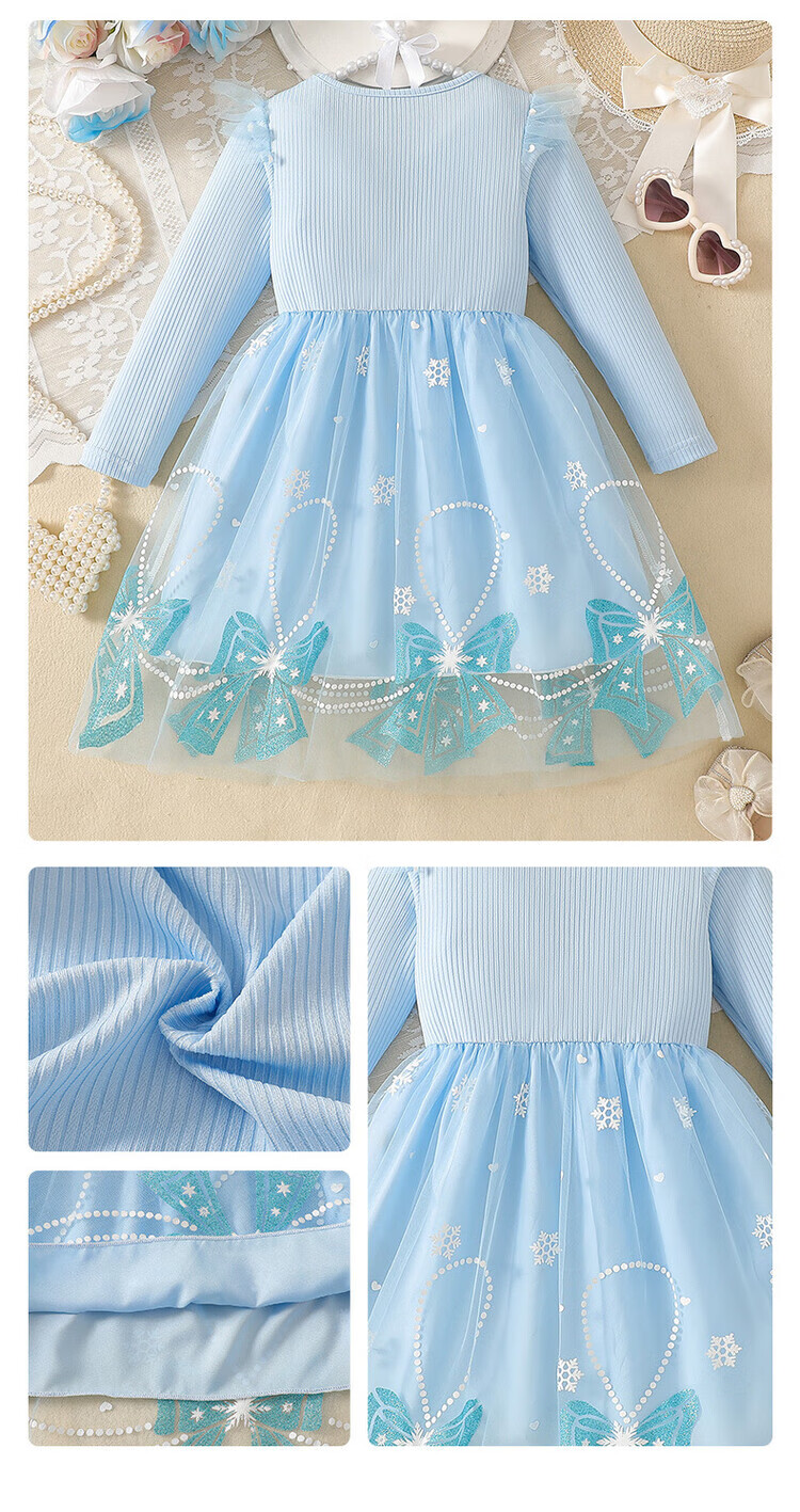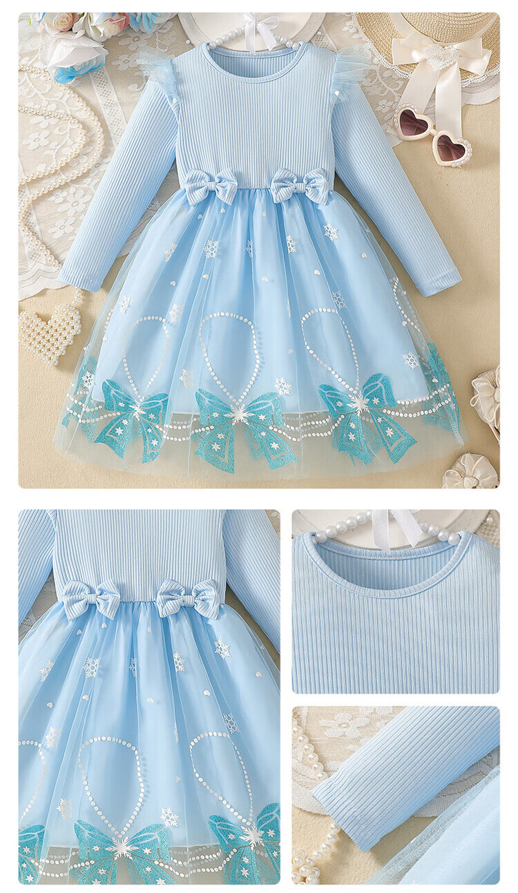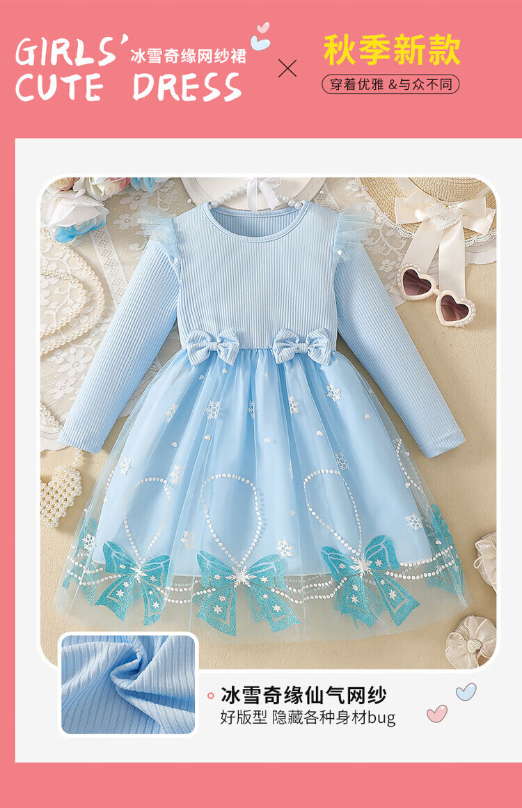Foreign trade girls spring and autumn dress autumn 2025 children's clothing girls skirt bow mesh princess dress pink 110 cm 4-5