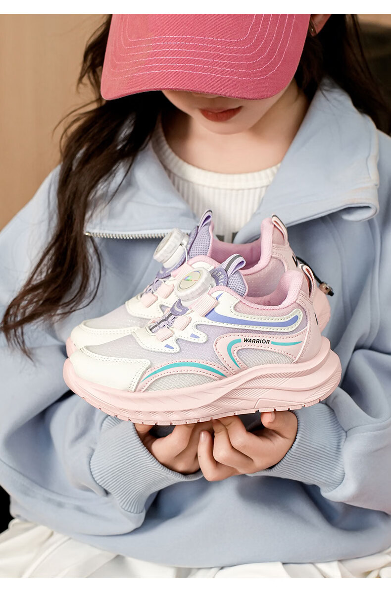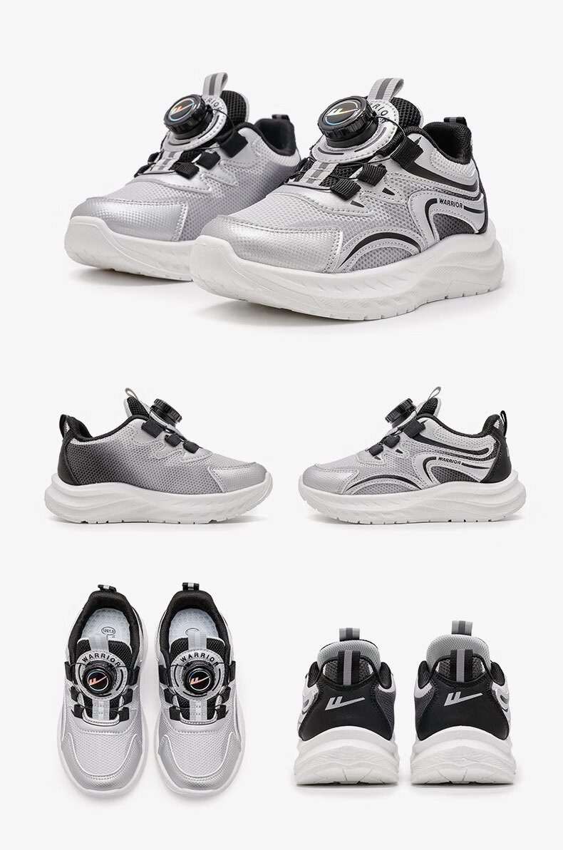 Pull back children's shoes breathable children's mesh knob buckle shoes 2026 spring new boys' sports shoes girls' fashion running shoes silver black 34 inner length about 22cm