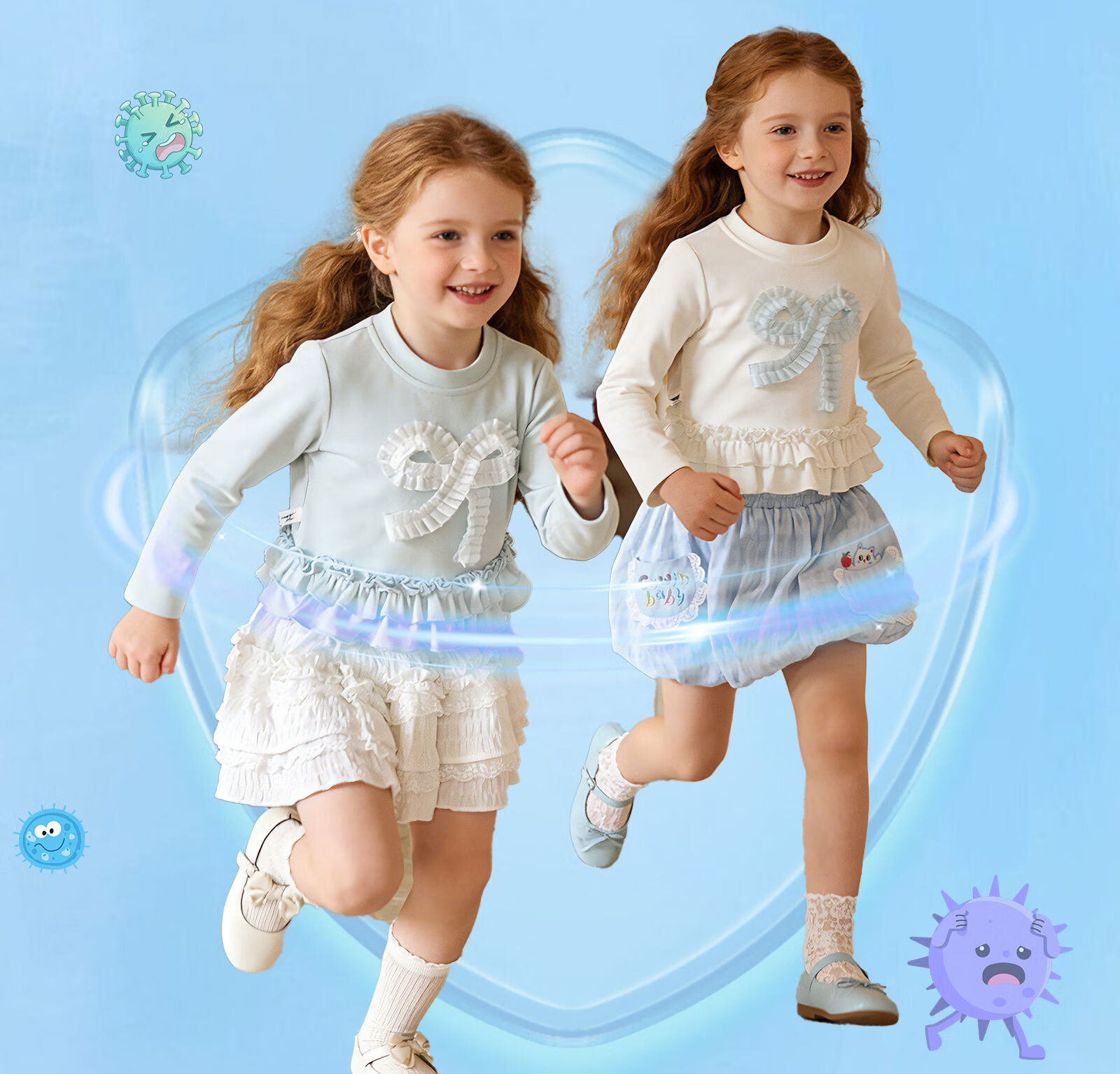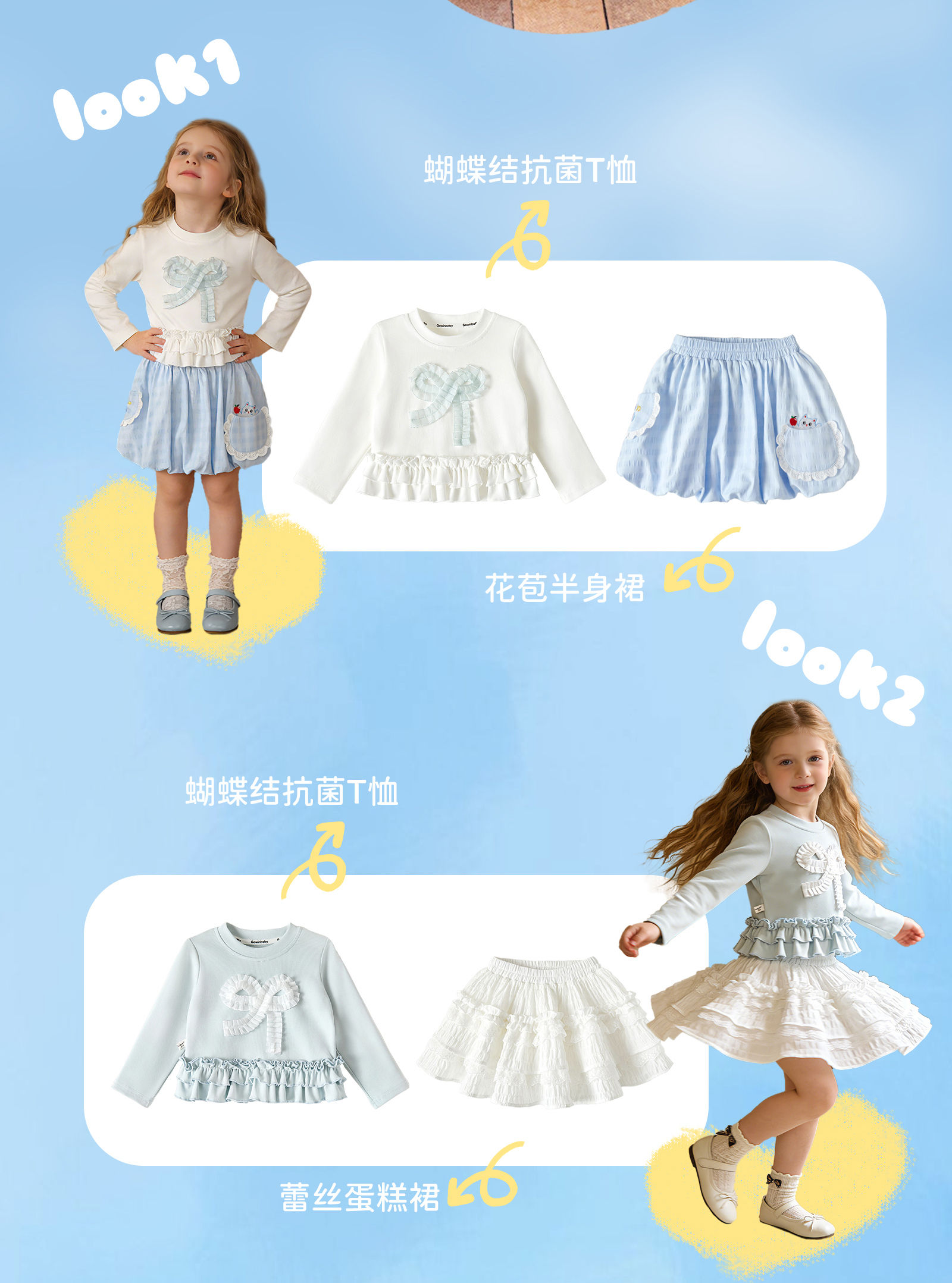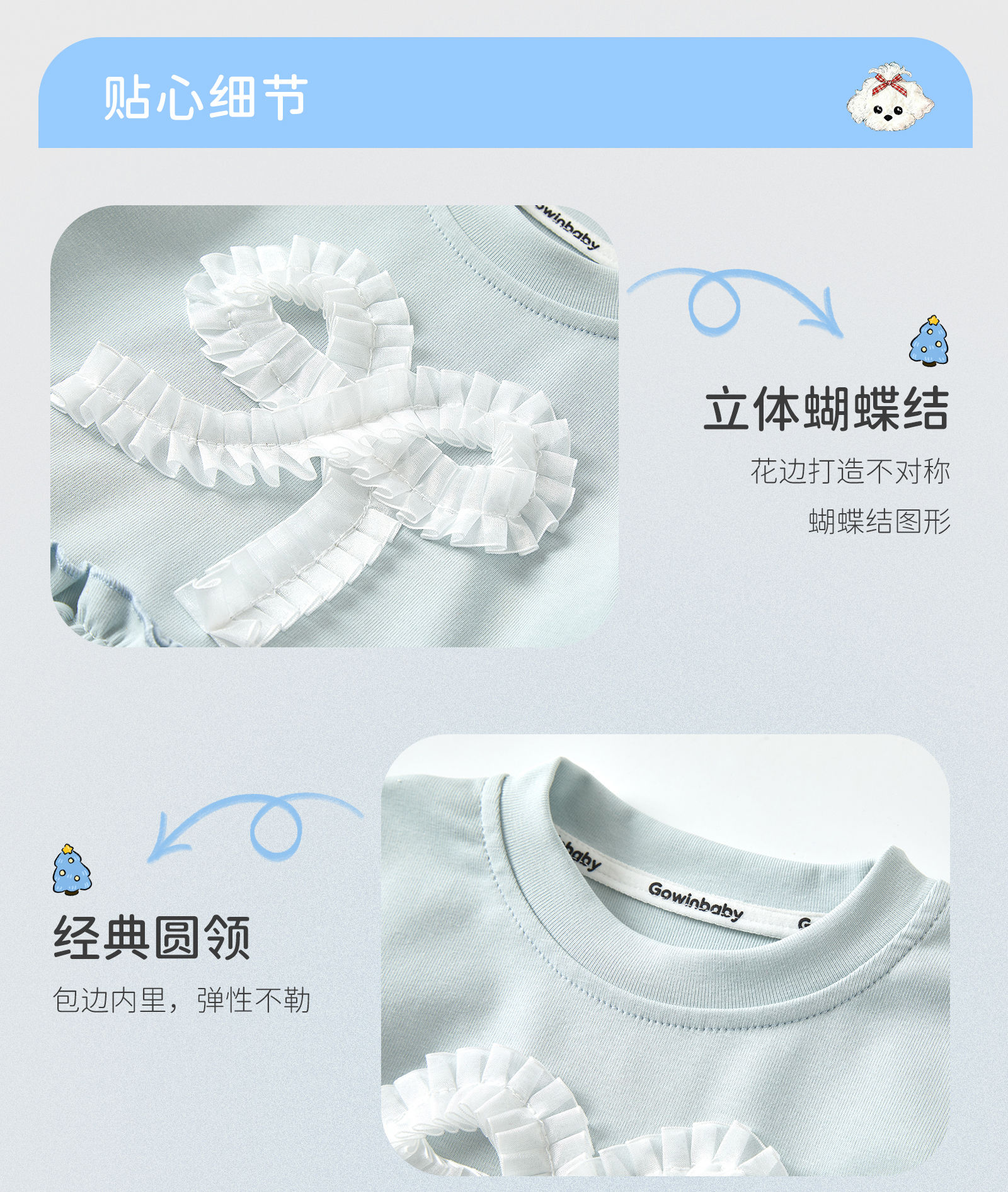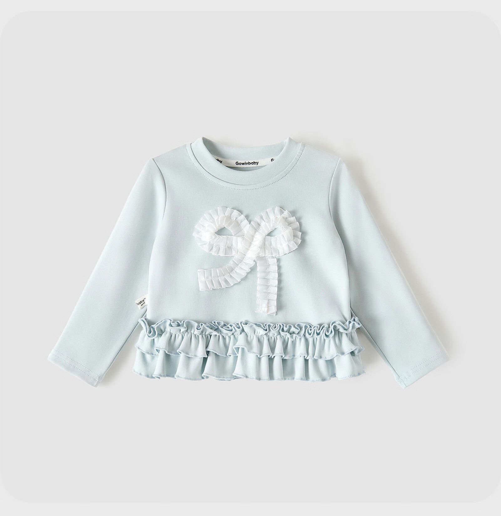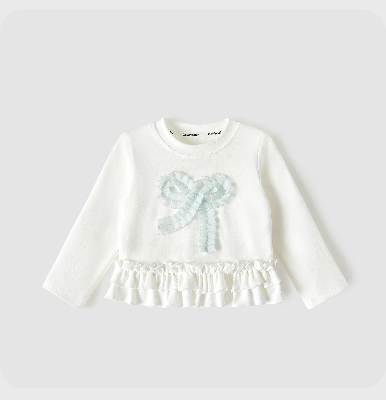 Keying GOWINBABY children's clothing girls bow T-shirt 2026 spring girls lace top sweet baby girl long-sleeved thin cute off-white T-shirt 90 (suitable for height 80cm-90cm)