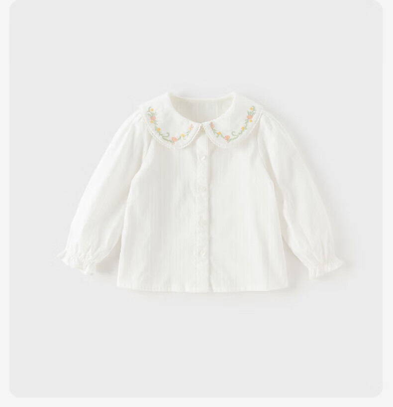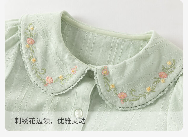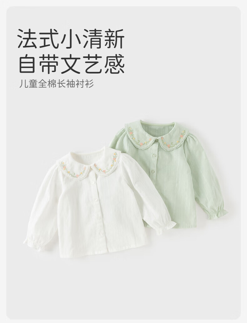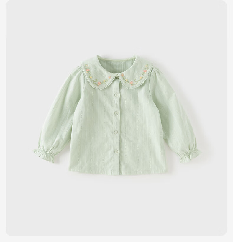 DAVE&BELLA children's shirt 2026 spring new pure cotton girls casual long-sleeved shirt baby girl tops children's bottoming shirt gray green ready stock 110 cm (recommended height 100-110cm)