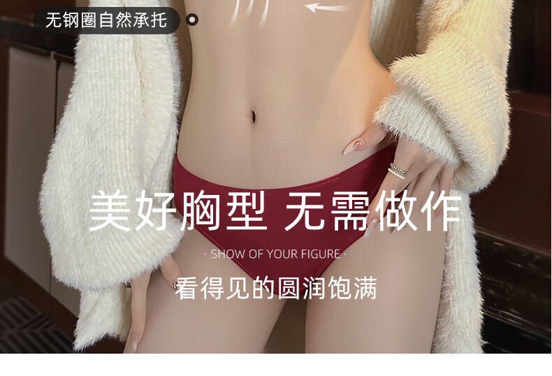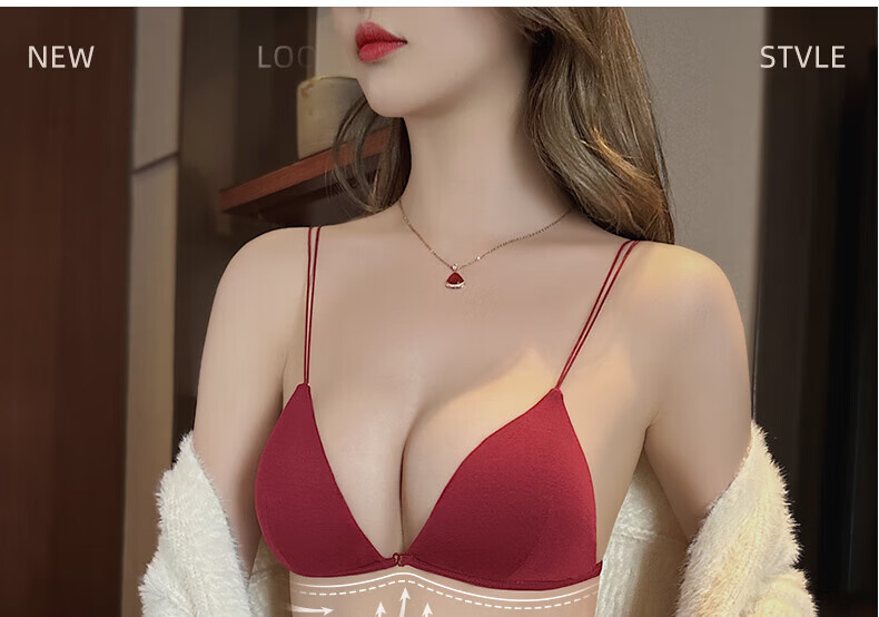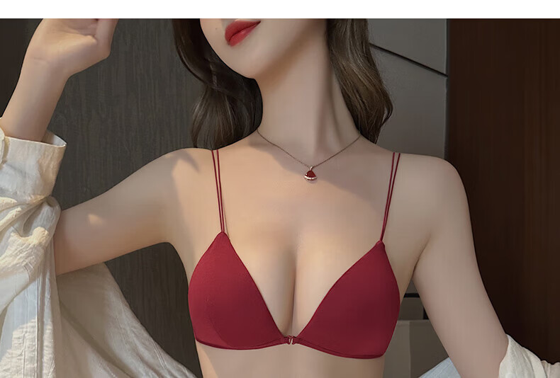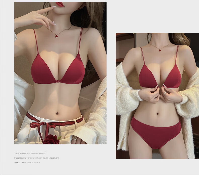 ESSONIO animal year red underwear set for women with small breasts, thin triangle cup, sexy front button bra, wedding bride, burgundy-suit 70A/70B