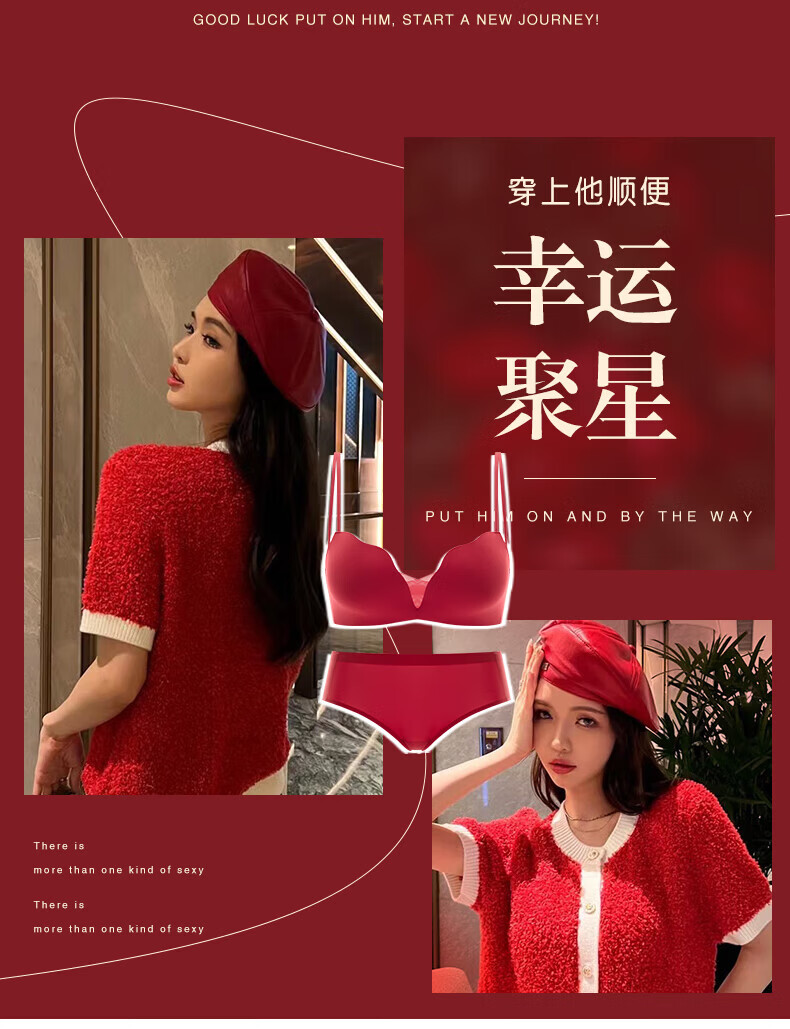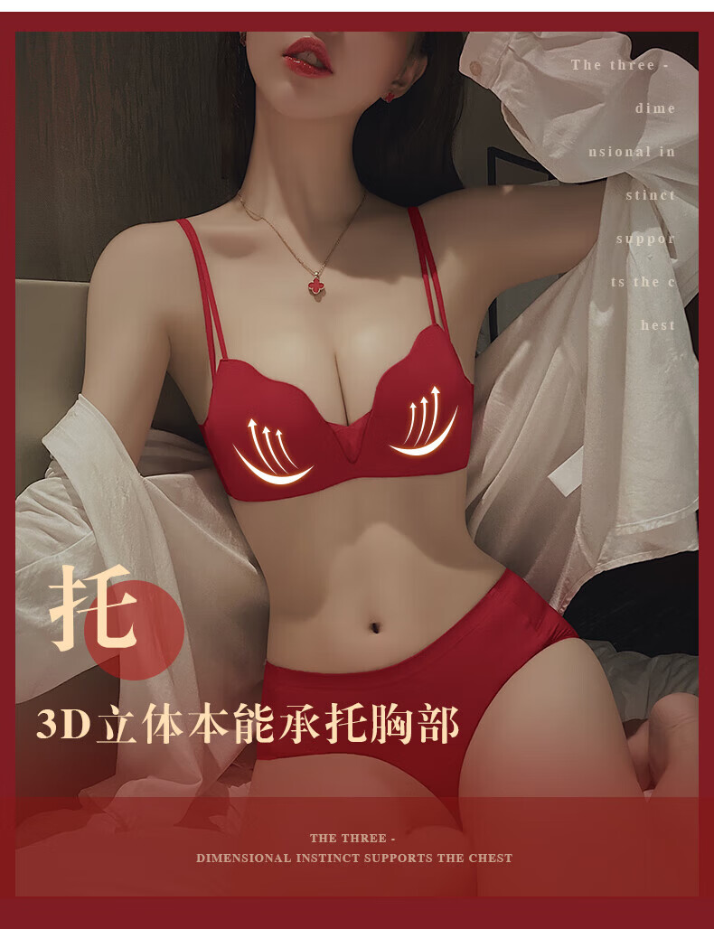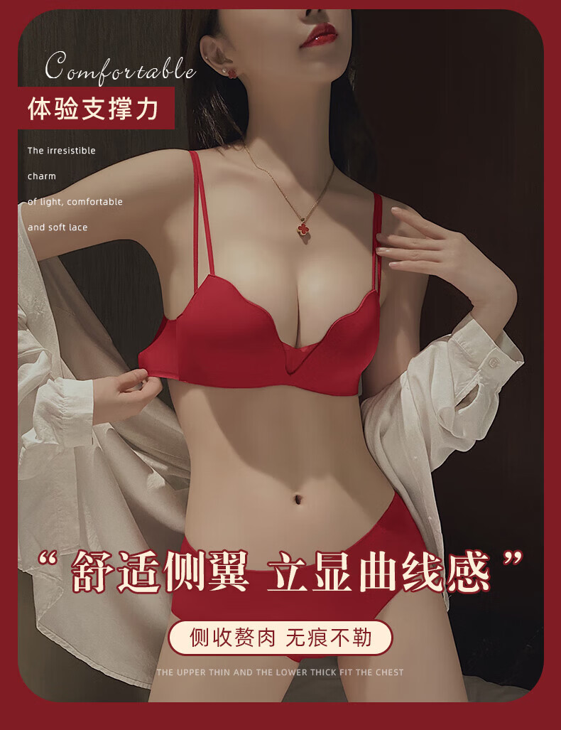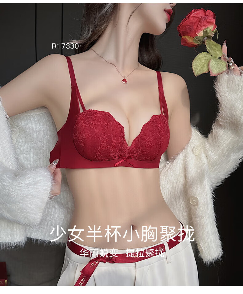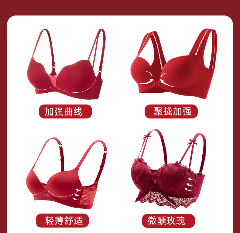 ESSONIO Zodiac Year Red Underwear Set Women's Small Breasts Push Up to Show Bigger Thickening 2026 New Year of the Horse Bra and Panties Bridal Red-Suit-Strengthen Curves 70A/32A (Push-up Model in the Popular Year)