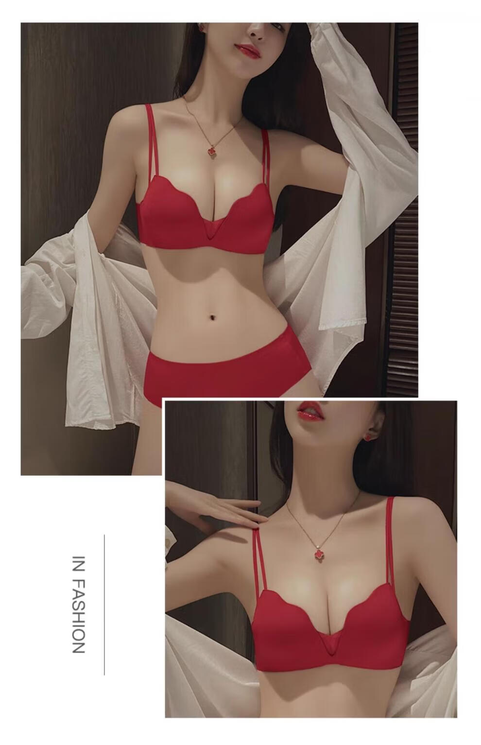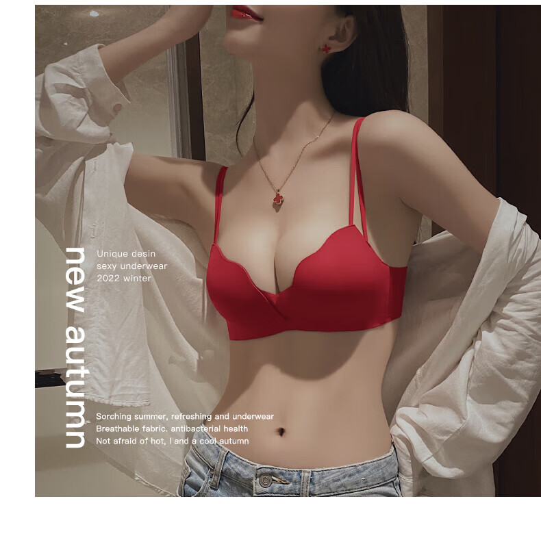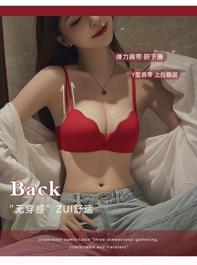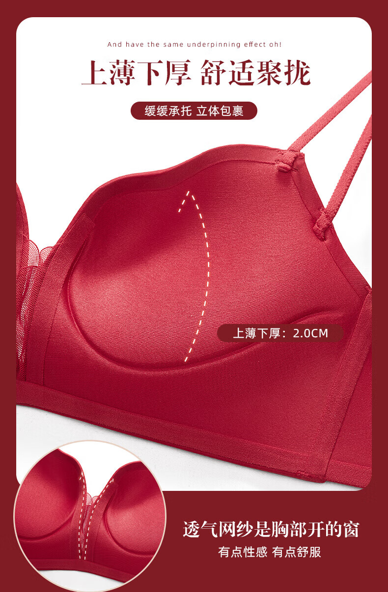 ESSONIO Zodiac Year Red Underwear Set Women's Small Breasts Push Up to Show Bigger Thickening 2026 New Year of the Horse Bra and Panties Bridal Red-Suit-Strengthen Curves 70A/32A (Push-up Model in the Popular Year)