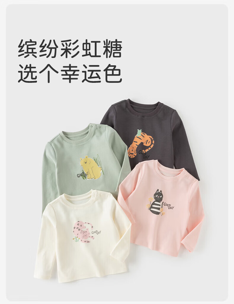 DAVE&BELLA girls long-sleeved T-shirt 2026 new spring style children's bottoming shirt pure cotton baby girl tops children's clothes off-white ready stock 73 cm (recommended height 66-73cm)