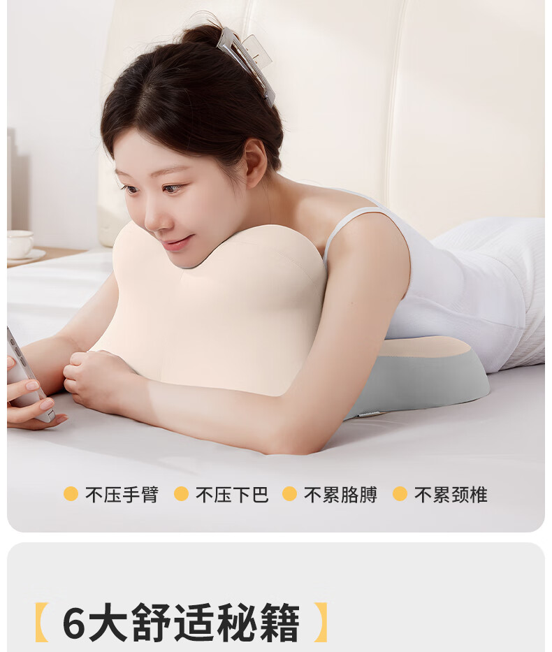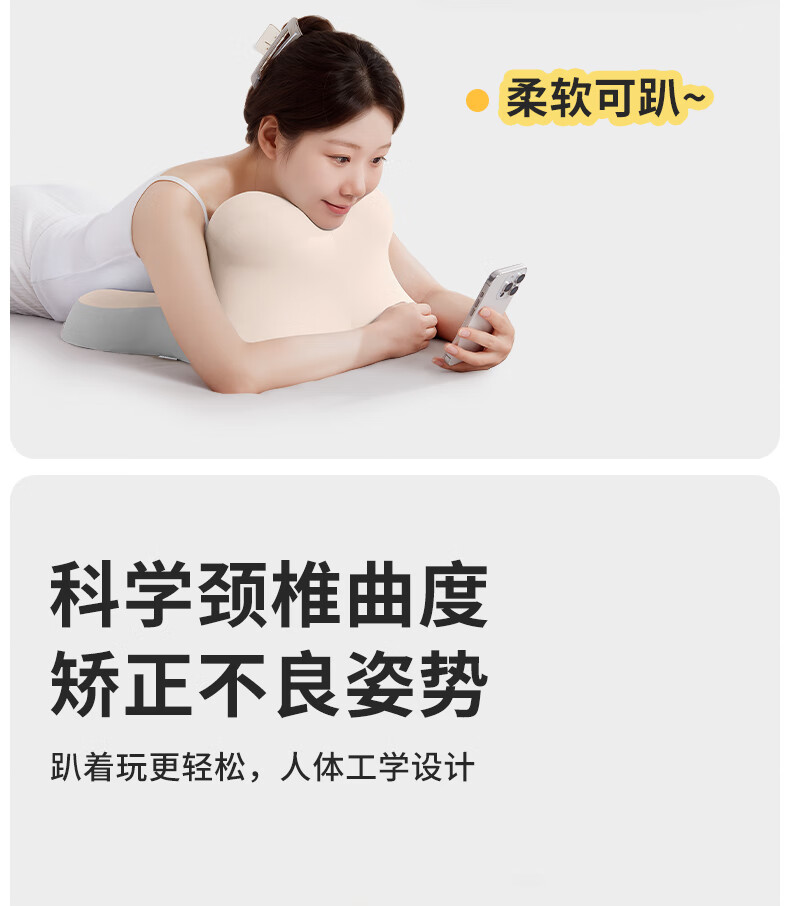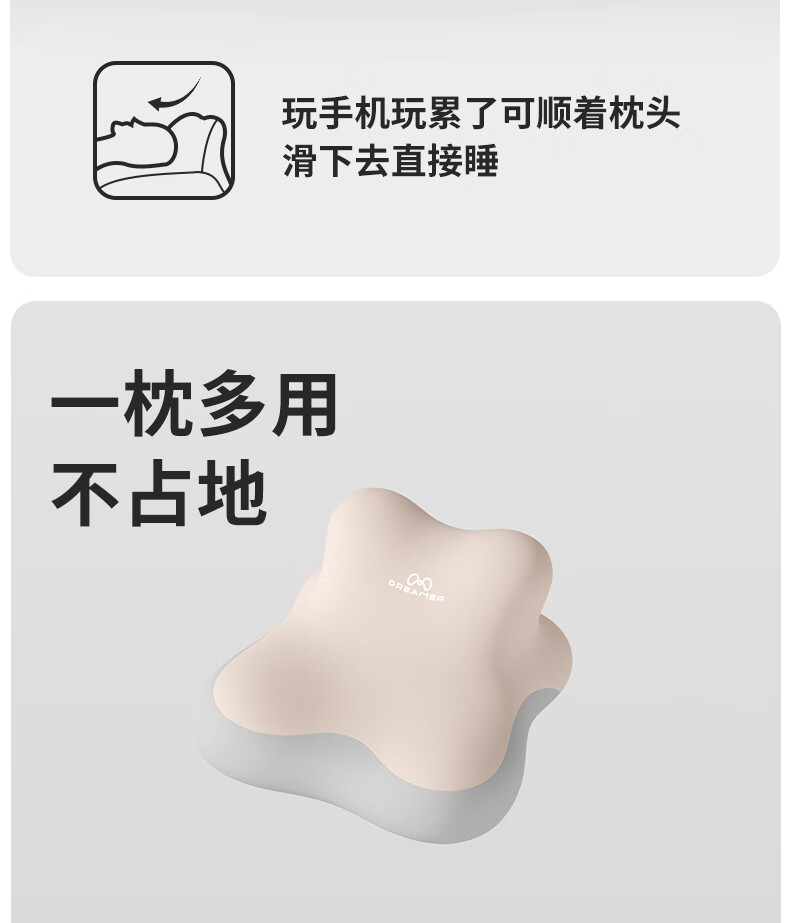 Zhimengren (zhimengren) Memory Foam Sleeping Pillow for Lazy Home, Neck Support, Sleep Aid, Bedside Pillow, Special Artifact Pillow for Playing Mobile Phones and Watching Dramas Zhimengren (Basic + Multifunctional Sleeping Pillow/Compact New Design) Beige and Gray Color Matching