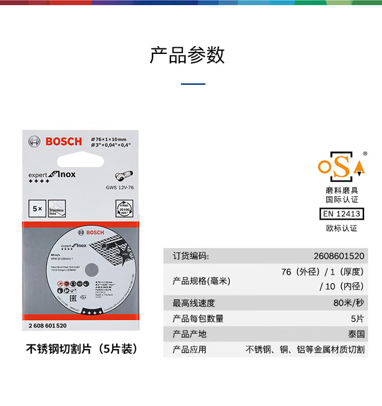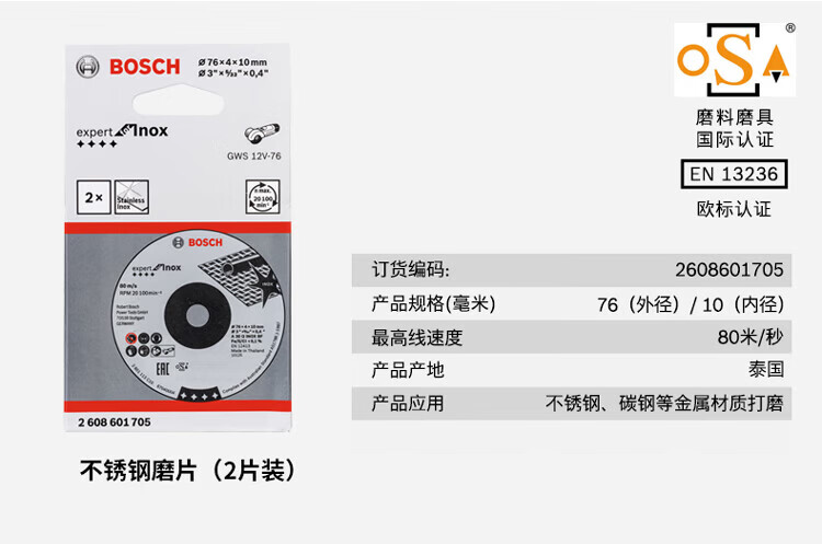 Bosch (BOSCH) Xiaogangxia attachment mini angle grinder professional cutting and grinding disc 76MM (3 inches) Xiaogangxia GWS12V-76 stainless steel cutting disc